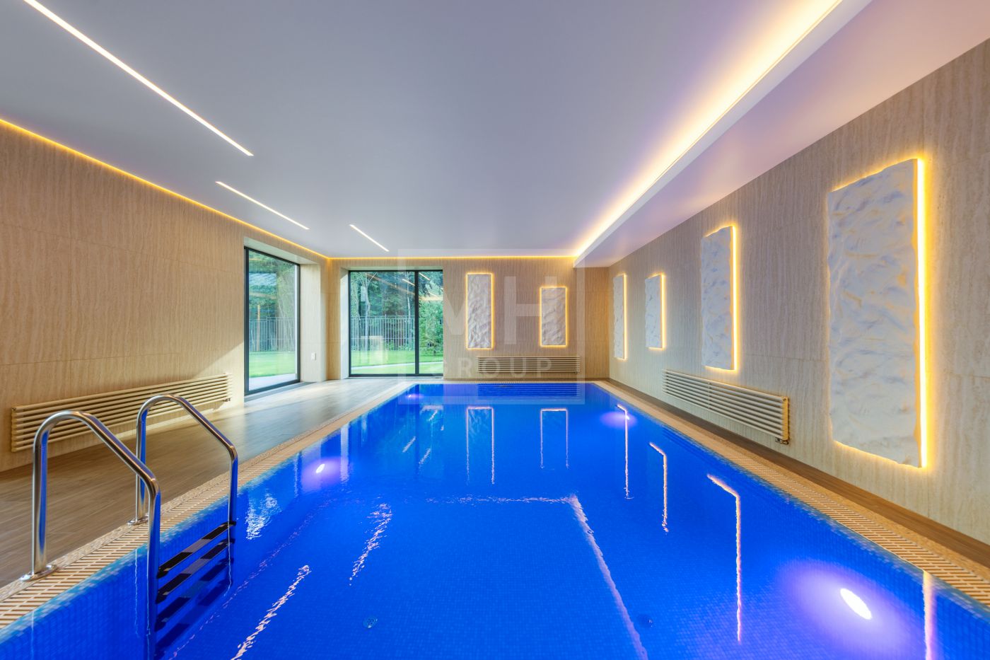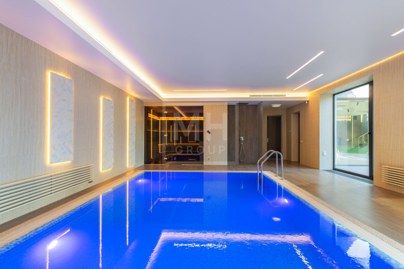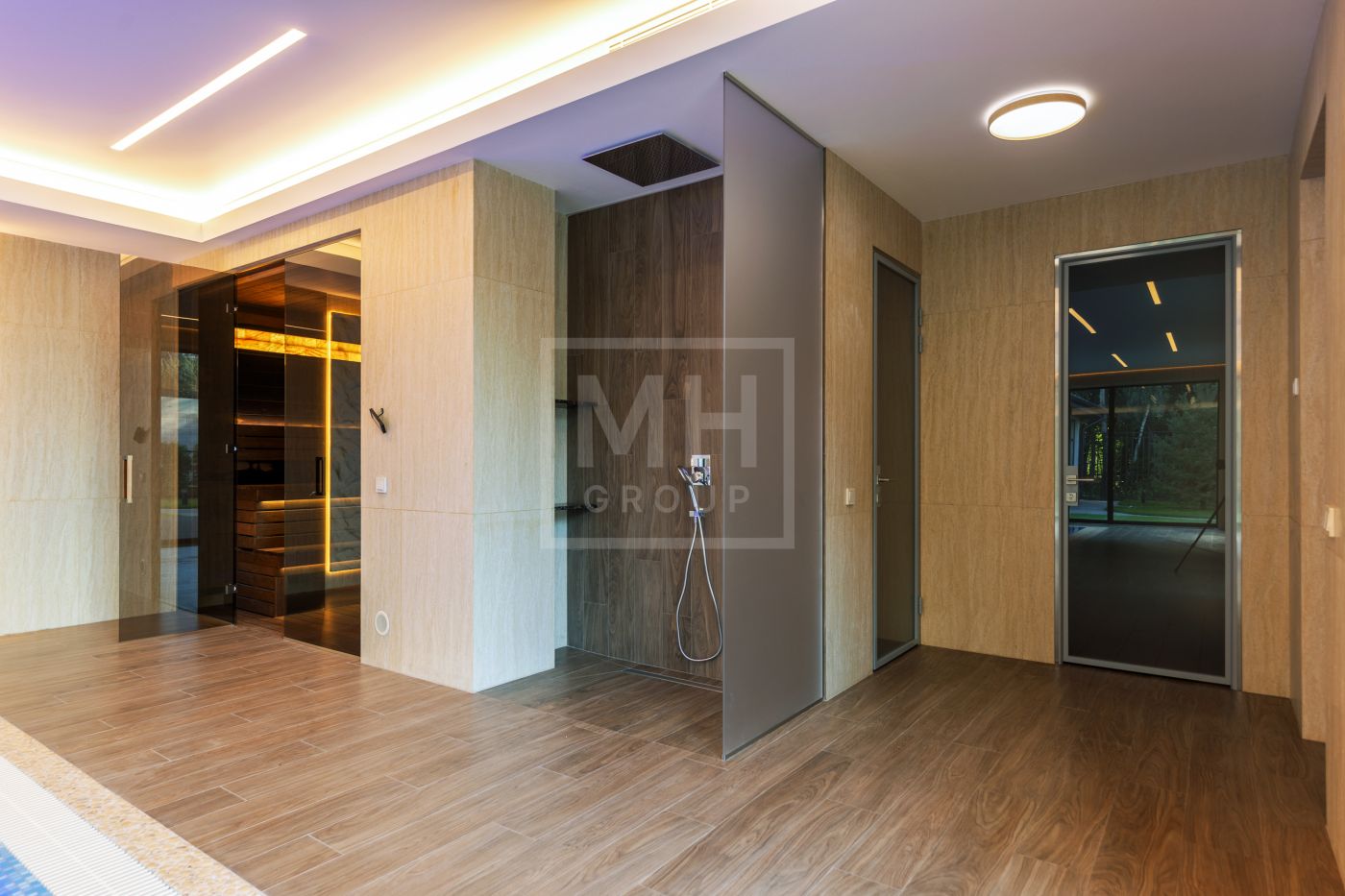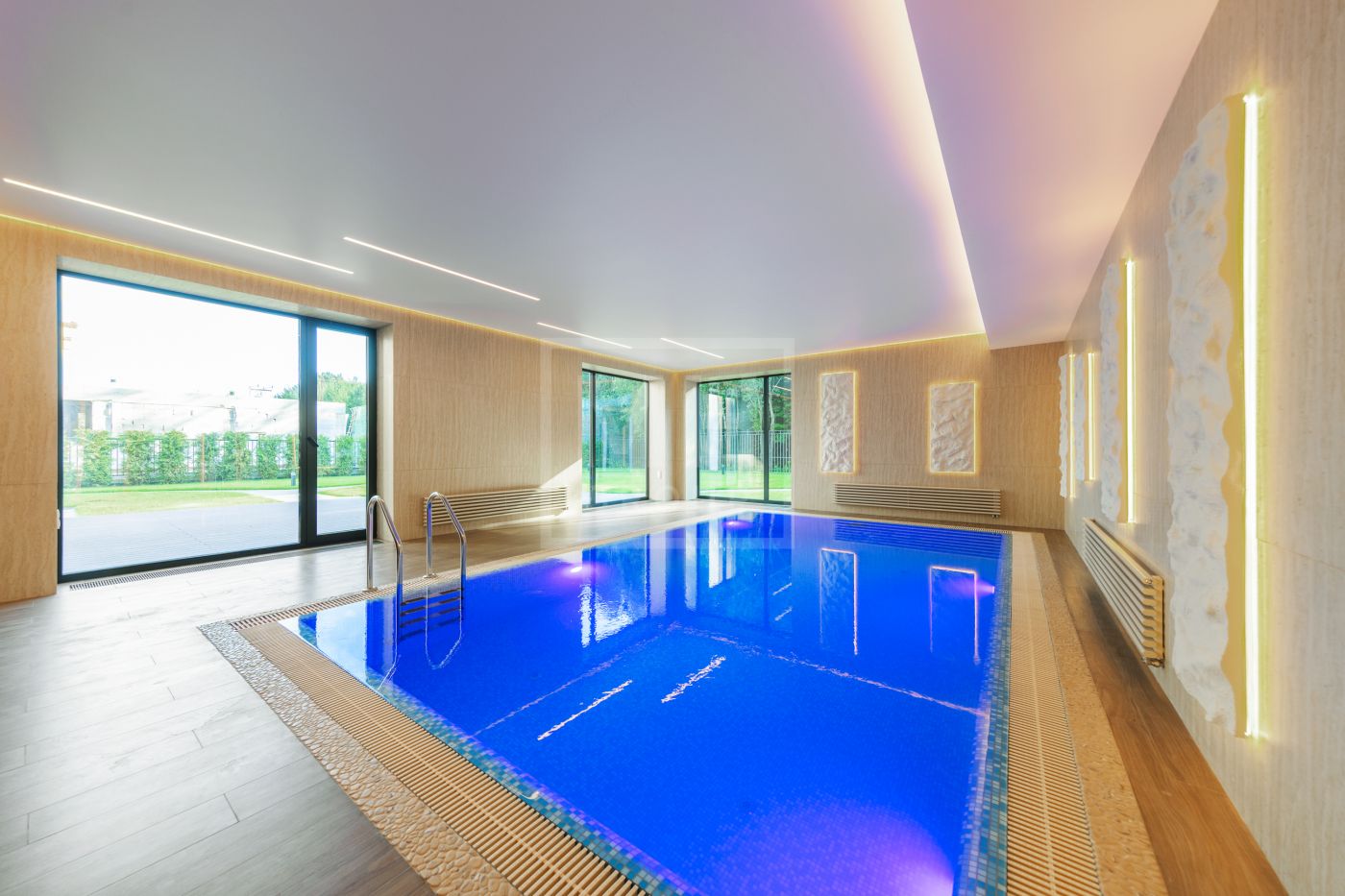В доме имеется спа-зона, включающая в себя сауну и бассейн 7*4 с противотоком и подсветкой. Бассейн оснащен инновационной системой очистки NECON. Кристально чистая вода без хлора и химических запахов обеспечивает