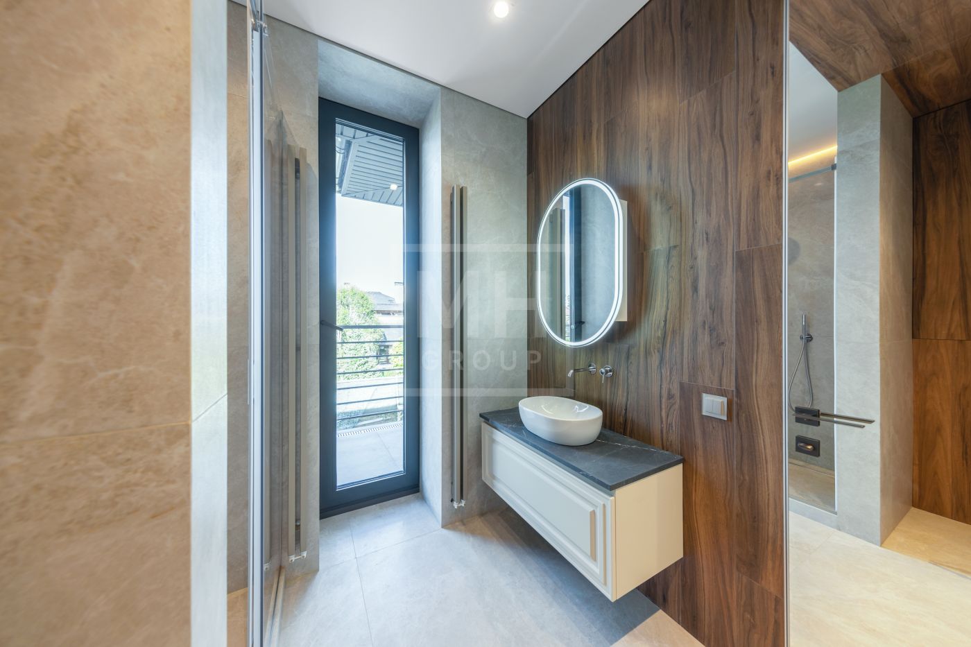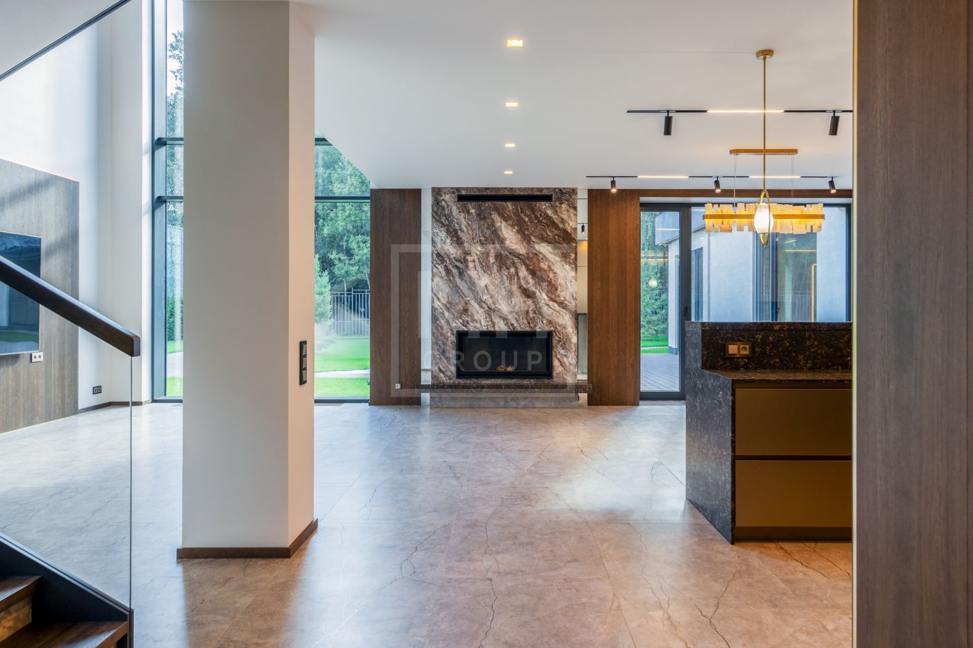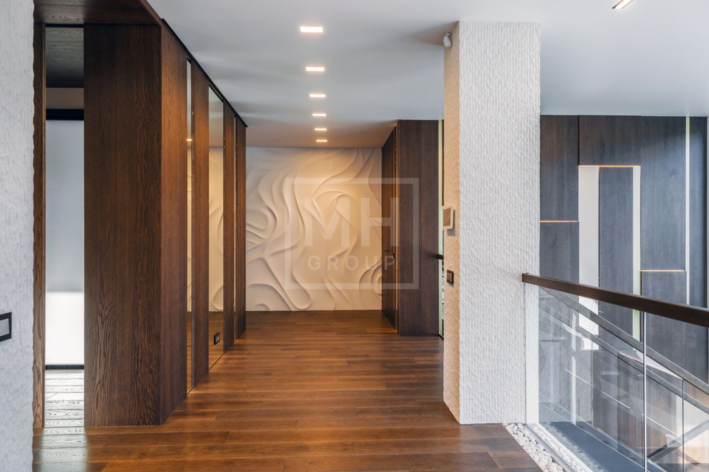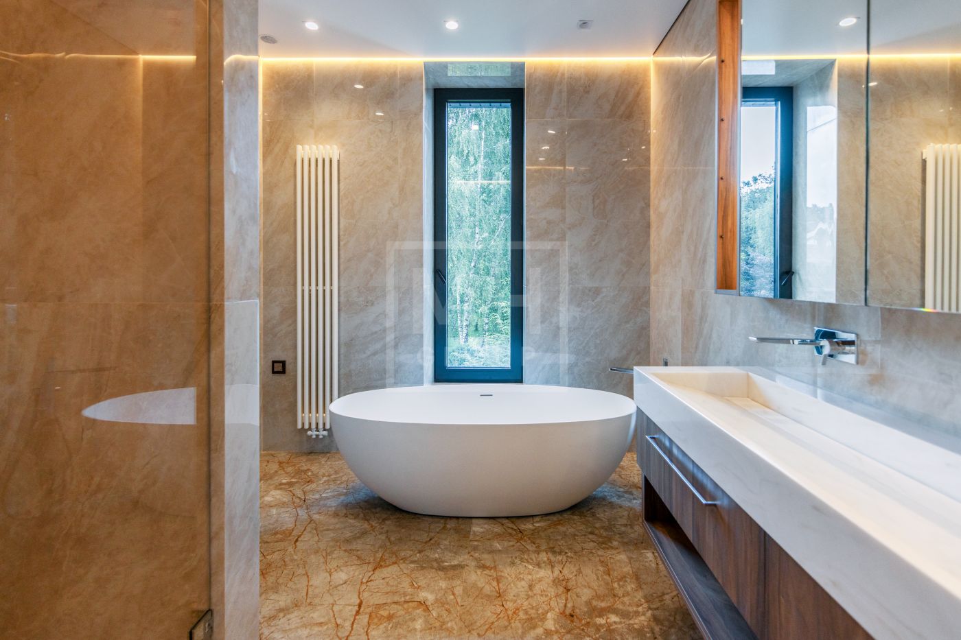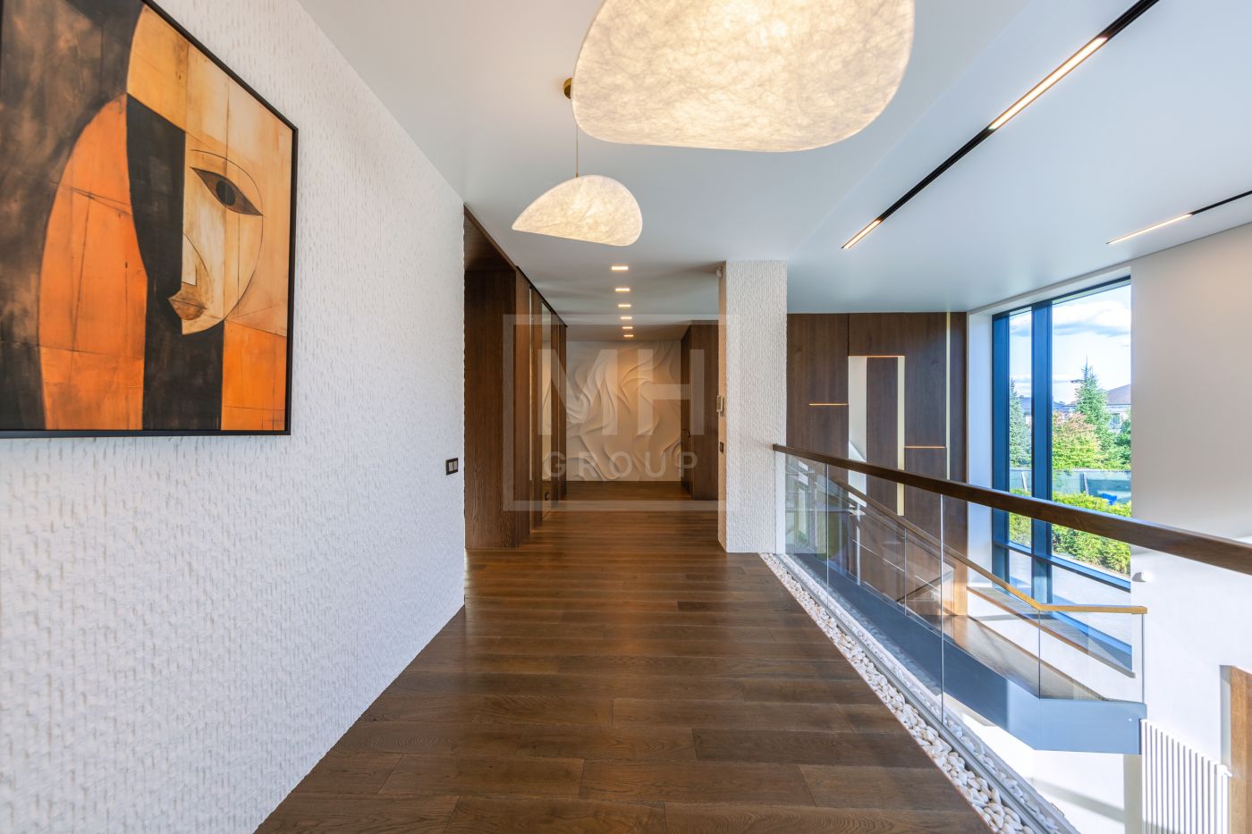 К Вашему вниманию предлагается новый современный дом в приватной прилесной части поселка. При строительстве были использованы только экологически чистые качественные материалы.Внутренняя отделка стен выполнена панелями из натурального шпона, пол – натуральный дуб. В доме установлена сантехника из Италии и Испании премиальных марок. Бытовая техника SMEG и Liebherr.