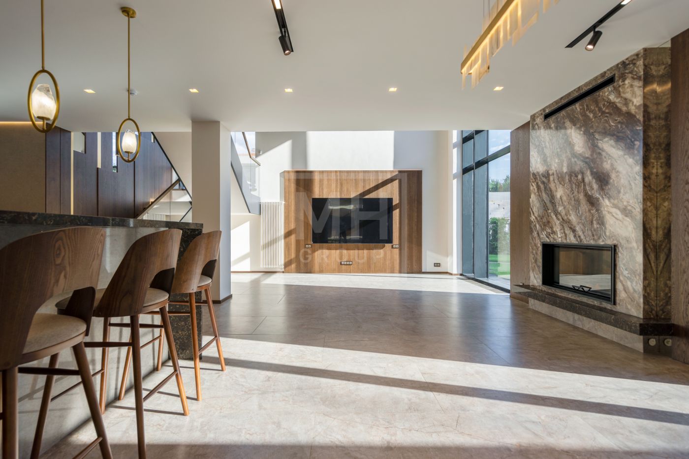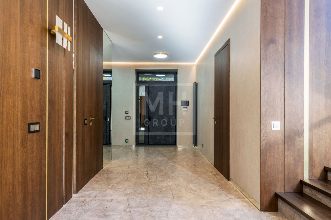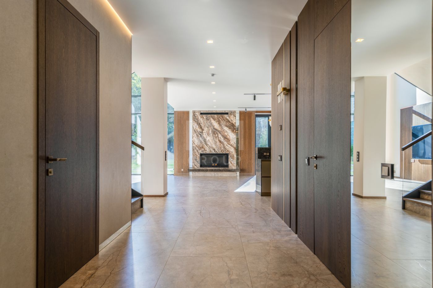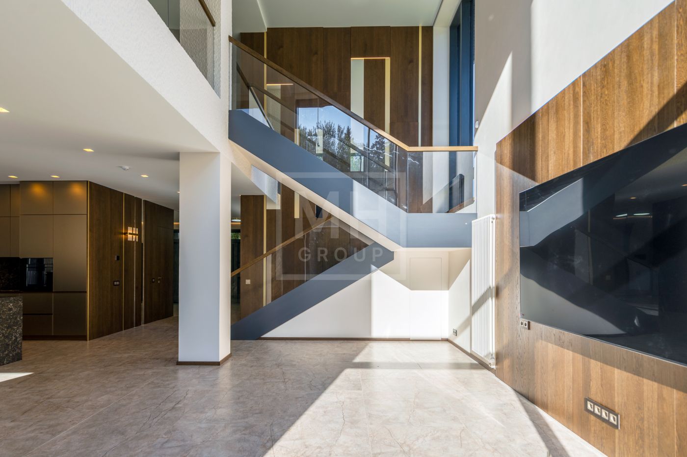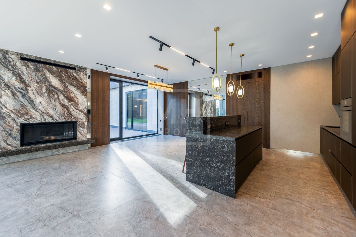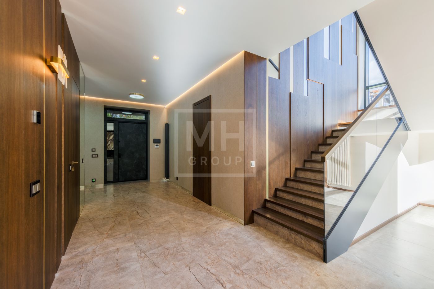 К Вашему вниманию предлагается новый современный дом в приватной прилесной части поселка. При строительстве были использованы только экологически чистые качественные материалы.Внутренняя отделка стен выполнена панелями из натурального шпона, пол – натуральный дуб. В доме установлена сантехника из Италии и Испании премиальных марок. Бытовая техника SMEG и Liebherr.