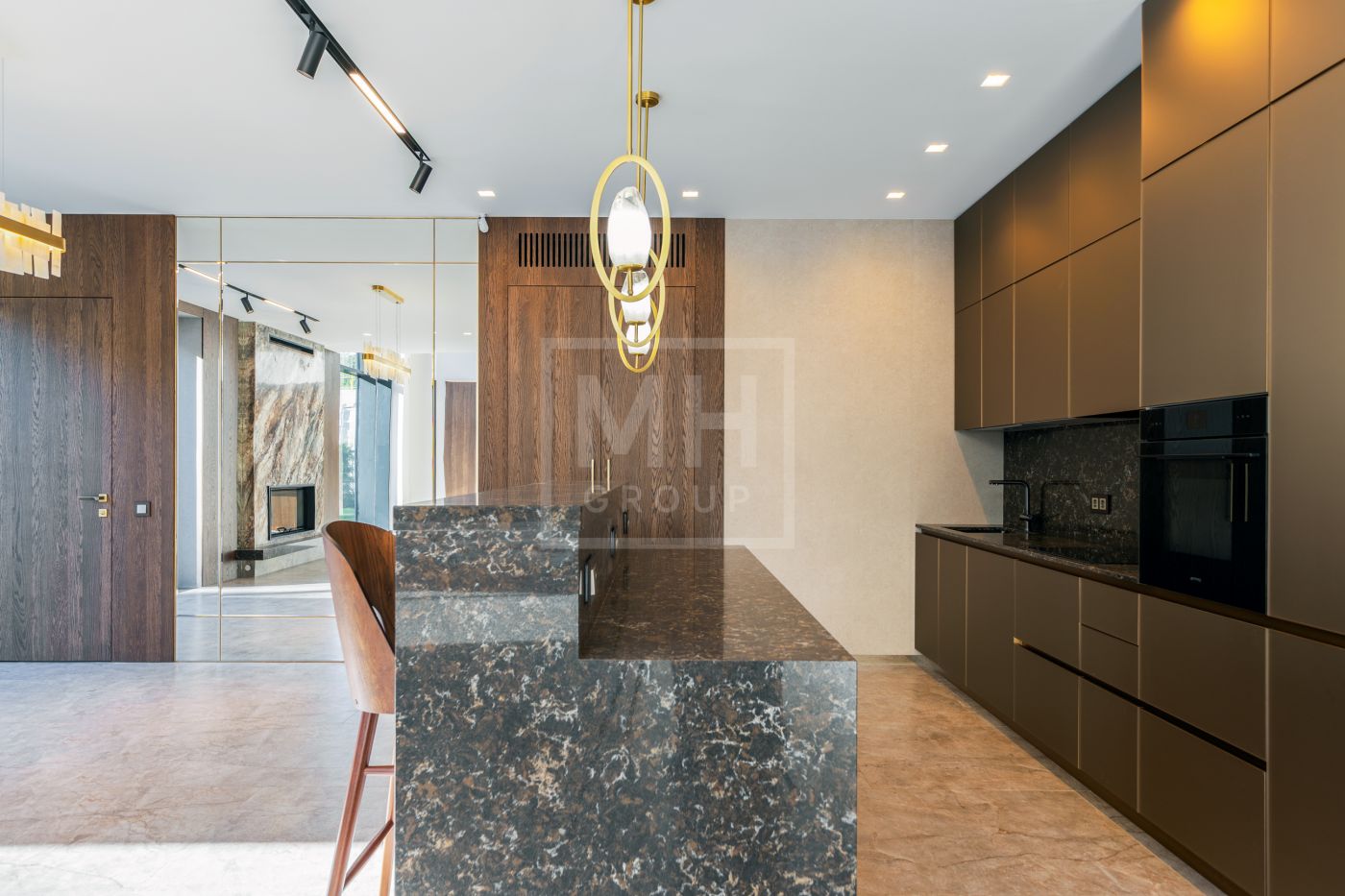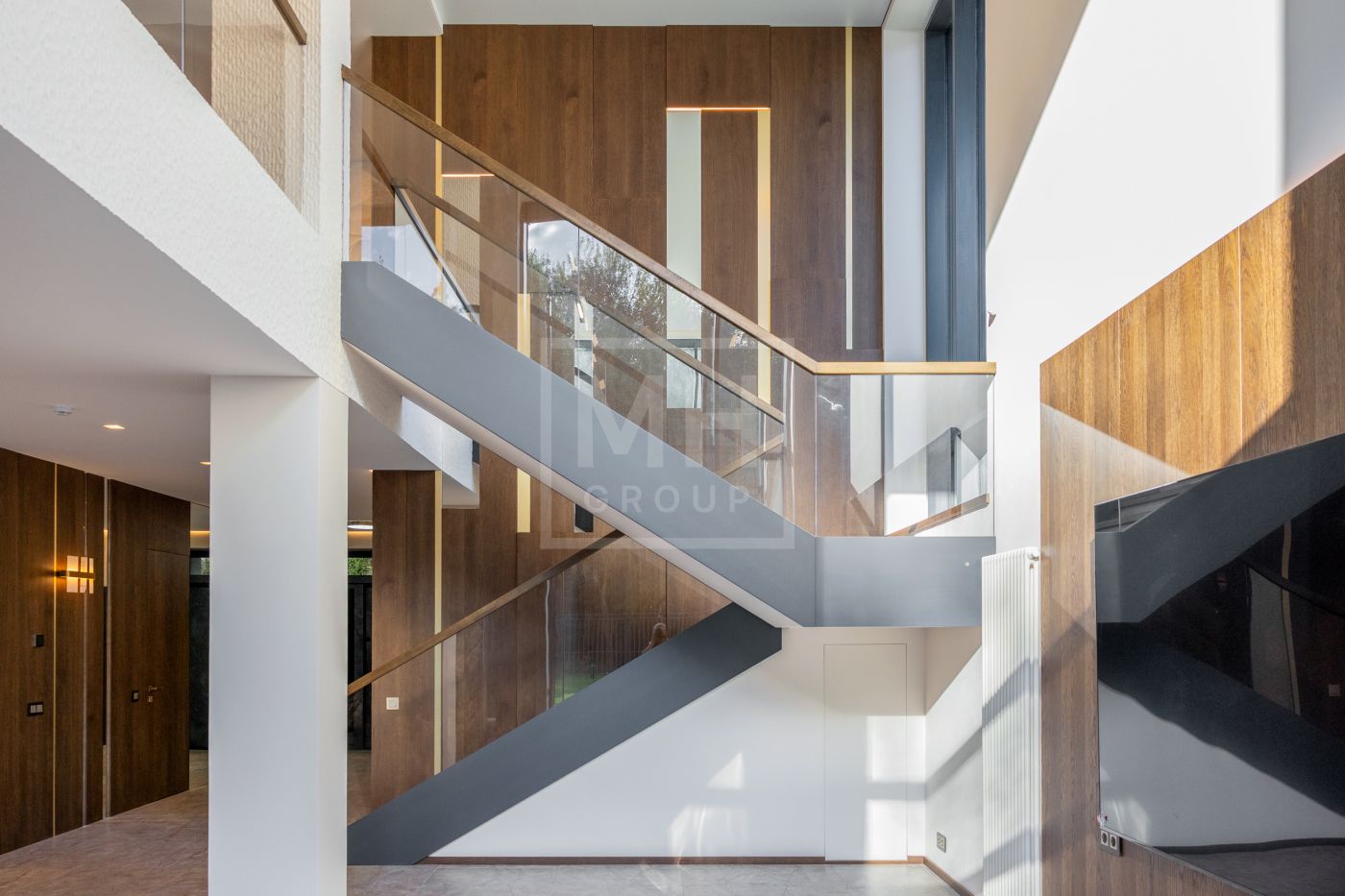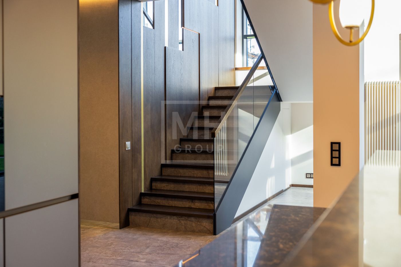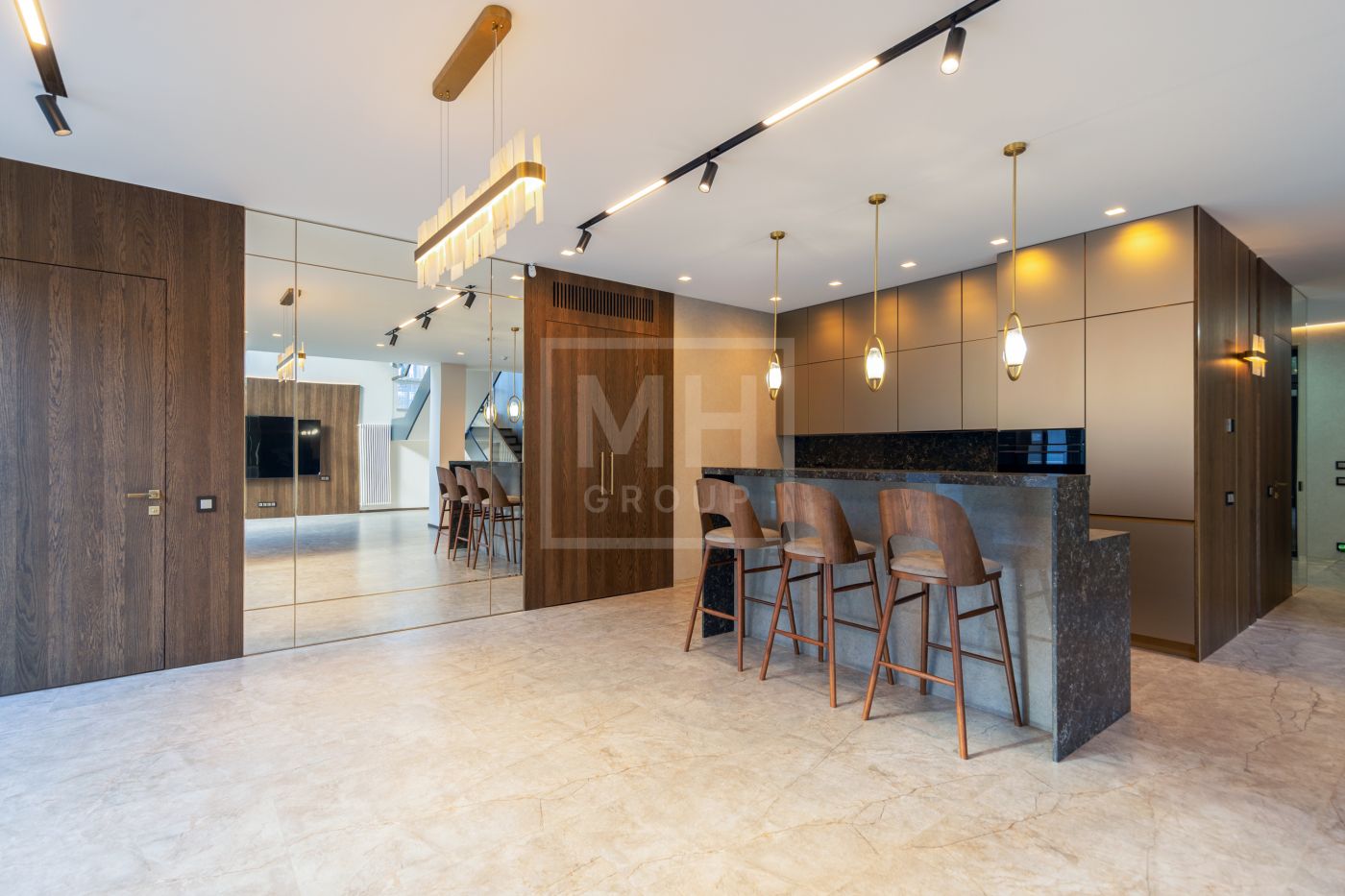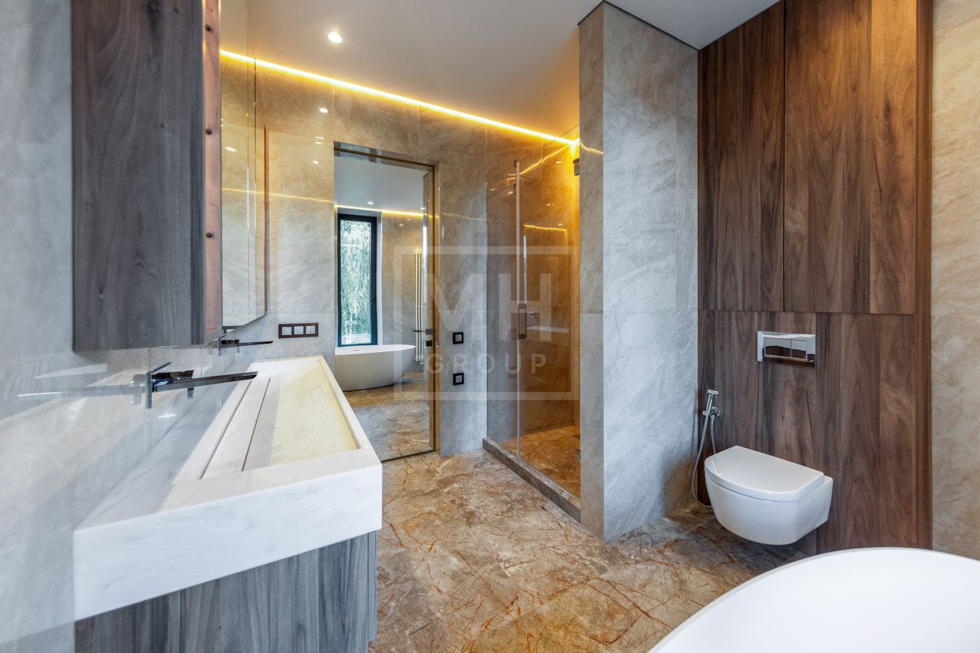 К Вашему вниманию предлагается новый современный дом в приватной прилесной части поселка. При строительстве были использованы только экологически чистые качественные материалы.Внутренняя отделка стен выполнена панелями из натурального шпона, пол – натуральный дуб. В доме установлена сантехника из Италии и Испании премиальных марок. Бытовая техника SMEG и Liebherr.