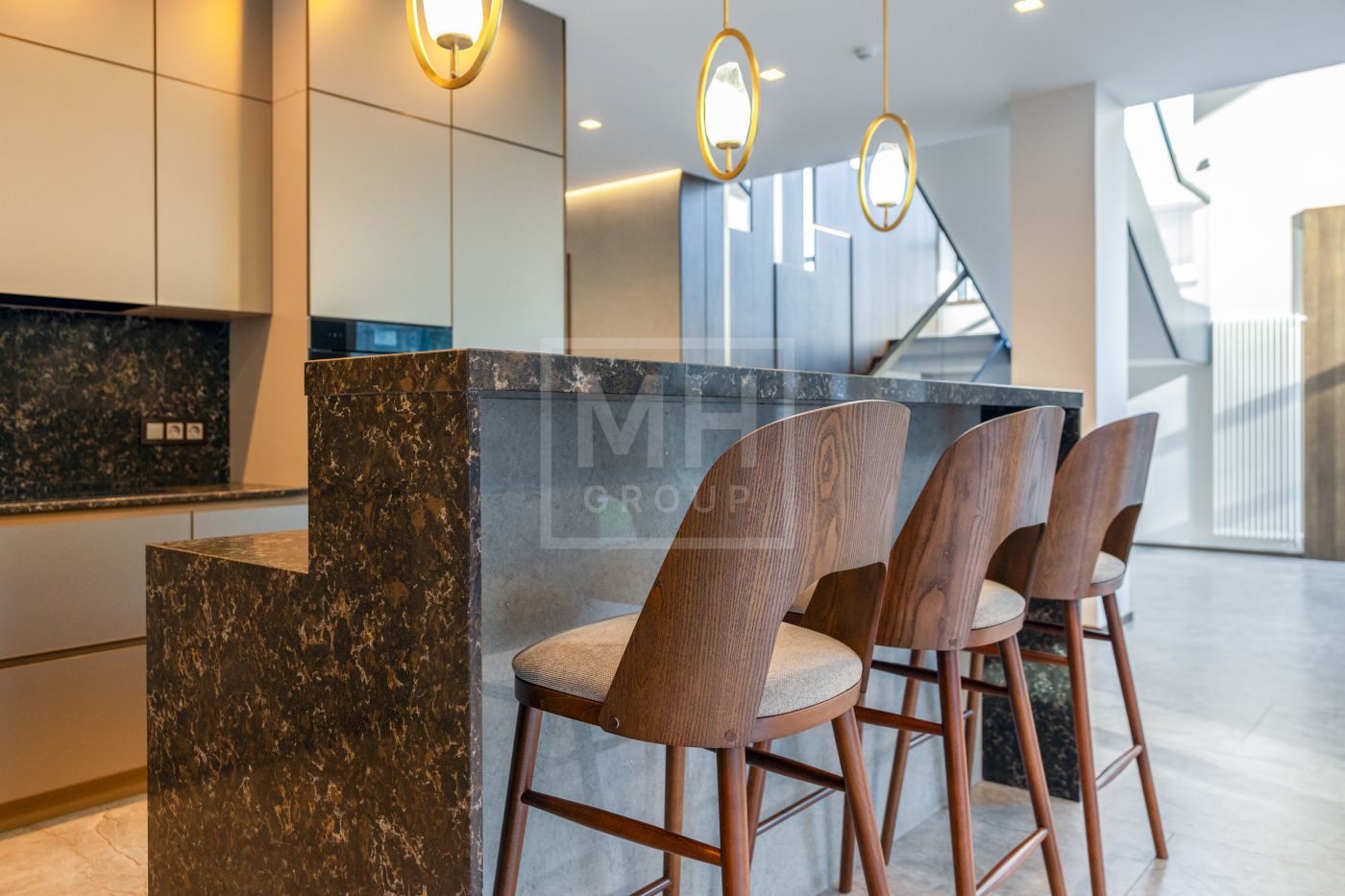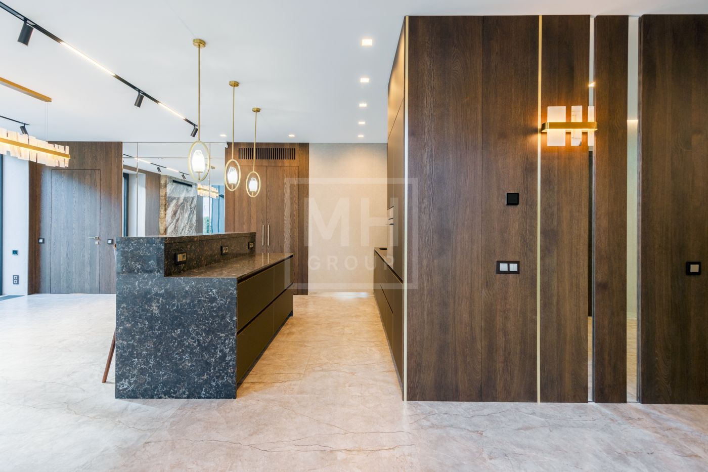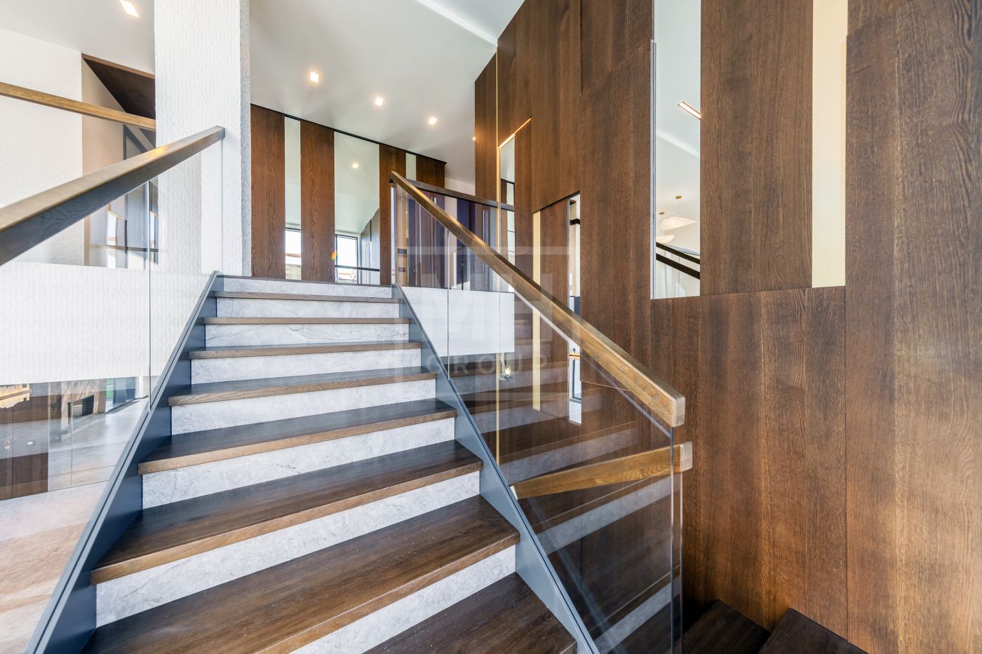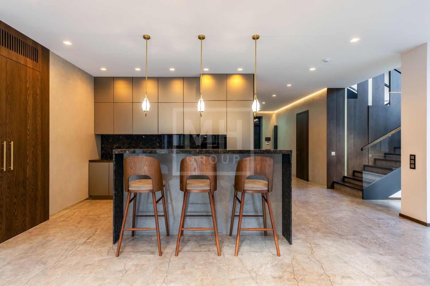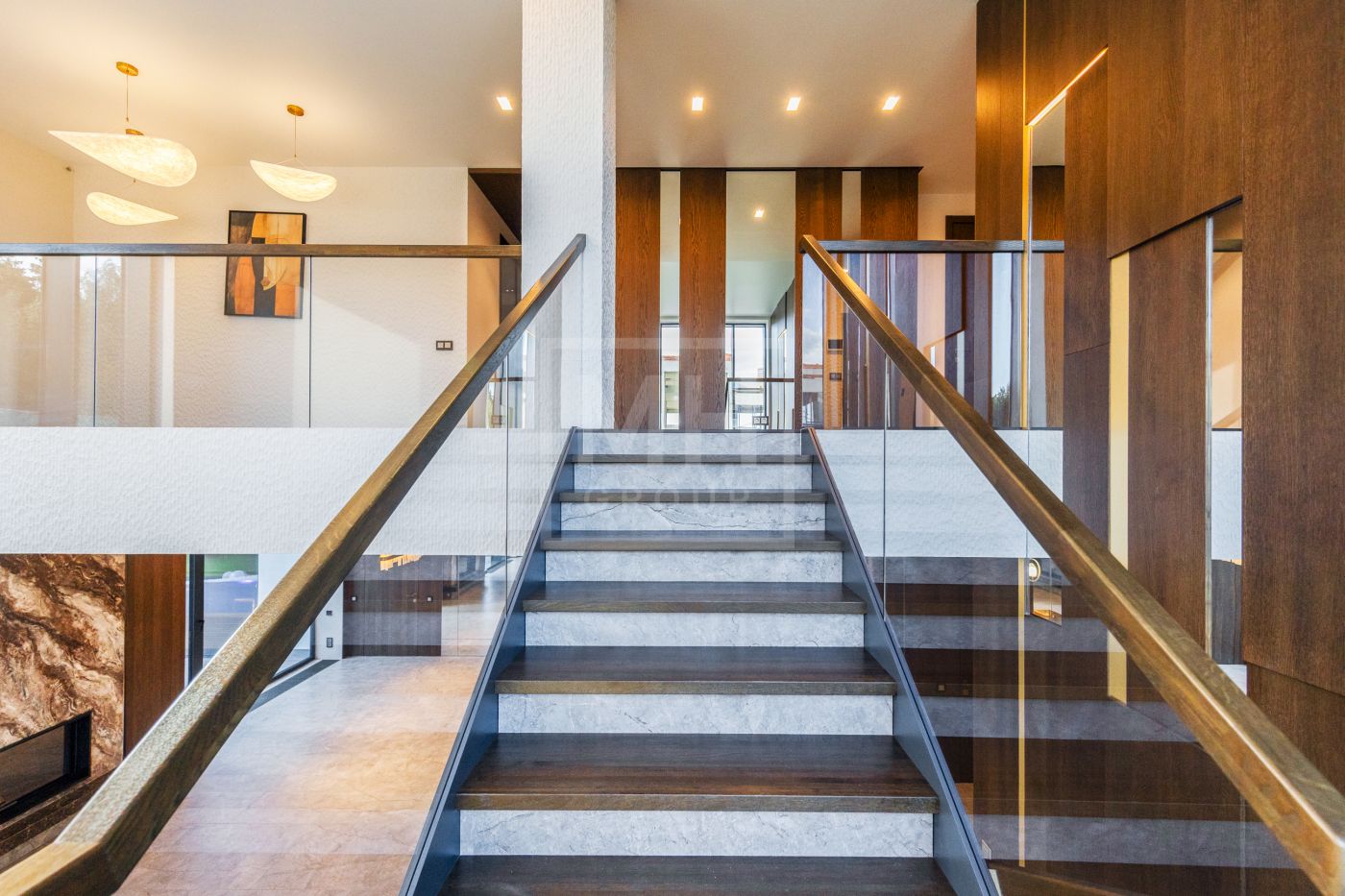 К Вашему вниманию предлагается новый современный дом в приватной прилесной части поселка. При строительстве были использованы только экологически чистые качественные материалы.Внутренняя отделка стен выполнена панелями из натурального шпона, пол – натуральный дуб. В доме установлена сантехника из Италии и Испании премиальных марок. Бытовая техника SMEG и Liebherr.