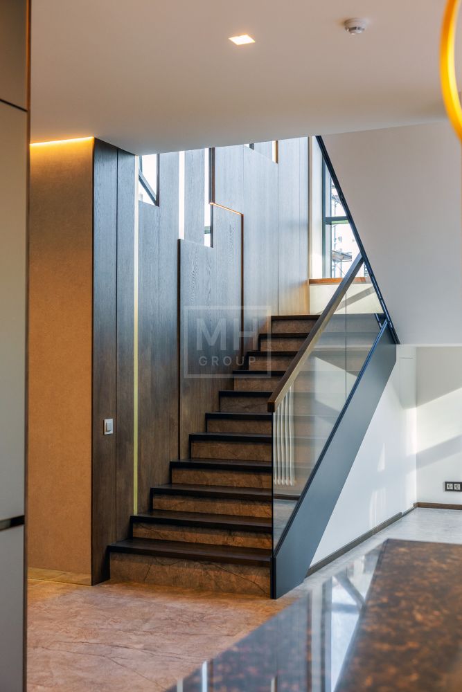 Этаж 2: Холл, кабинет, мастер спальня со своим с\у и гардеробной, спальня с с\у и гардеробной, спальня с с\у, квартира для персонала с отдельным входом из гаража, эксплуатируемая кровля над бассейном.