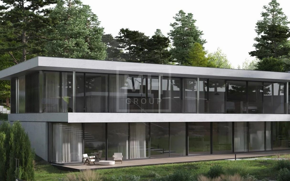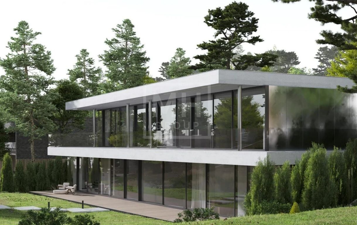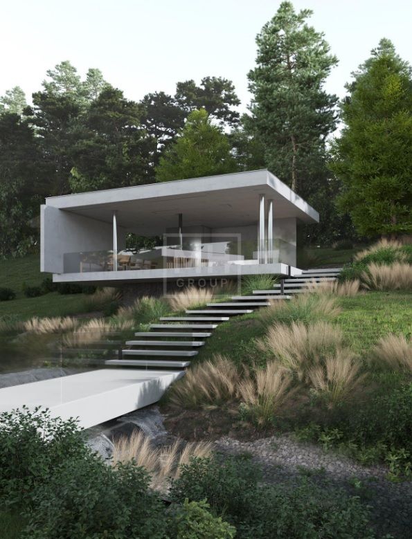 Уникальная и неповторимая резиденция находится в новом современном клубном эко-поселке Эссенс с красивым природным ландшафтом окружающей природы по Новорижскому шоссе. Фасад дома выполнен из натуральных материалов - камня и специально обработанного дерева. Оконные системы Schuco. Резиденция спроектирована с учетом особенностей рельефа на участке. 1-й этаж предусмотрен для хозяев дома, на котором расположены мастер-блок с спальней, гардеробной и с/у, просторная зона кухни-столовой-гостиной. При входе вместительная гардеробная, а также дополнительный с/у и постирочная. На 2-м уровне предусмотрено 3 спальни, кабинет, с/у, отдельная кухня с зоной отдыха/гостиной, спа-блок с сауной, душевой, с/у. Из основных помещений дома благодаря панорамному остеклению открывается потрясающий вид на рельефный участок, по которому протекает ручей. Практически из всех основных комнат 1-го и 2-го уровней предусмотрен выход на просторные террасы, на которых можно прекрасно проводить время. Тщательно продуманное размещение дома и беседки на участке с перепадами высот и протекающим ручьем обеспечивает полную приватность для его будущих владельцев. Из беседки с зоной барбекю открывается прекрасный вид на дом и ландшафт.
