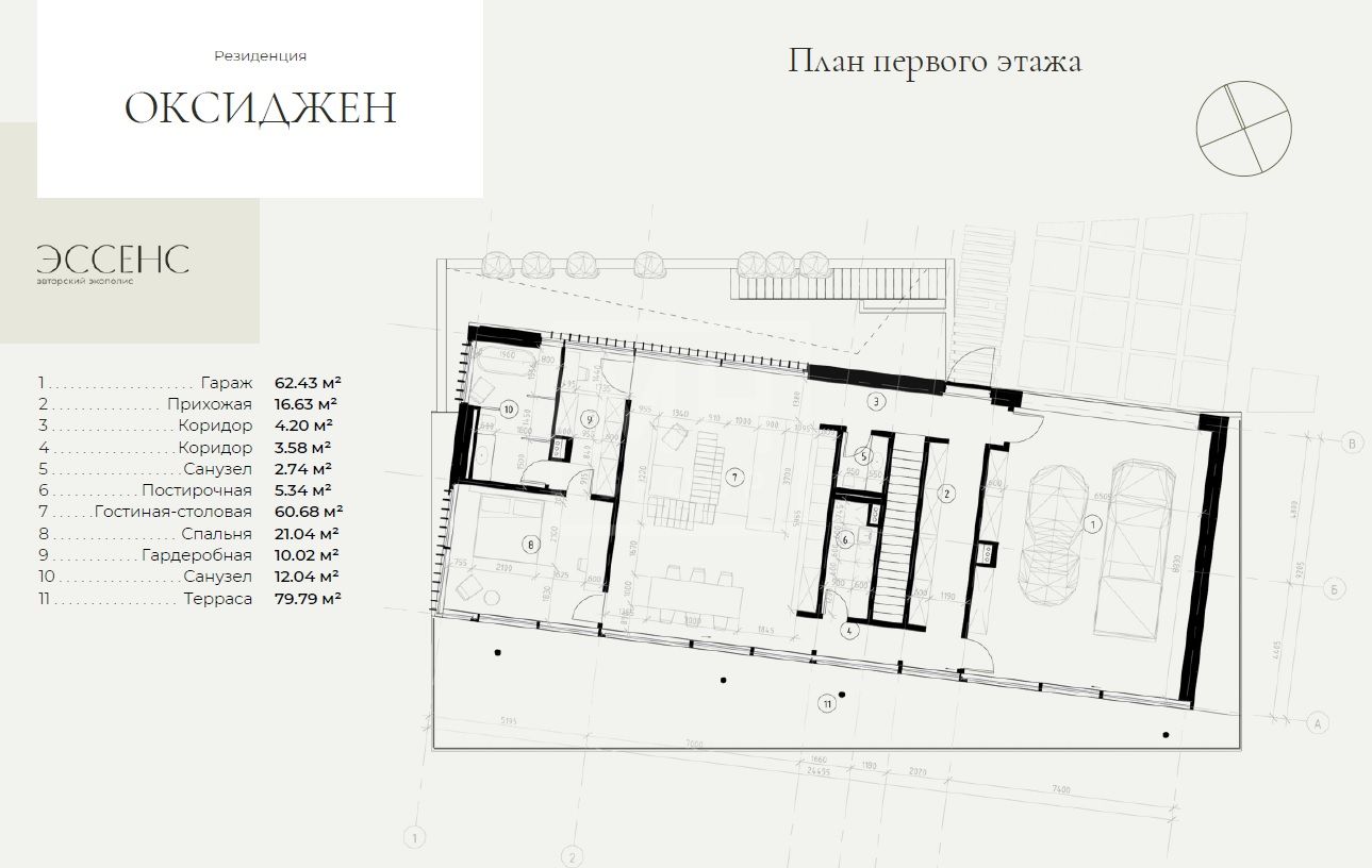 Этаж 1: Прихожая, гардеробная, с/у, кухня-столовая-гостиная, терраса, спальня с с/у и гардеробной, постирочная, гараж
