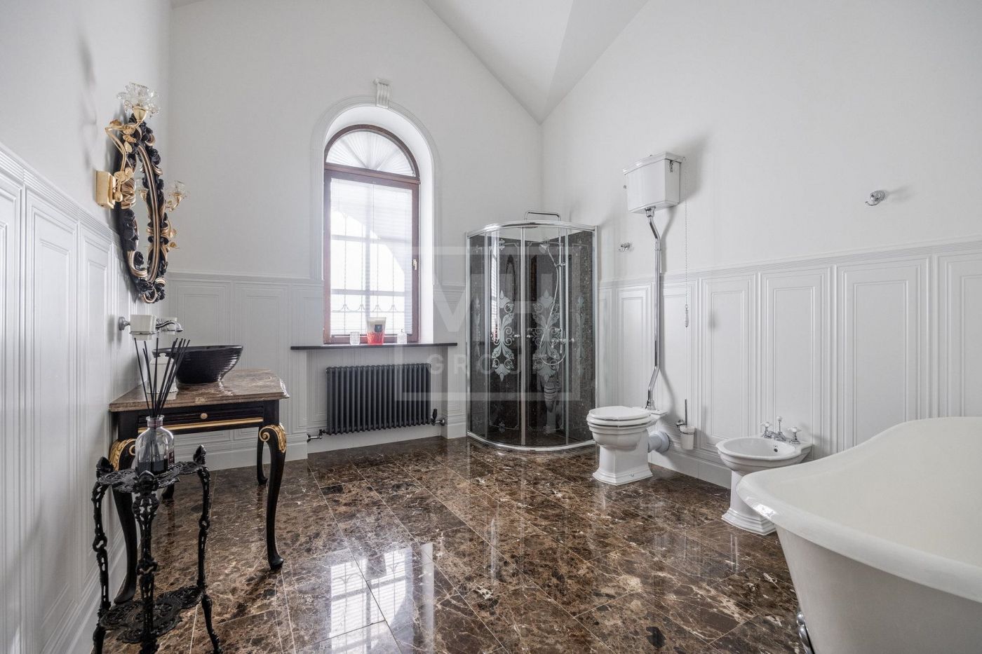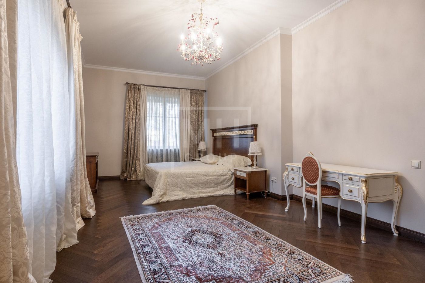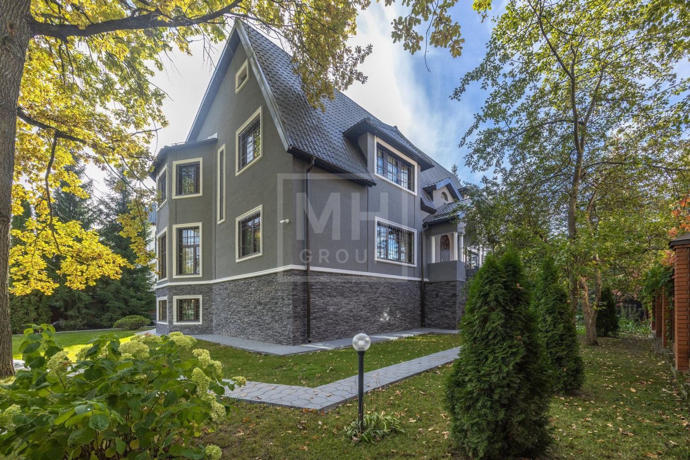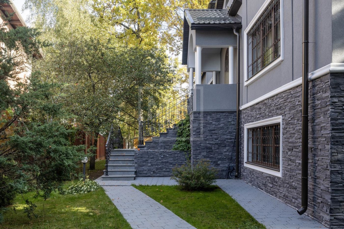 В доме 5 спален (2 на первом этаже и 3 на втором), деревянные окна, двери итальянские из массива, дубовый паркет, много мрамора. Подогрев полов.В цоколе есть сауна, бассейн и помещение свободного назначения. Возможно сделать блок для персонала с отдельным выходом. Также в доме имеется гараж на 2 м/м.