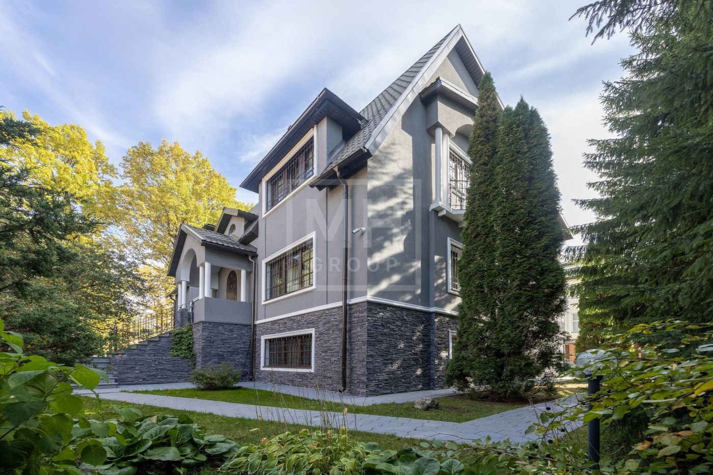 На участке выполнен ландшафтный дизайн, высажены крупномеры.