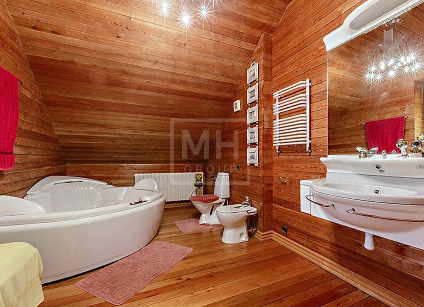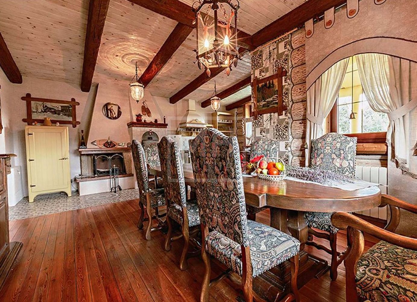В продаже дом в русском стиле с собственным озером 540 кв.м в деревне Славково.Дом построен из реликтового кедра, диаметр бревна 32 см. Коттедж полностью готов для жизни, в нем понастоящему спокойно и уютно, выполнена отделка из качественных материалов, установлена техника от ведущих производителей. Центром притяжения является гостиная с камином и со вторым светом, есть выход на веранду.