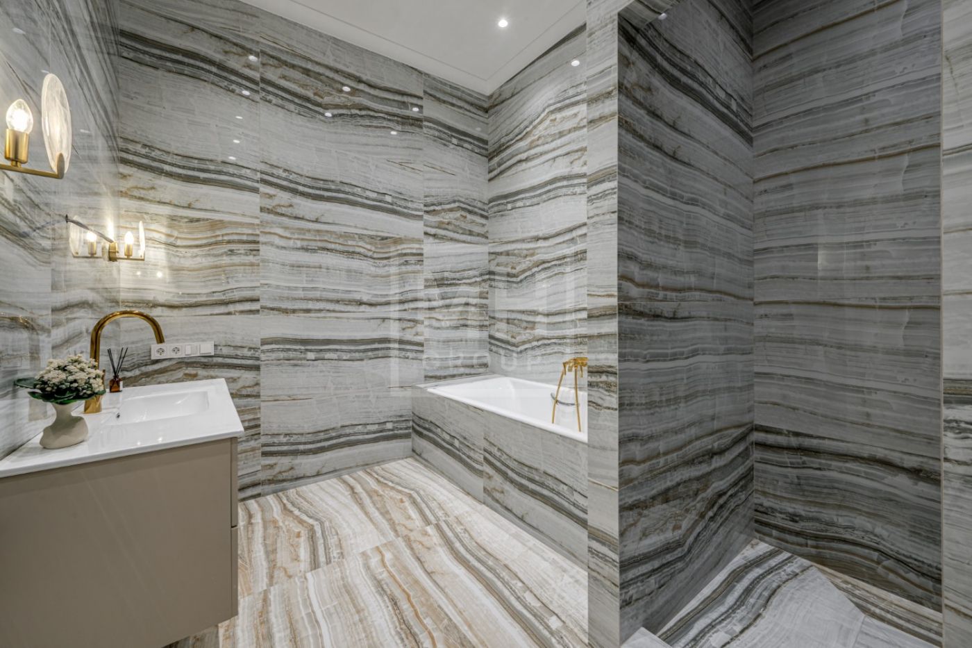 Отделочные материалы премиального класса: сантехника Toto, и техника Korting, смесители Nicolazzi, Omoikiri, натуральный мрамор, мебель от ведущих брендов, кондиционеры — всё для комфорта.