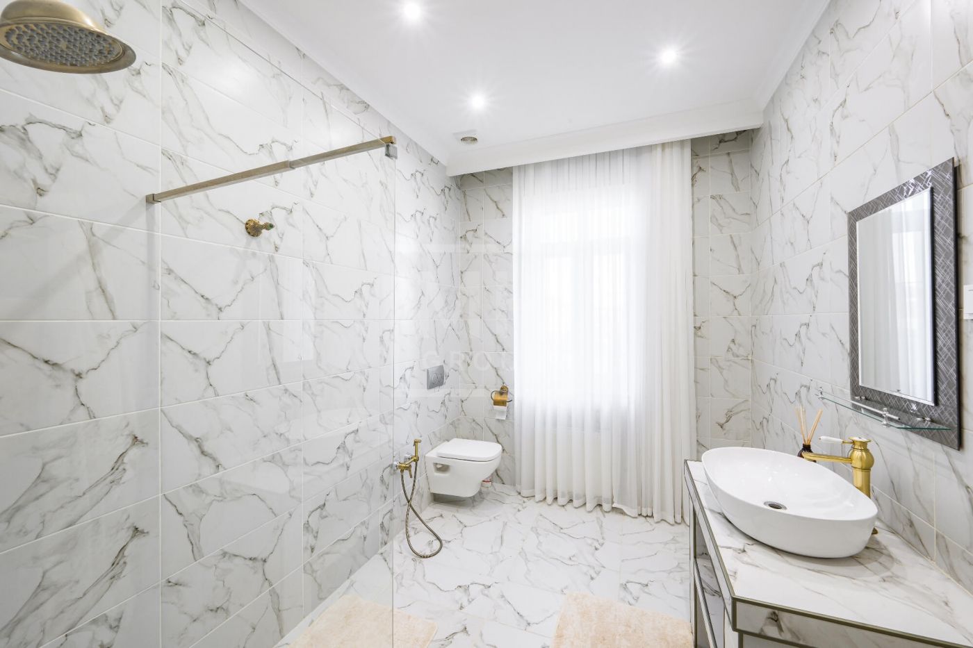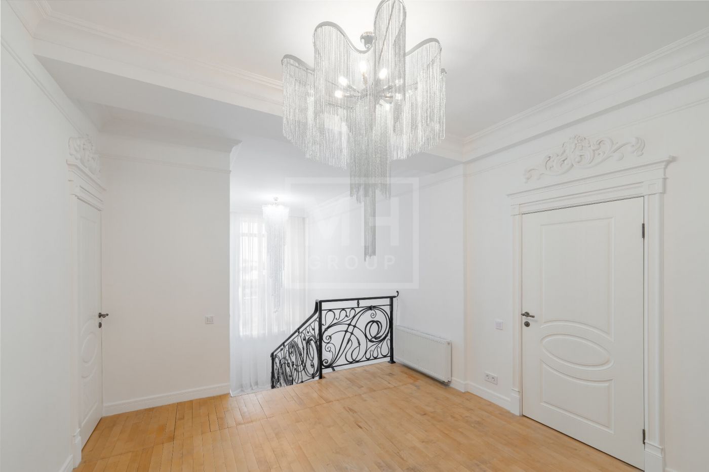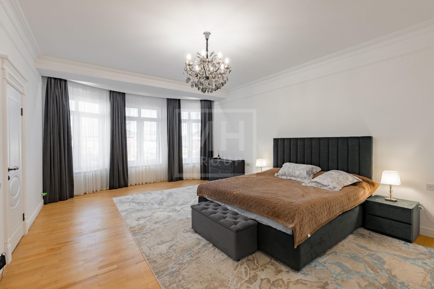 Классический особняк 625 кв.м из красного кирпича в английском стиле на участке 8 соток в КП Николина поляна.В доме: 5 спален (одна из них - на первом этаже), гостиная с камином, большая кухня-столовая с эркером, теплая веранда (зимний сад) с кухонной зоной и выходом на террасу, террасы на первом и втором этажах, мансардный этаж свободной планировки “под чистовую отделку”, постирочная, котельная и кладовые.