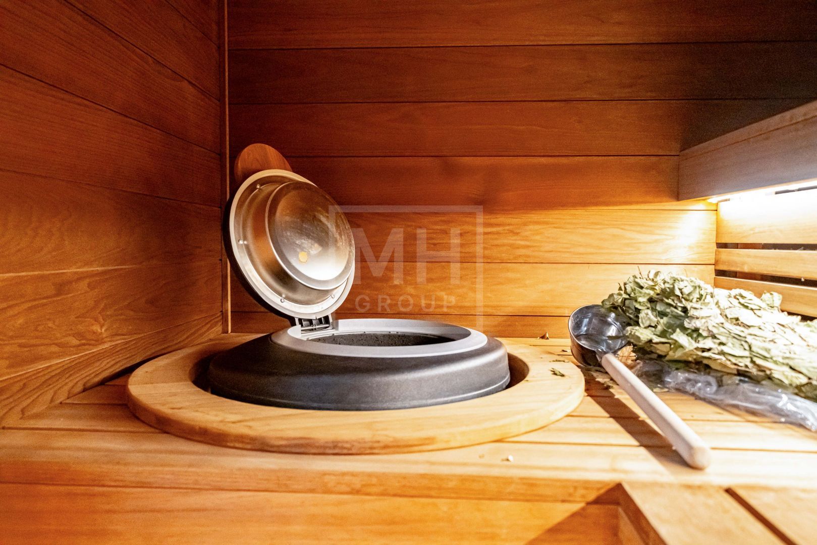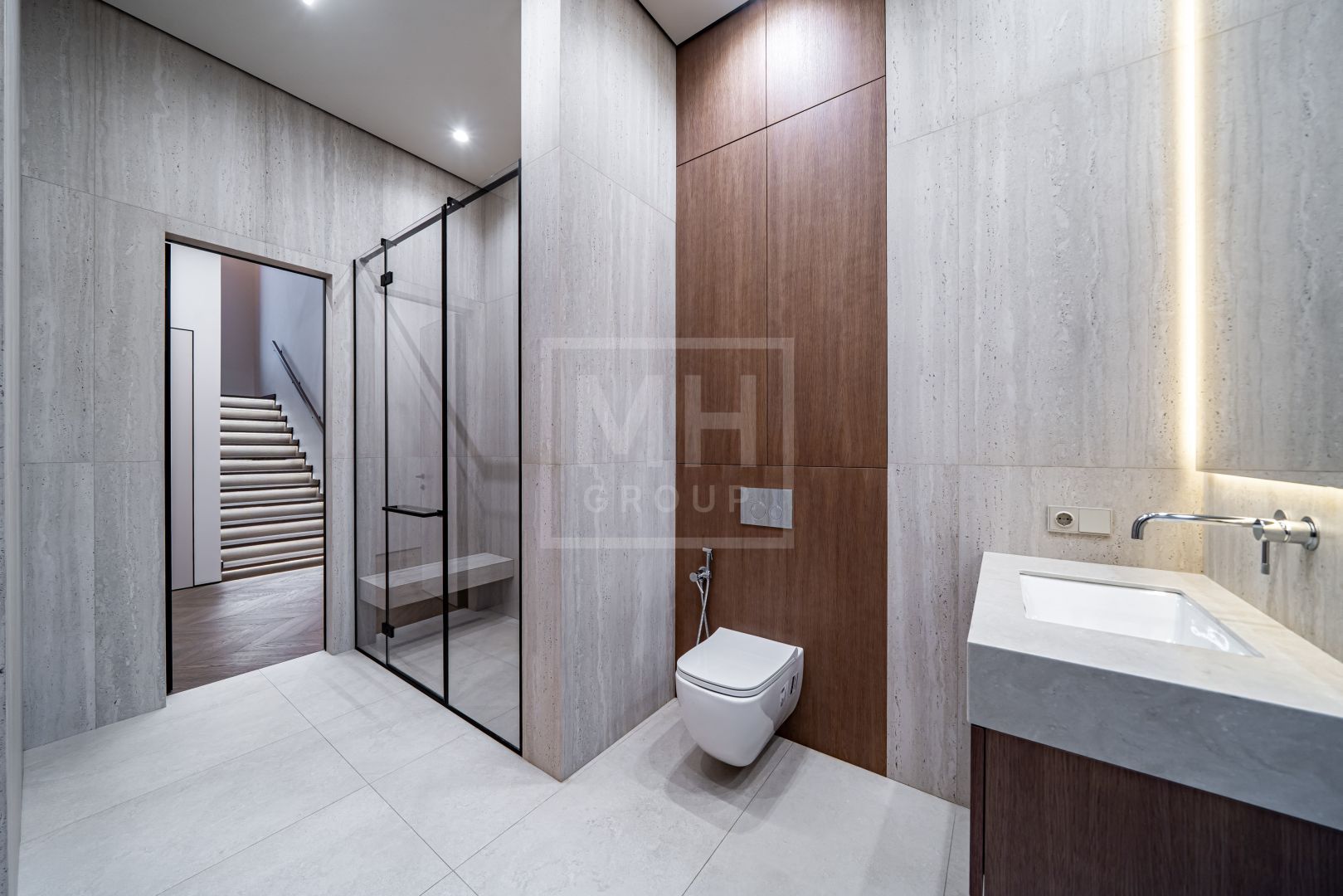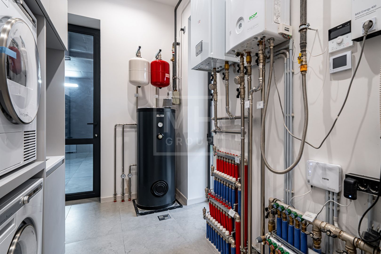 В отделке дома использованы качественные материалы и надежное техническое оборудование : полы – инженерная доска Vecchio (французская елка), керамогранит – Италия / Испания, сантехника – Италия / Германия / Франция, двери – скрытого монтажа, встроенная авторская мебель Rockwood, МДФ/эмаль, сауна - Африканский дуб, термоосина. Финская печь Helo Rondo 960 с мелкодисперсионным паром. Бытовая техника - Asco. Инженерные системы:- газовый и электрический котлы Корея, конвекторы Techno Vent, коллекторы Scout (Италия) нержавеющая сталь/латунь, трубы VALTEC, бойлер ELSEN (Италия) 200 л., кондиционеры Hisense (мульти сплит-система), приточная вентиляционная система Colibri.