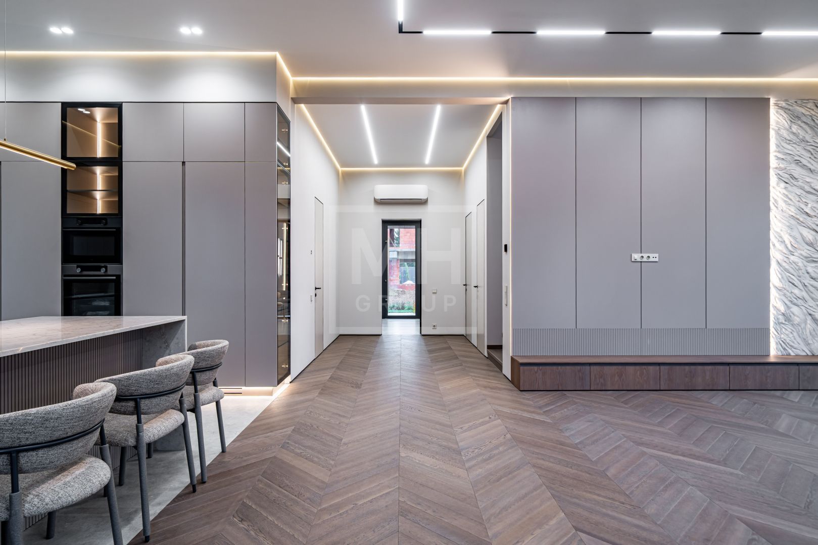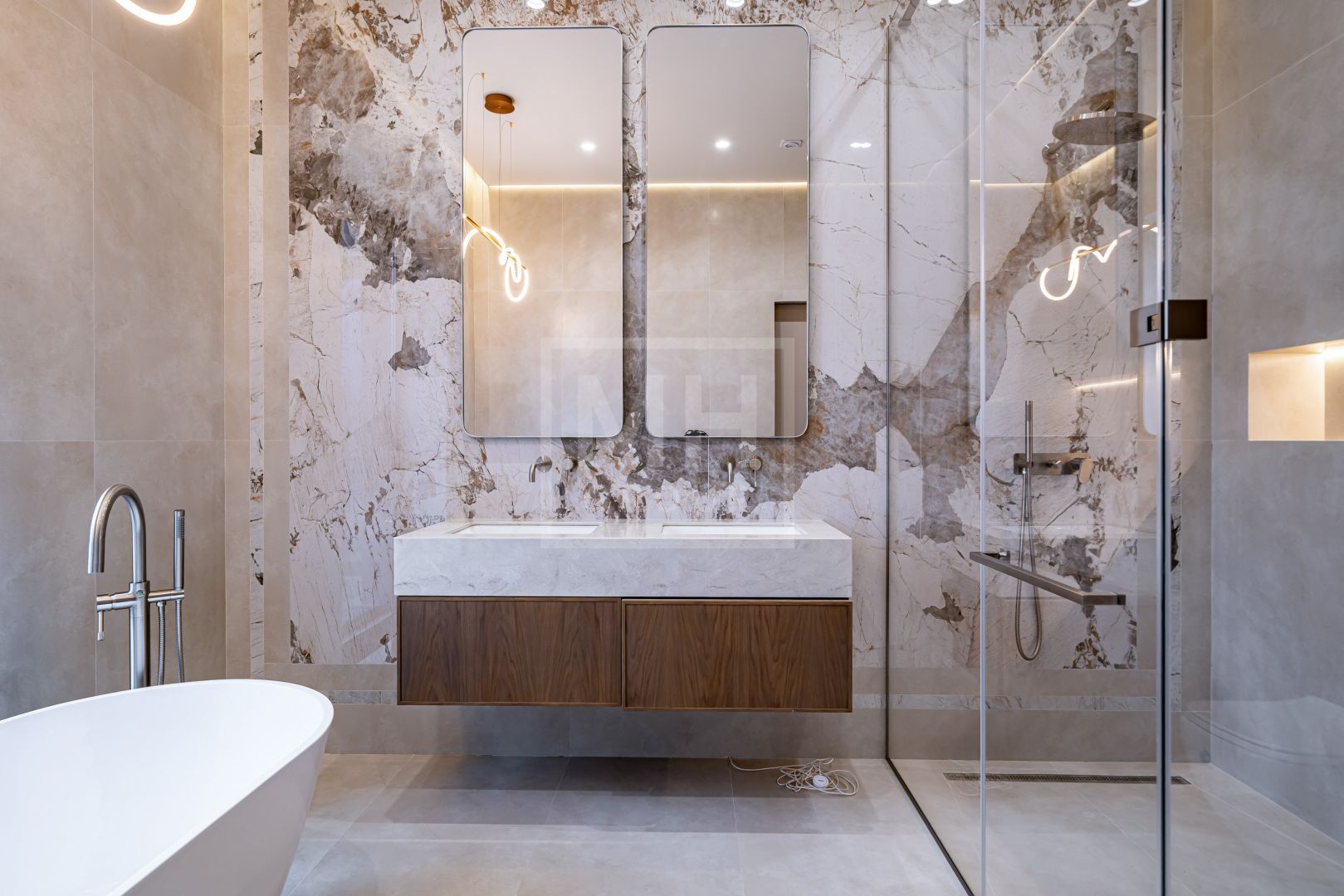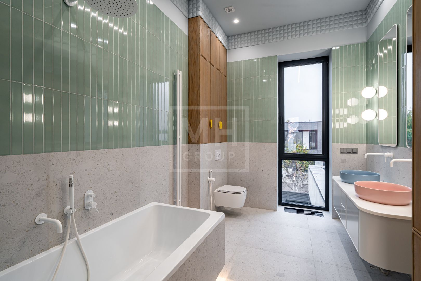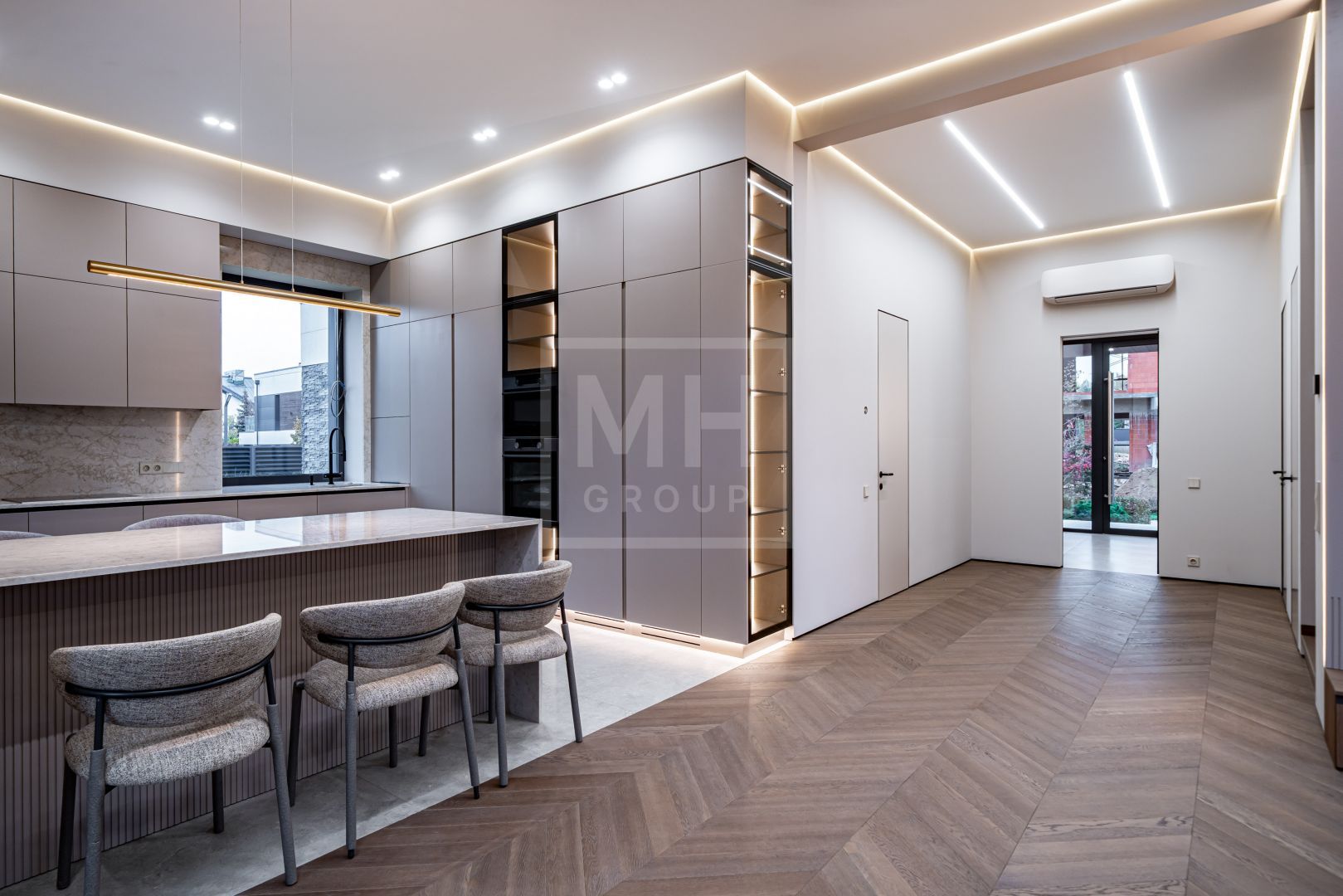 В отделке дома использованы качественные материалы и надежное техническое оборудование : полы – инженерная доска Vecchio (французская елка), керамогранит – Италия / Испания, сантехника – Италия / Германия / Франция, двери – скрытого монтажа, встроенная авторская мебель Rockwood, МДФ/эмаль, сауна - Африканский дуб, термоосина. Финская печь Helo Rondo 960 с мелкодисперсионным паром. Бытовая техника - Asco. Инженерные системы:- газовый и электрический котлы Корея, конвекторы Techno Vent, коллекторы Scout (Италия) нержавеющая сталь/латунь, трубы VALTEC, бойлер ELSEN (Италия) 200 л., кондиционеры Hisense (мульти сплит-система), приточная вентиляционная система Colibri.