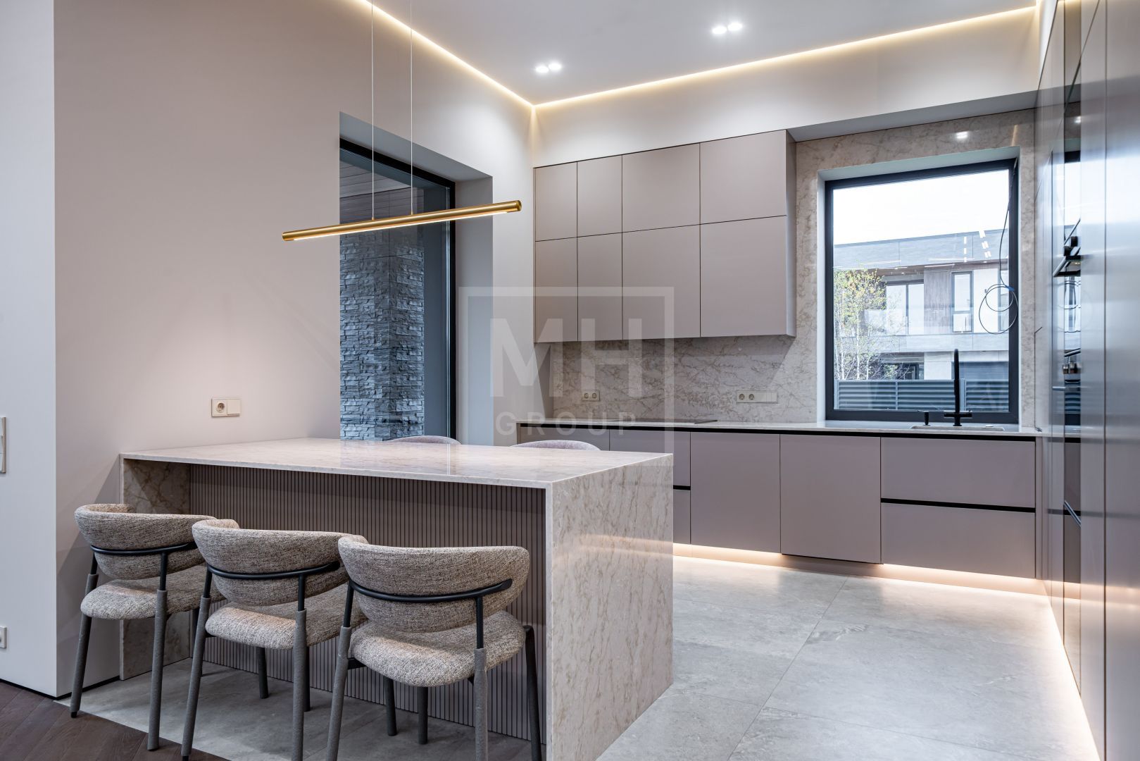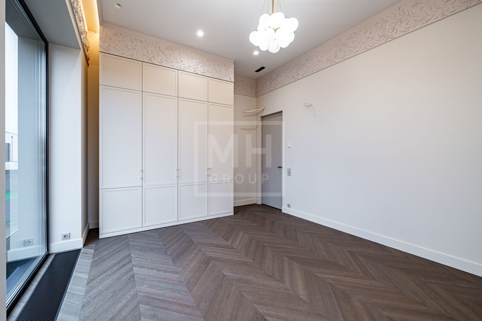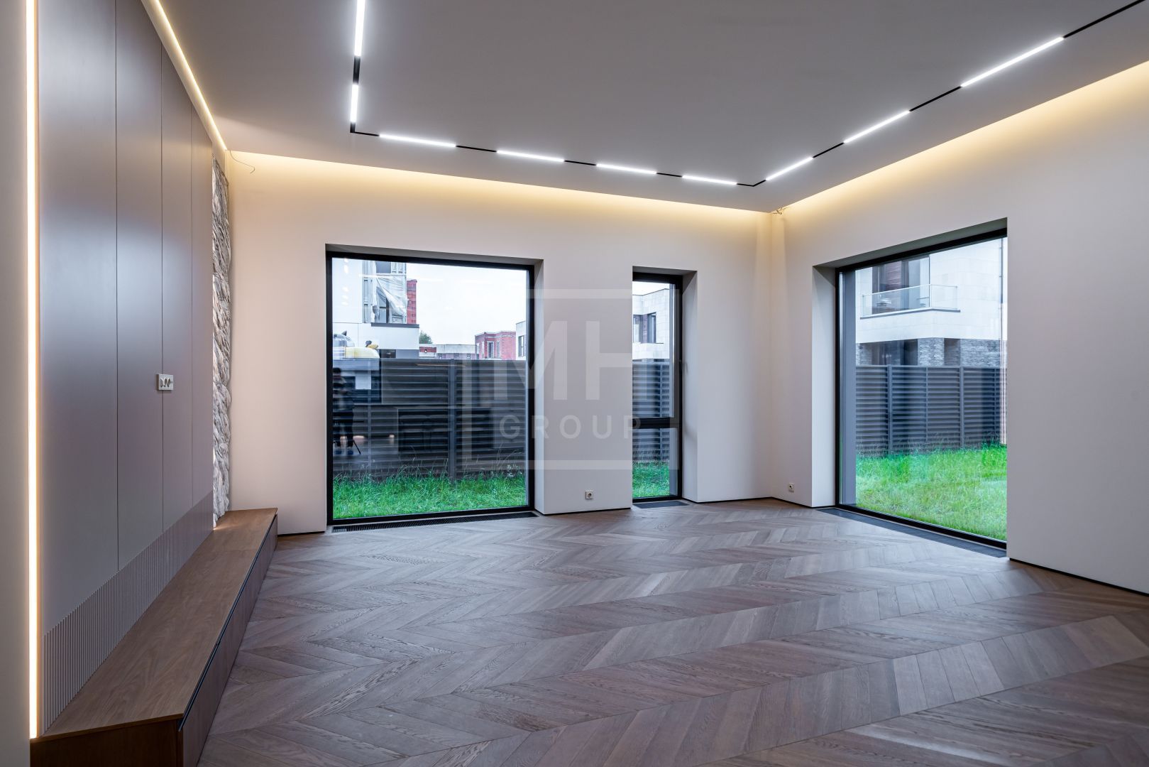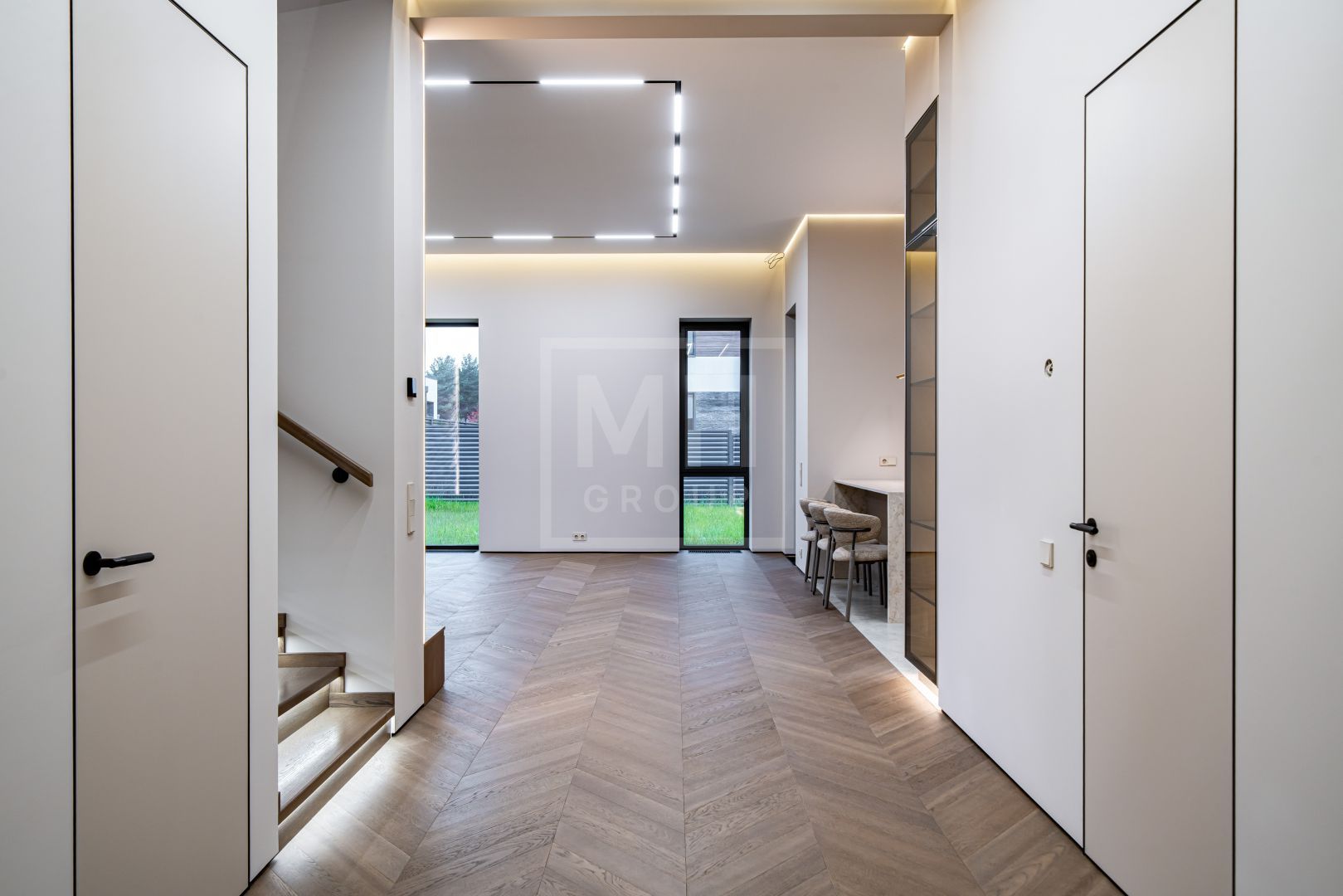 Новый современный качественный дом в охраняемом коттеджном посёлке "Corner Lapino". Ухоженный участок и приятный газон вокруг дома, удобное расположение в посёлке, респектабельное окружение, все дома построены в едином современном стиле.В доме эргономичные планировки, высокие потолки (4 метра), зонирование выполнено таким образом, что вся площадь дома функционально задействована.