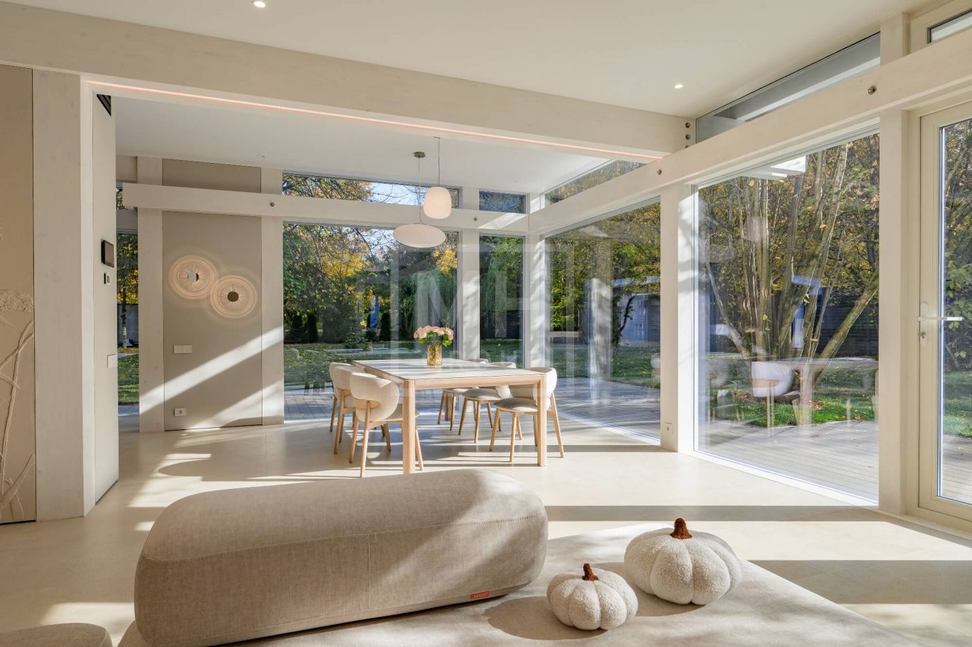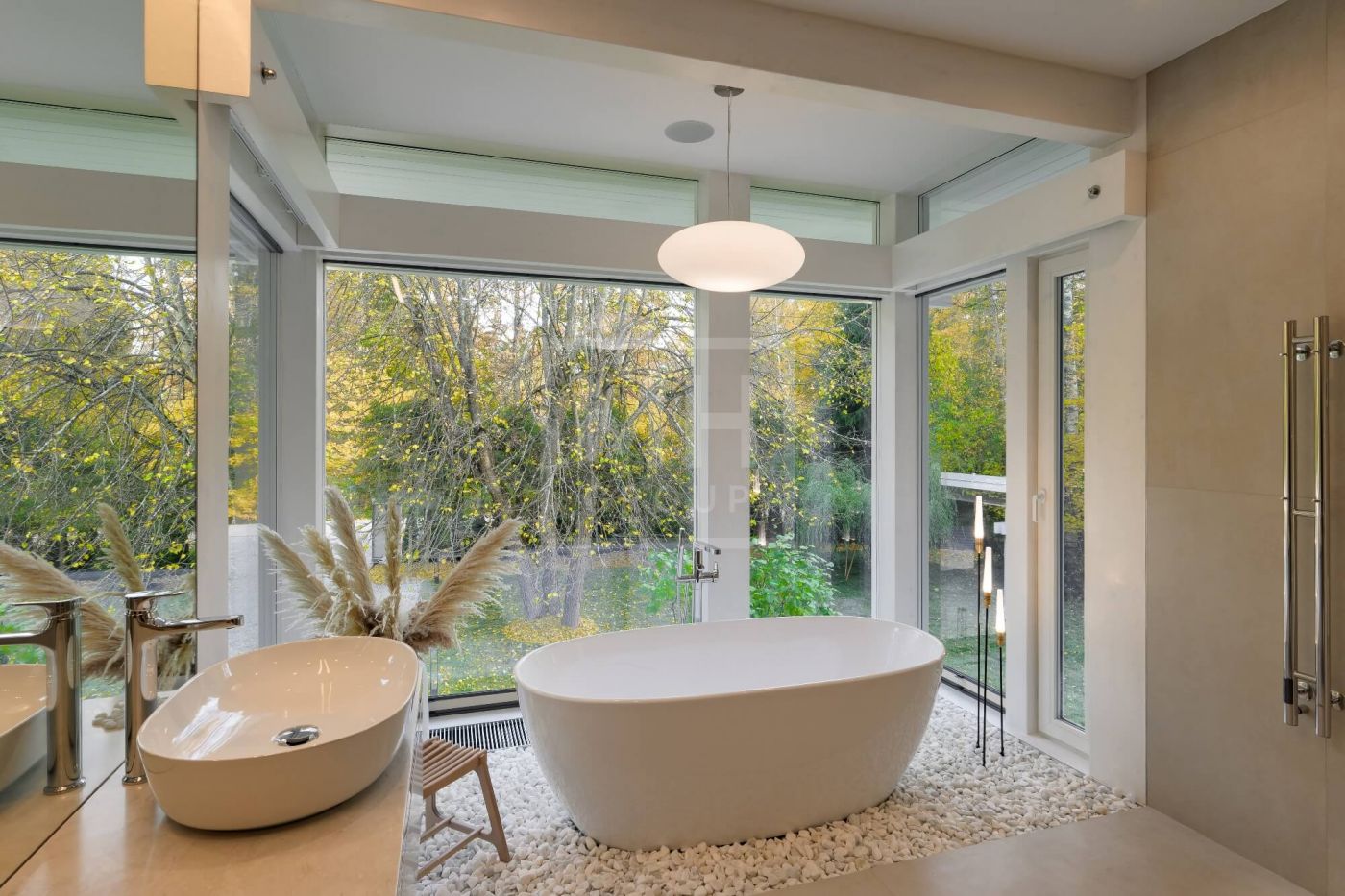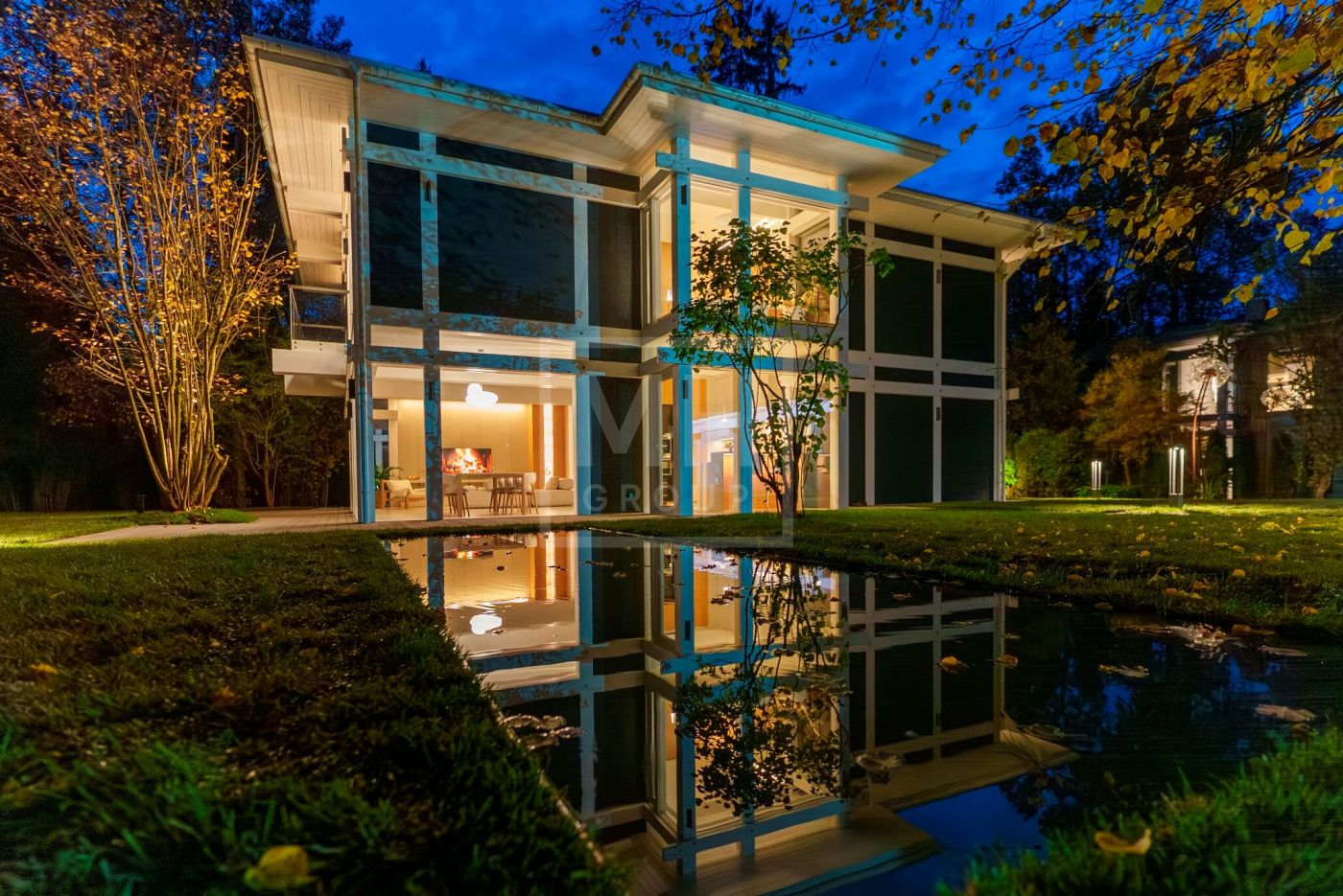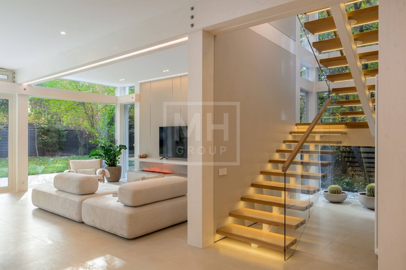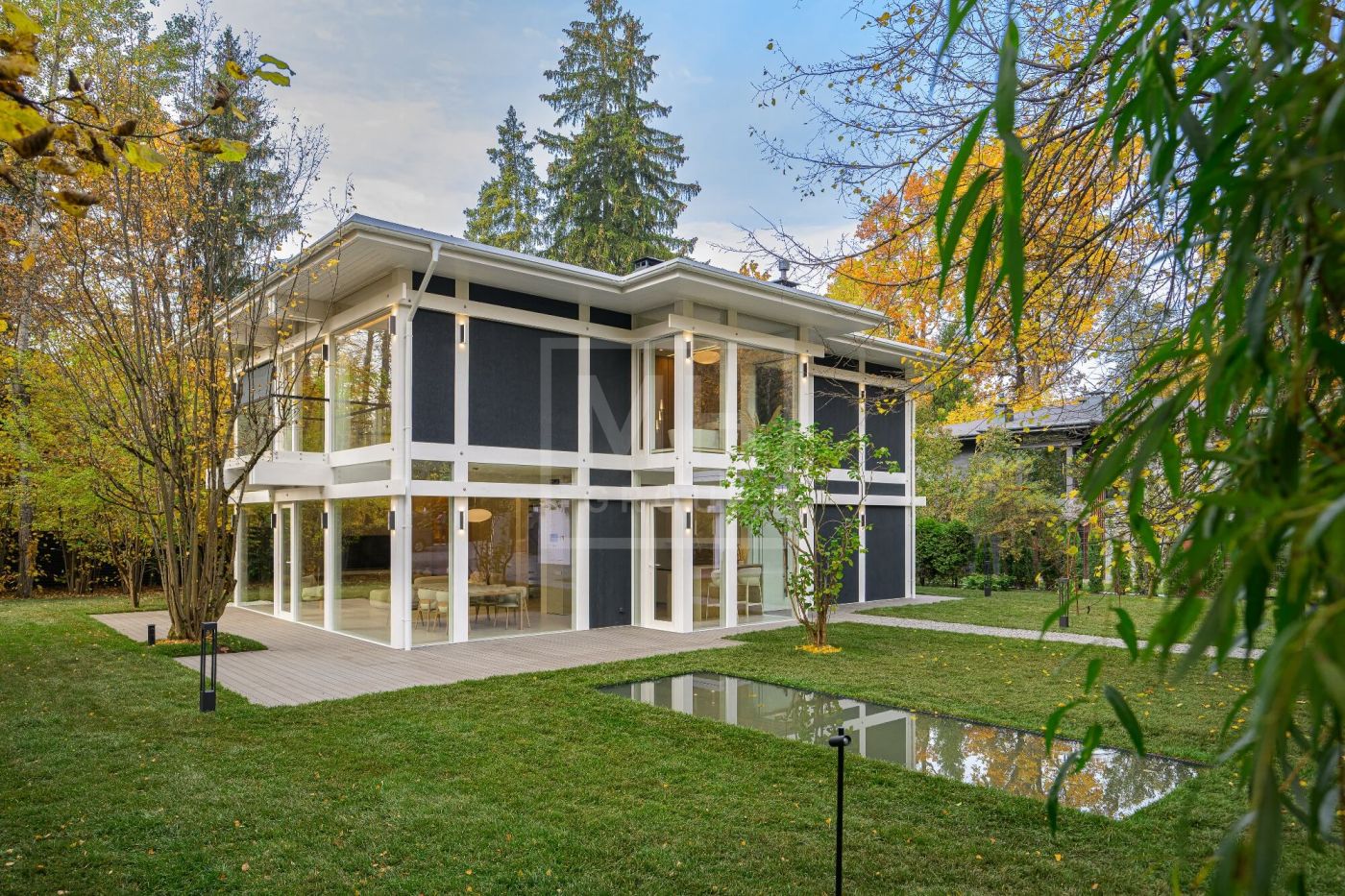 Абсолютно новый уникальный дом площадью 315 кв. м, построенный по немецкой технологии фахверк на участке 15,3 сотки с вековыми елями и дубами в тихом лесном поселке в 26 км от МКАД по Рублево-Успенскому шоссе.Стеклянные стены от пола до потолка, потрясающие виды на собственный сад, высокие потолки, высококачественная отделка,монолитное межэтажное перекрытие .