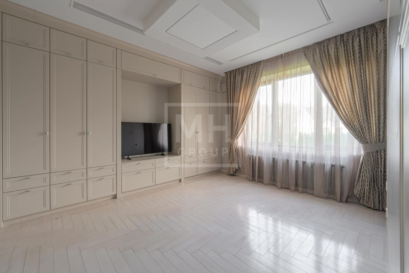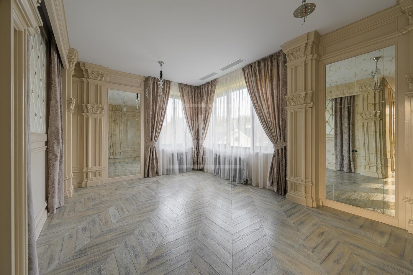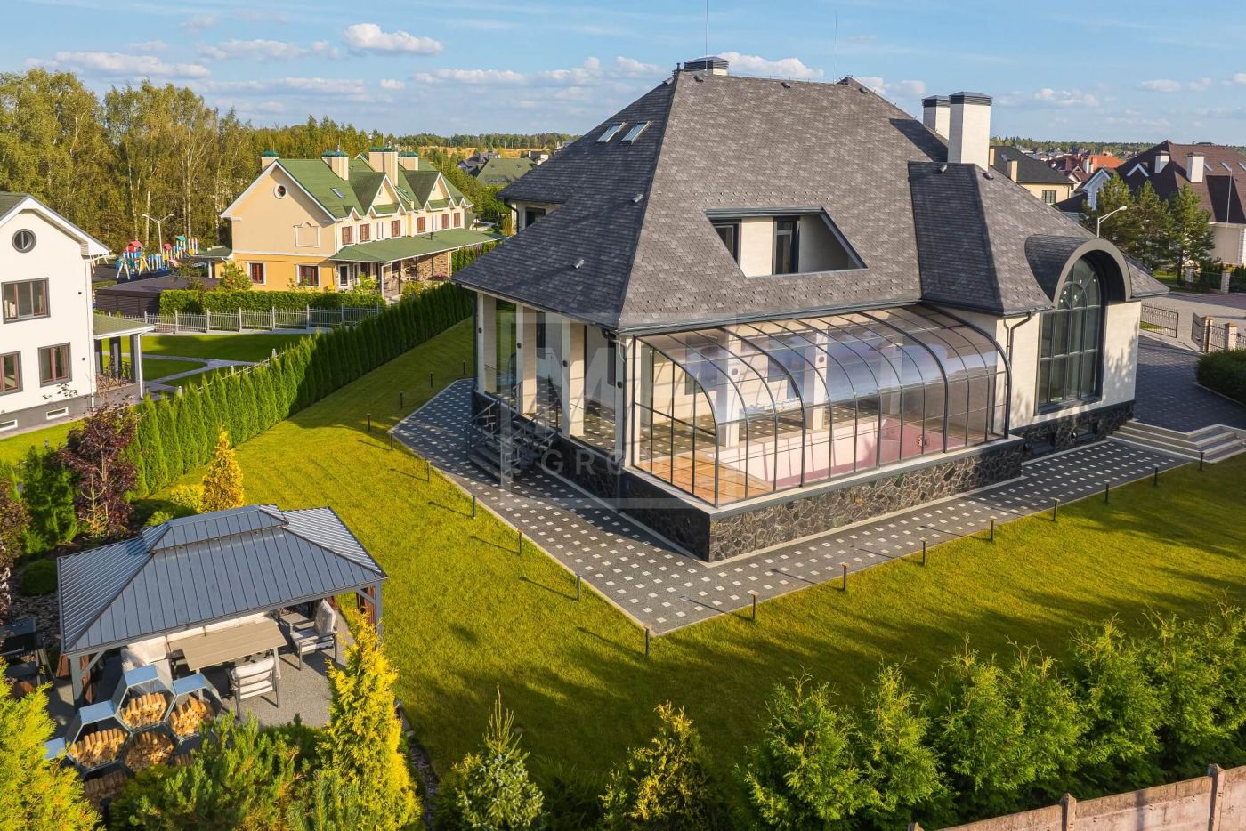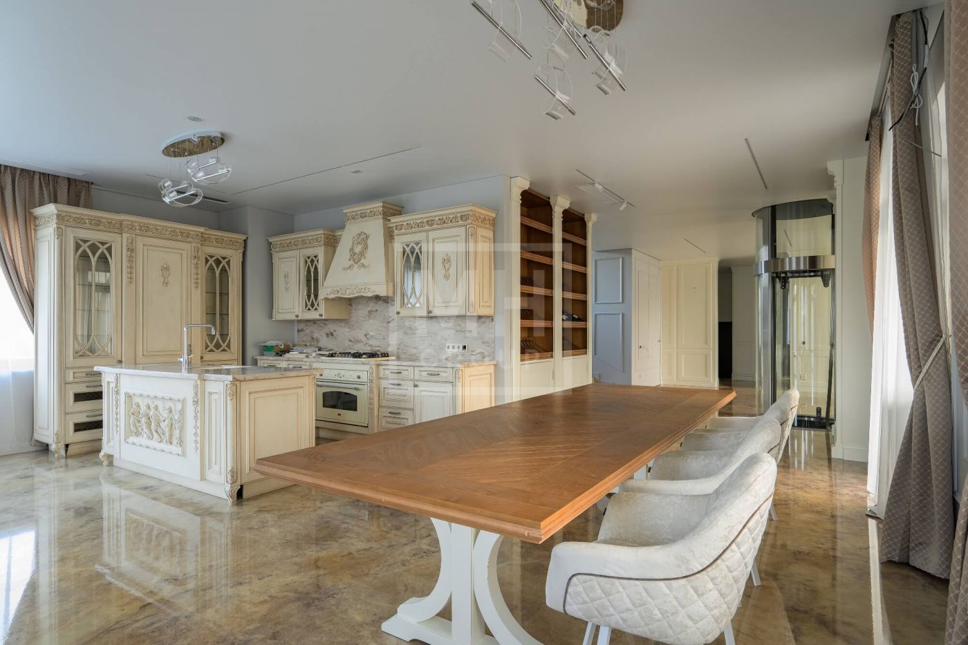 Стильный дом 870 кв.м на зеленом участке 19 соток в коттеджном поселке Крона в 25 км от МКАД по Новорижскому шоссе.В доме: 5 спален, 7 с/у, гостиная, кухня-столовая с выходом на террасу, бассейн, спа-зона, кинотеатр с баром, кабинет, лестничный холл, котельная, постирочная, гардеробная для сезонных вещей, гараж на 2 м/м, подсобные и технические помещения.
