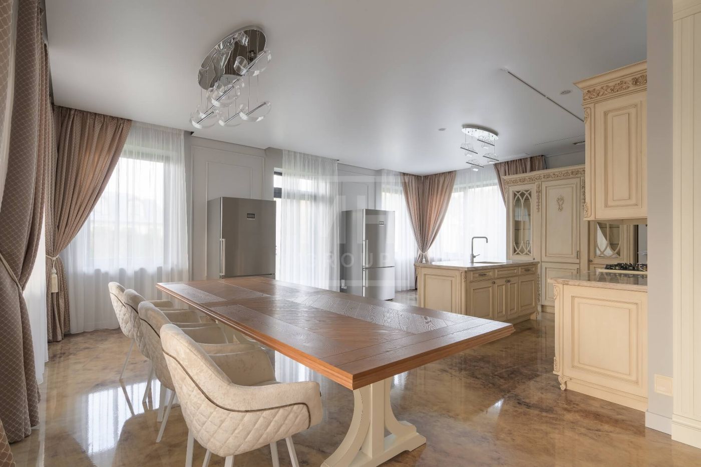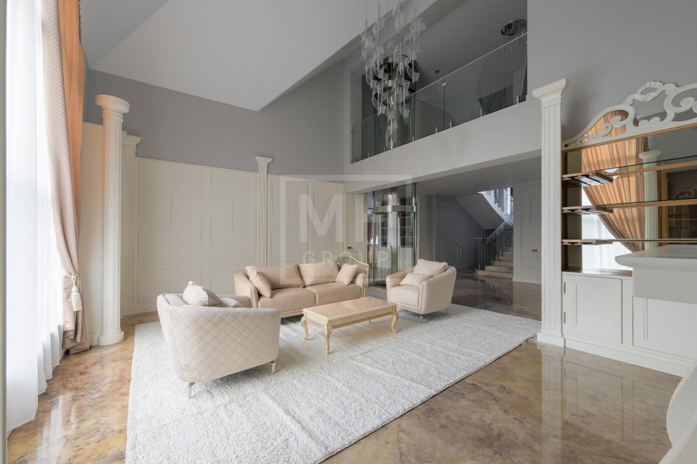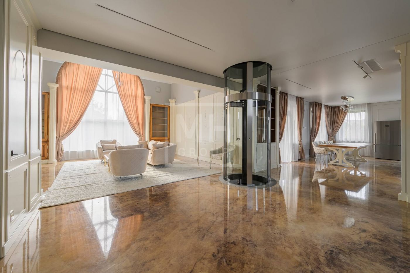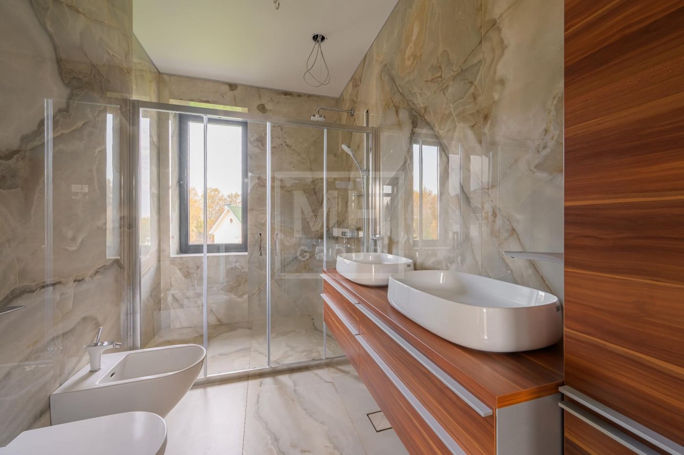 Стильный дом 870 кв.м на зеленом участке 19 соток в коттеджном поселке Крона в 25 км от МКАД по Новорижскому шоссе.В доме: 5 спален, 7 с/у, гостиная, кухня-столовая с выходом на террасу, бассейн, спа-зона, кинотеатр с баром, кабинет, лестничный холл, котельная, постирочная, гардеробная для сезонных вещей, гараж на 2 м/м, подсобные и технические помещения.