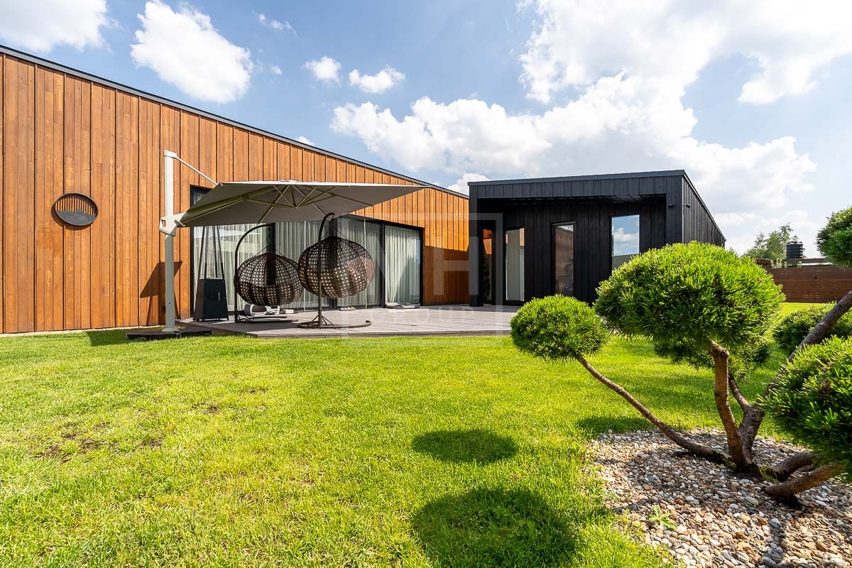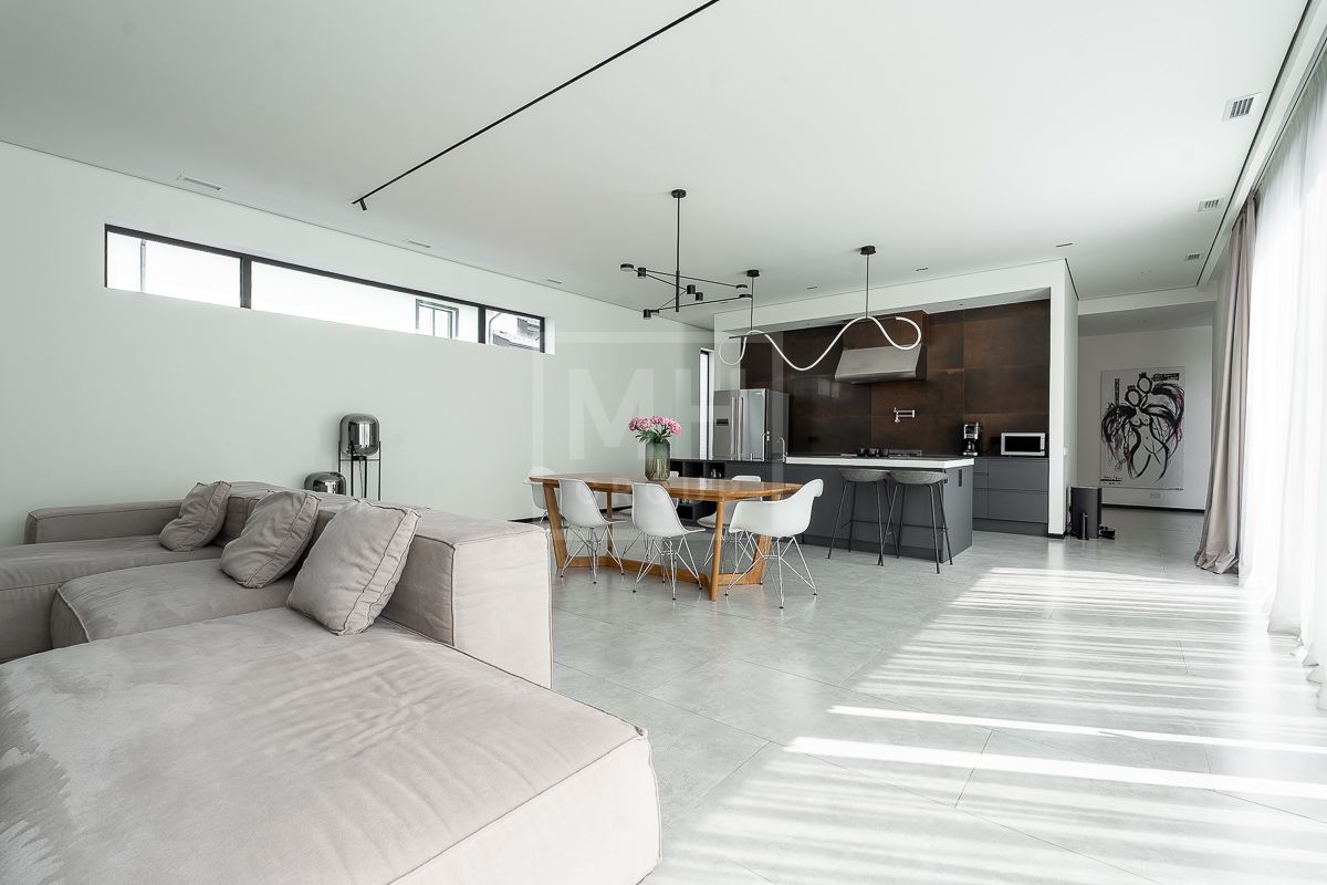 Одноэтажный загородный дом в современном стиле площадью 310 м2 построен на парковом участке 12 соток со своим выходом в парковую зону КП "Новорижский". Дом полностью мебелирован. В нём спланировали 4 спальни, просторную зону гостиной-кухни-столовой, а также гараж на 2 автомобиля и постирочную комнату.Дом построен в 2023 году по индивидуальному проекту, как энергоэффективный, что снижает затраты по эксплуатации более, чем в два раза, с применением самых современных строительных и инженерных решений. Установлена система автоматизации "умный дом" с возможностью удаленного управления. Дом оборудован самыми современными решениями в области отопления, водоснабжения и вентиляции.