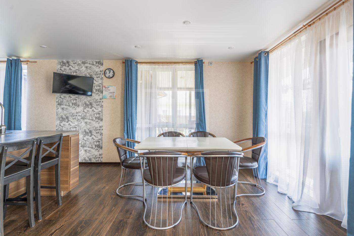 Дом очень светлый, теплый и уютный благодаря высоким потолкам и панорамным окнам. Стильный интерьер полностью укомплектован мебелью и бытовой техникой.Дом произведен из качественных материалов по канадской технологии знаменитой фирмой Терем, хорошо утеплен, поэтому внутри всегда комфортный микроклимат.