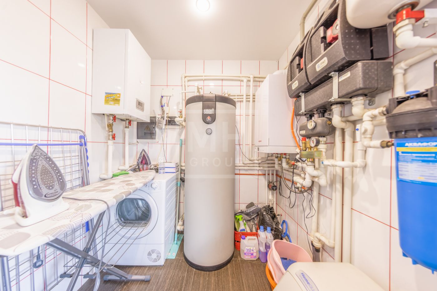 На первом этаже и во всех санузлах сделаны теплые полы. Отопление и ГВС дома от газового котла с резервным электрическим котлом.