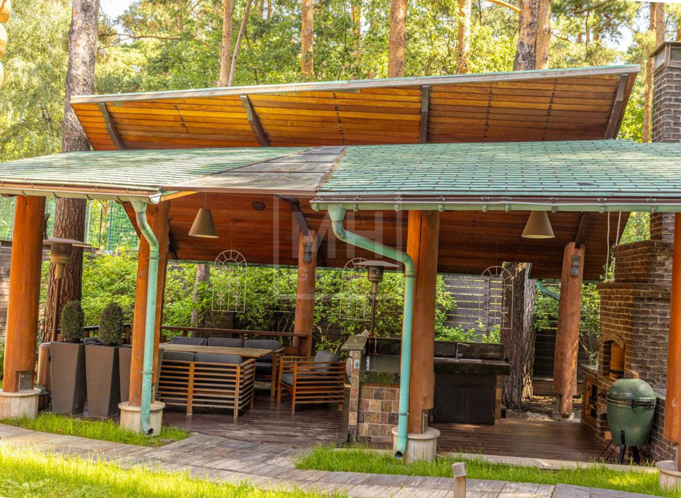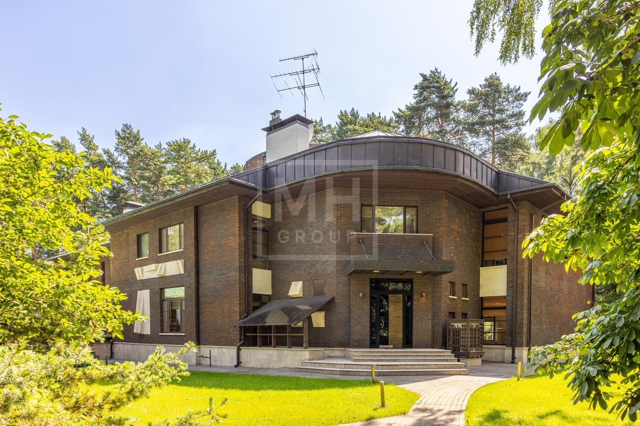 Предлагается к продаже роскошный и очень уютный дом, фасады здания выполнены архитектурным бюро Николая Голованова и Дмитрия Величкина в стилистике известнейшего американского архитектора Фрэнка Ллойда Райта, облицованы дорогостоящим немецким клинкерным кирпичом и кварцитом. Вся кровельная фурнитура всех построек на участке выполнена из меди. Подшивки карнизов – дерево. Окна с тройным остеклением, отсечением излишних УФ лучей и шумоизоляцией, в деревянных рамах. У дома имеются просторные балконы.Особенностью архитектуры является то, что центр дома имеет округлую форму, таким образом, в гостиной, кабинете хозяина и мастер спальне нет острых углов, что способствует комфорту и умиротворению.