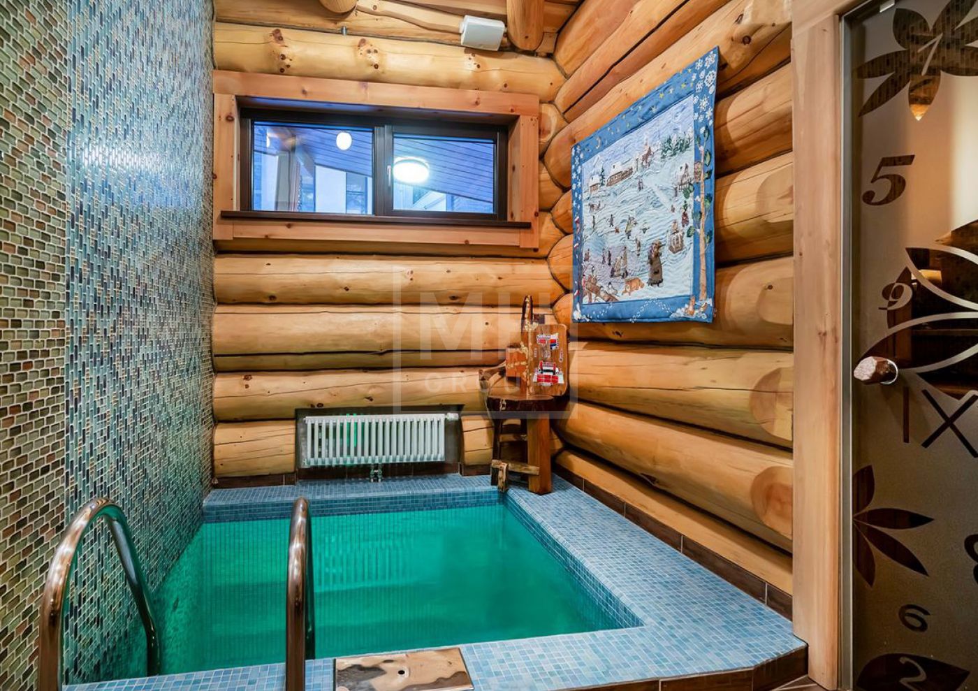 Баня из цельного сибирского кедрового бруса с печью Mironoff мелко дисперсного пара, двумя зонами отдыха, купелью и столом для мыльного массажа – это изюминка данного домовладения!