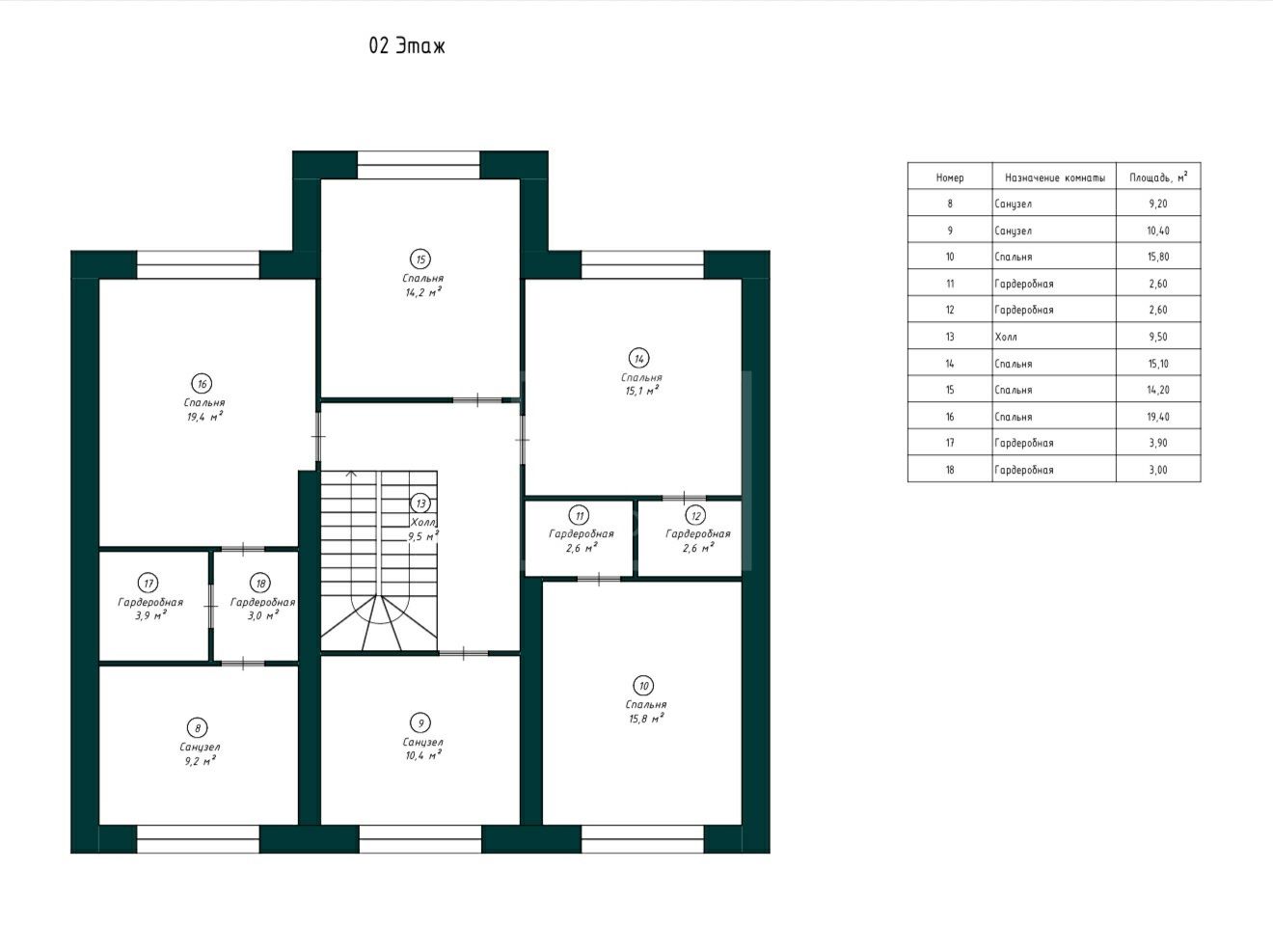 Этаж 2: мастер- спальня со своим с-у и гардеробной, три спальни с гардеробными, с-у.