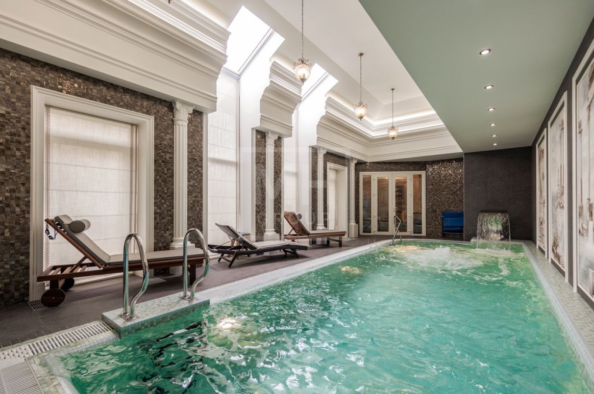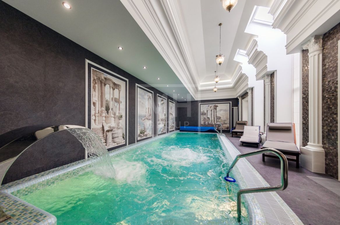На участке расположен SPA-комплекс: бассейн 10,5х3,7 м, сауна, хамам. Гараж на два машино-места с помещением для персонала.