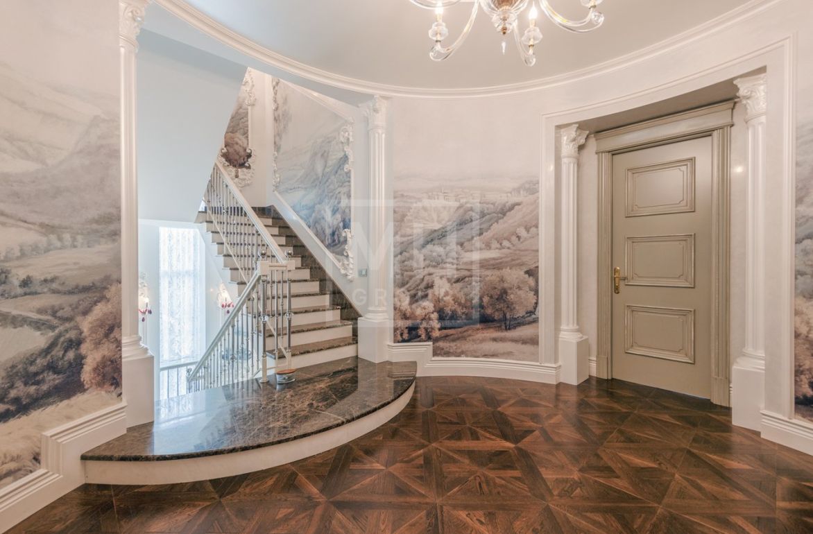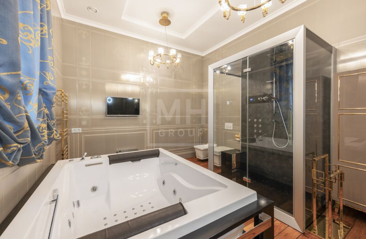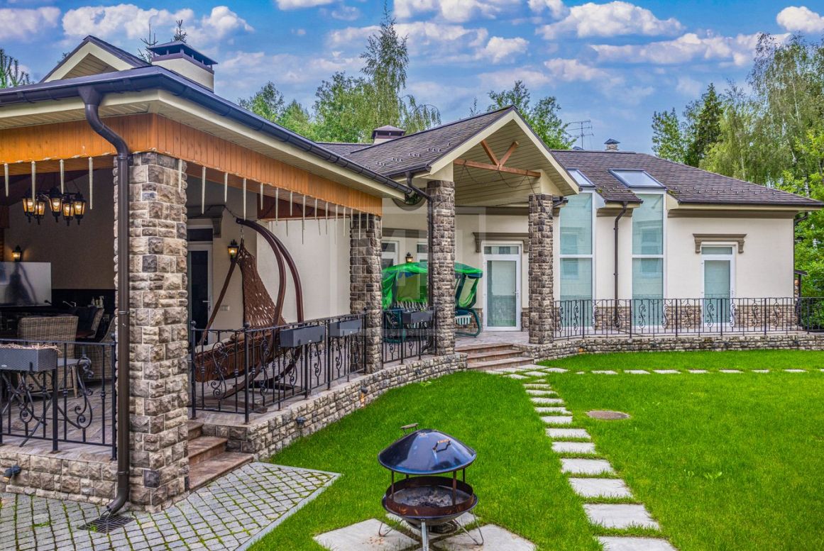 Площадь основного дома составляет 605 м² с продуманной планировкой, расположен на участке 24 сотки с ландшафтным дизайном и системой дренажа и автополива.