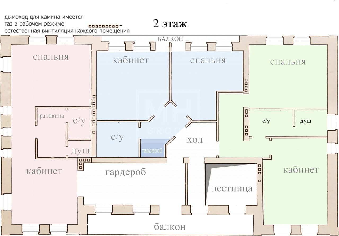 Этаж 2: 4 спальни, два кабинета, 3 с/у, гардеробная, балкон