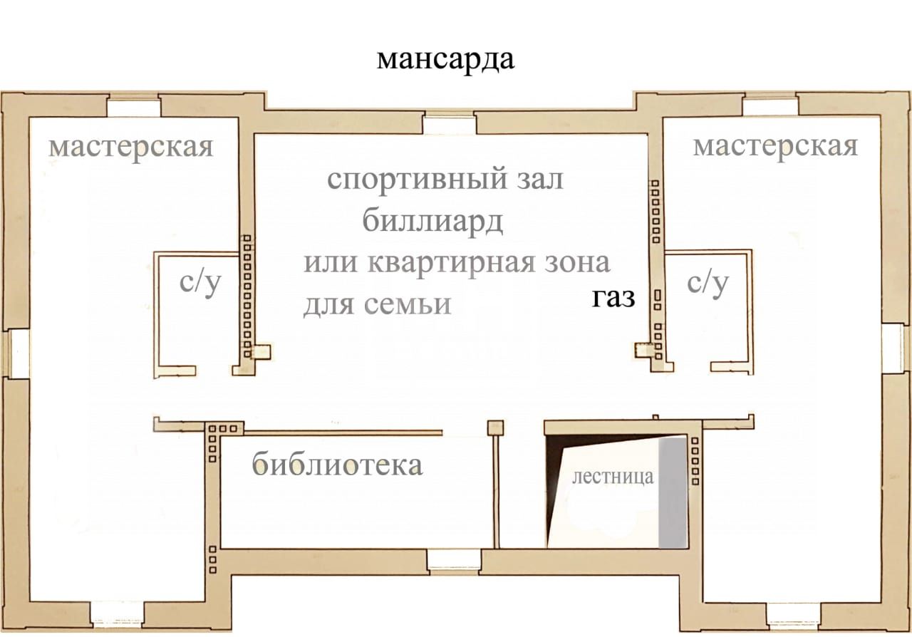 Мансарда: бильярдная, библиотека, 2 студии/мастерские, 2 с/у.
