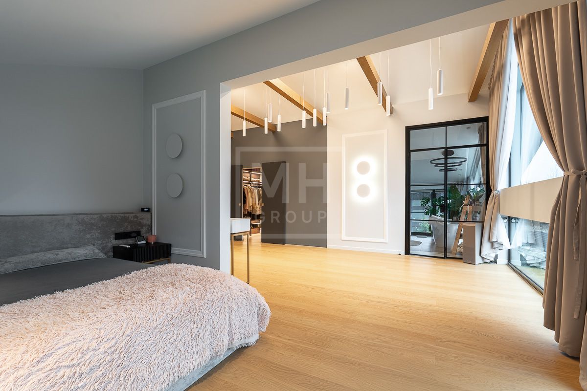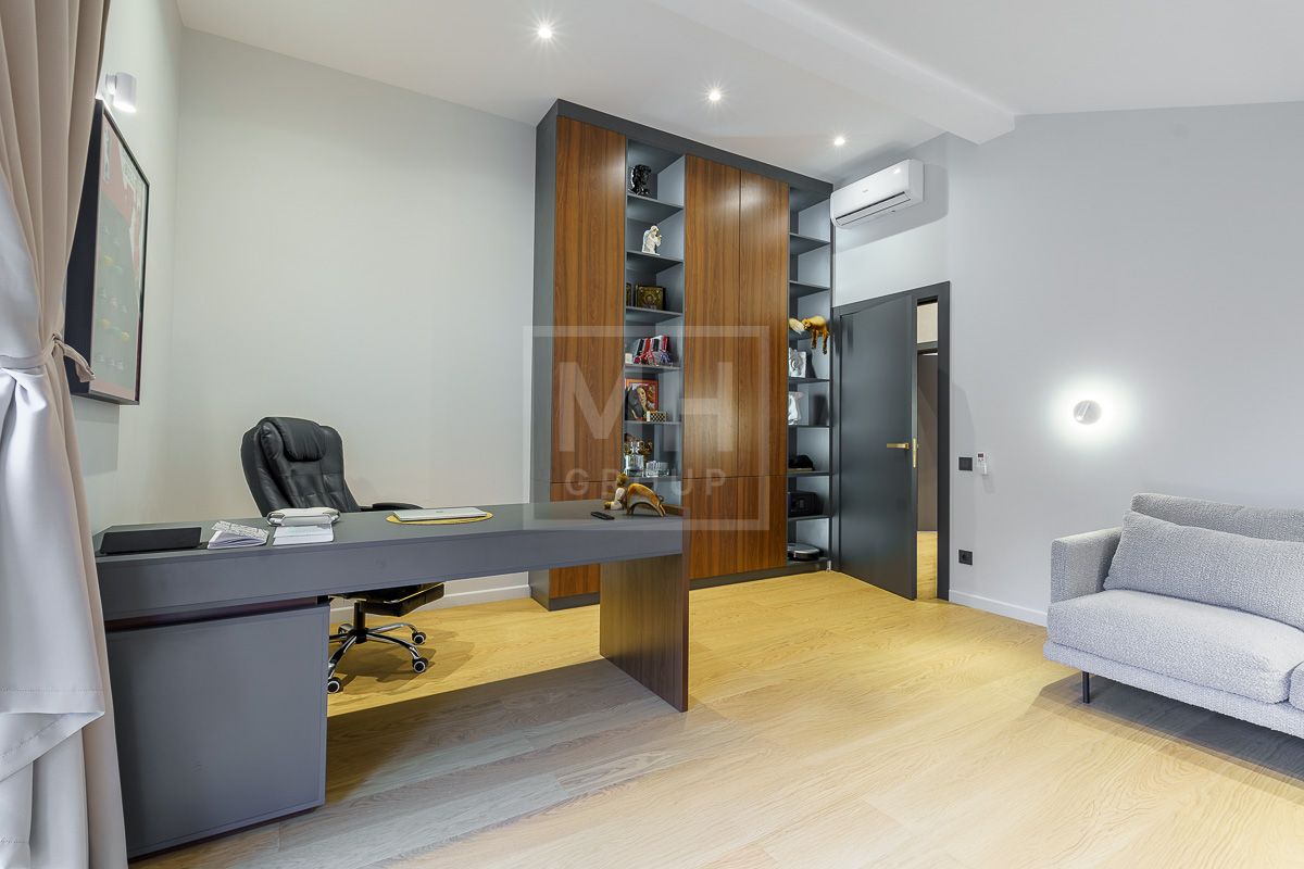 - В доме предусмотрены: 4 спальни, 4 с/У, кухня, гостиная, столовая, постирочная, кладовая и кабинет.