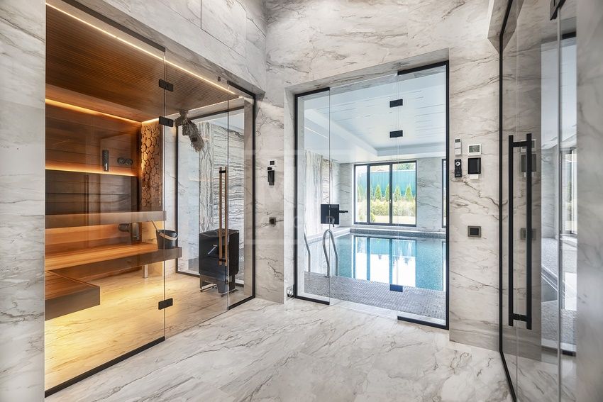Этаж 1: кухня, столовая, гостиная, рабочая кухня, с/у, постирочная, с/у СПА зона: с бассейн 8х7, сауна хамам.