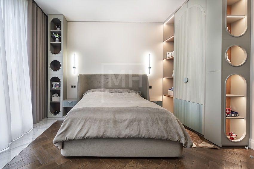 Этаж 2: мастер блок с гардеробом и с/у, 4 спальни с гардеробными и с/у.