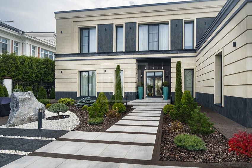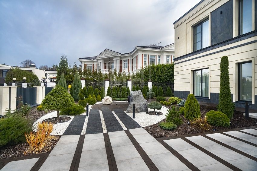 На участке выполнен ландшафтный дизайн. По периметру дома применены системы снеготаяния.