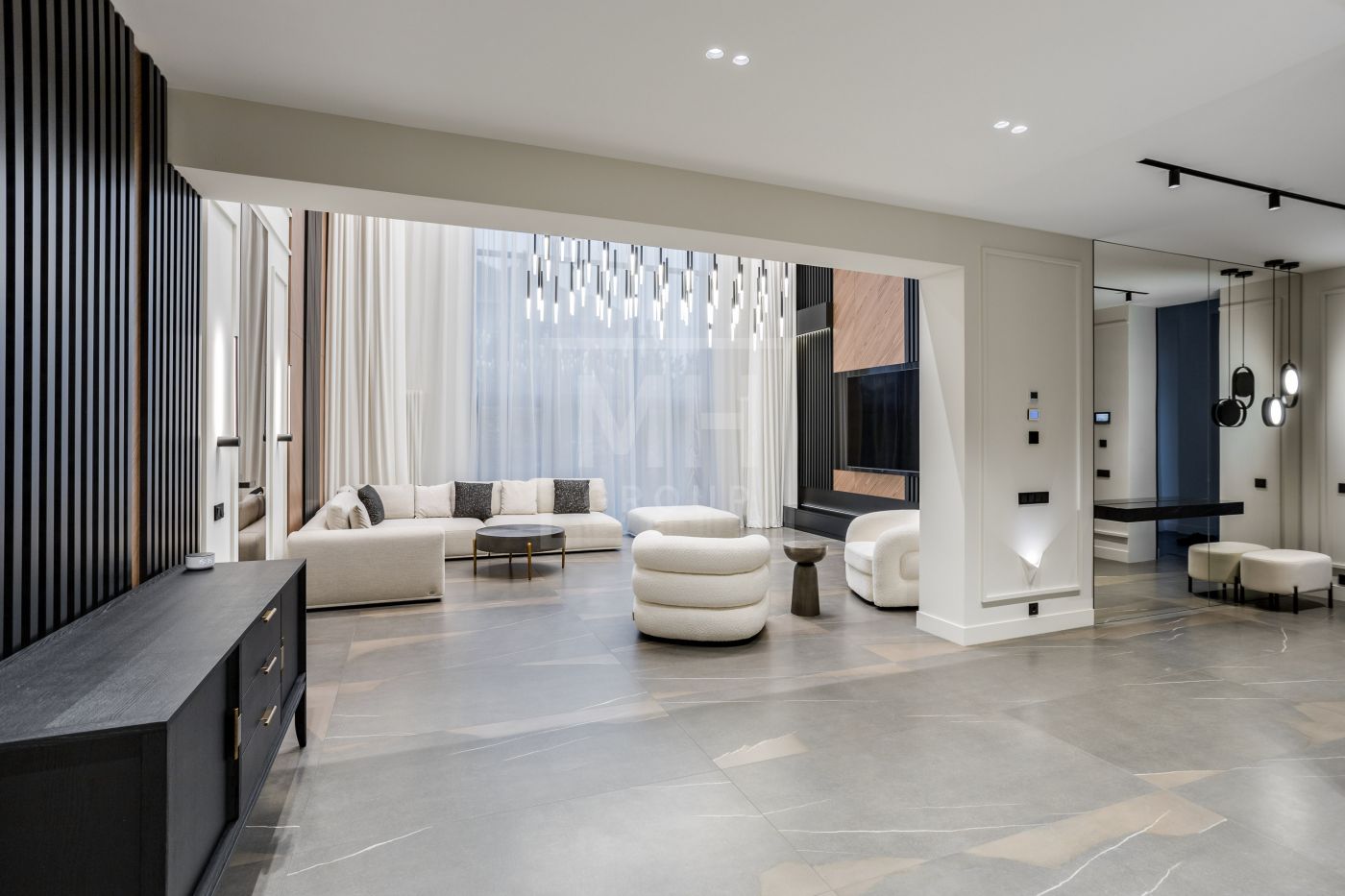 Новый дом под ключ с мебелью на большом участке, расположен в центре поселка Крона вдали от дорог и шума. Фасад дома облицован клинкерным кирпичом ручной формовки Участок правильной прямоугольной формы 20 соток.Фасад дома отделан натуральным камнем с клинкерной плиткой. Цоколь фасада - гранит. Отмостка дома монолитная, сверху выполнен гранит. Система видеонаблюдения по периметру .дома. Архитектурное освещение дома.