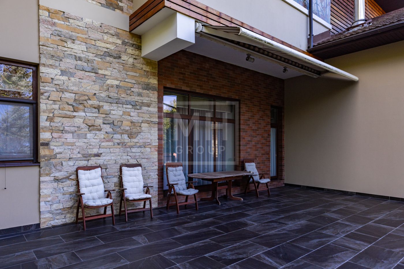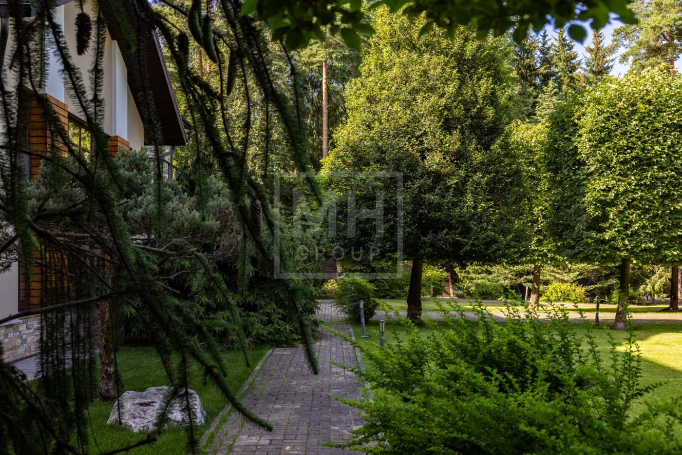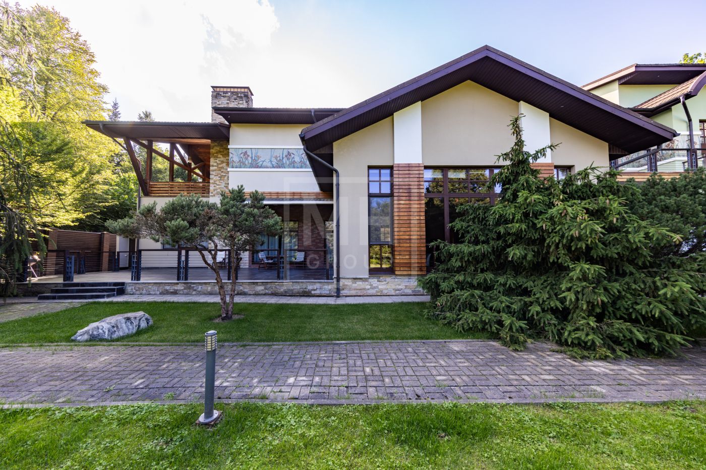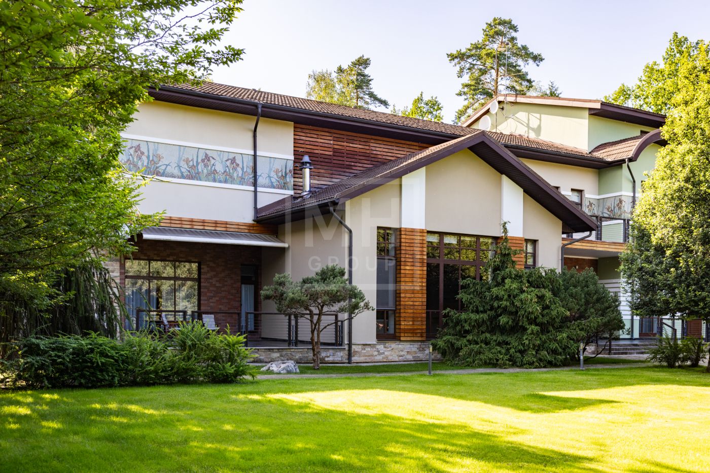 Дом расположен на живописном лесном участке площадью 60 соток с липовой аллеей у парадного входа. Благодаря продуманному ландшафтному дизайну и хвойному массиву по периметру участка здесь царит редкое ощущение покоя, и природа подчеркивает уединенность пространства. Фасад выполнен в выразительном сочетании фактур и материалов.Архитектура привлекает внимание сложной геометрией и нестандартными объемами. В интерьере — теплая, природная палитра, мягкий свет, спокойные оттенки и натуральные материалы, создающие ощущение уюта и сбалансированного ритма жизни. Высокие потолки и второй свет придает пространству легкость и масштаб. Из окон открывается вид на хвойный массив. По всему периметру дома расположены террасы..