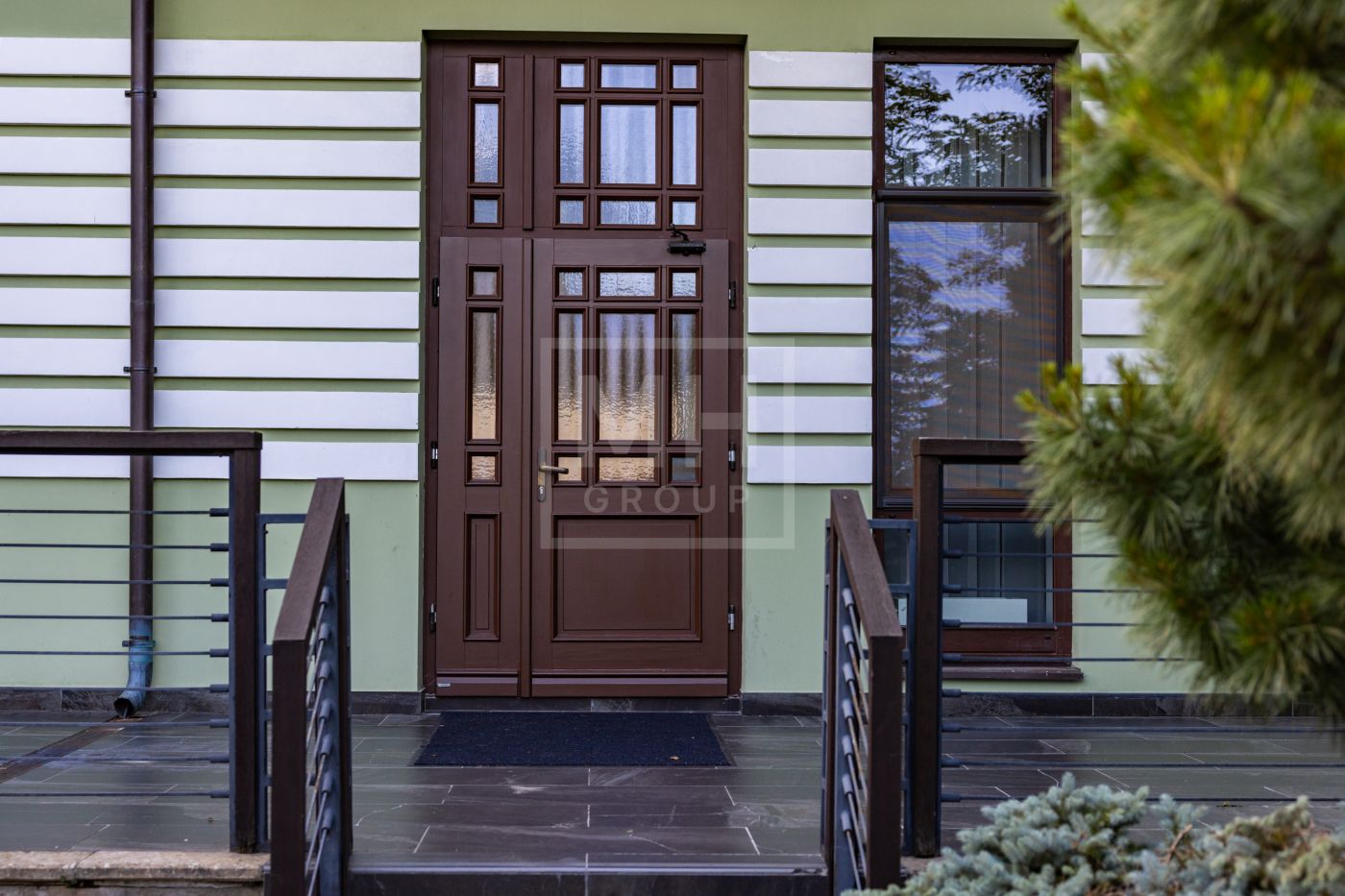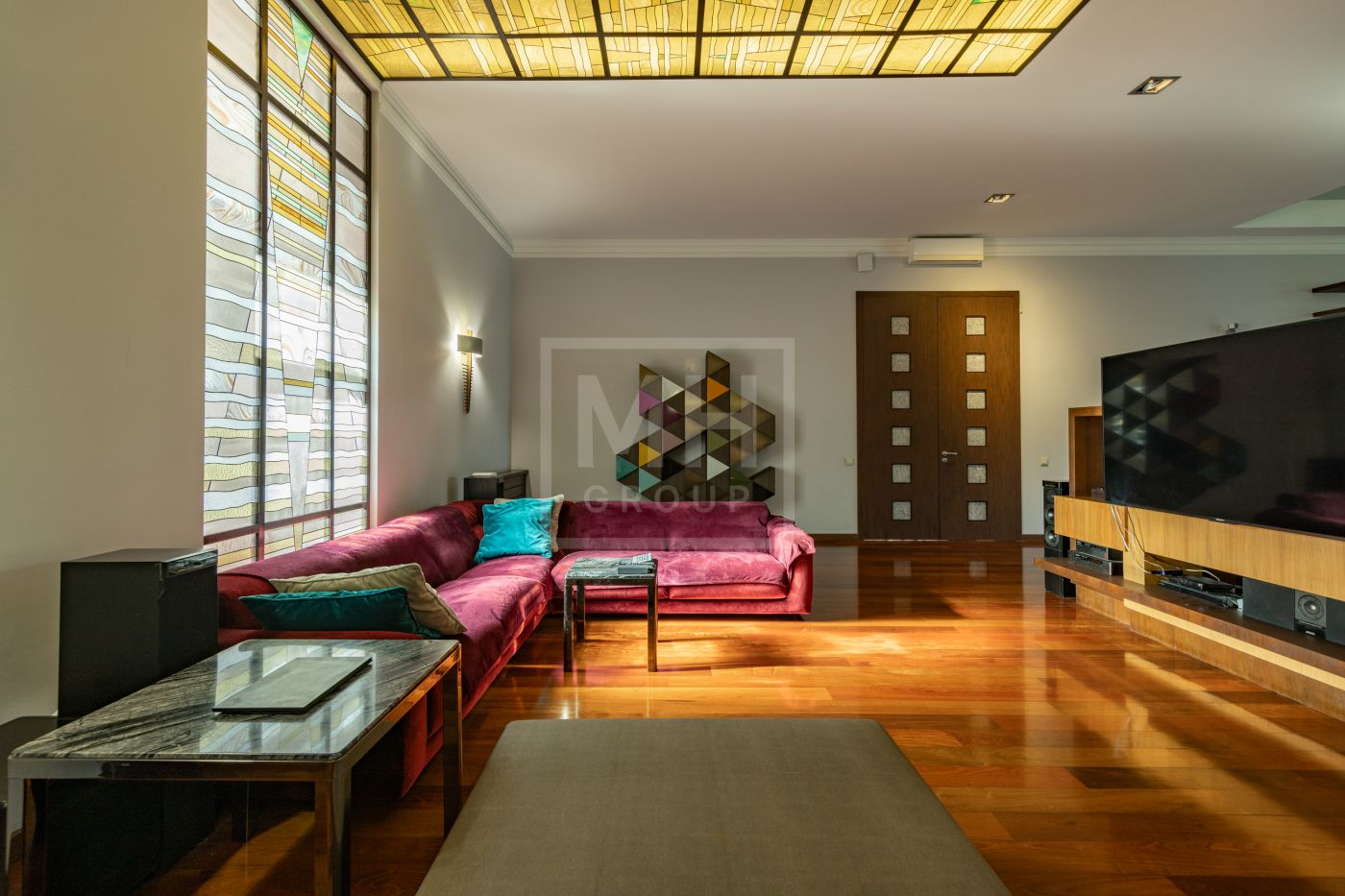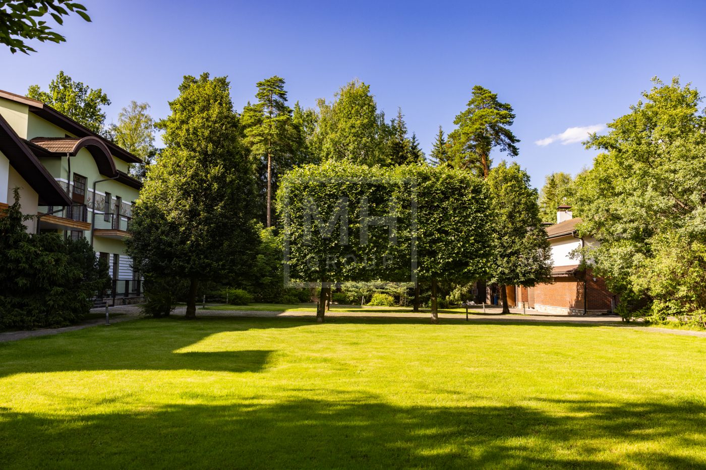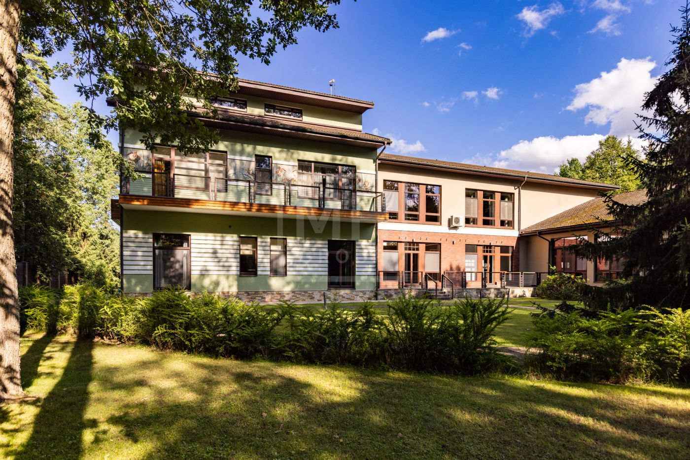 Дом расположен на живописном лесном участке площадью 60 соток с липовой аллеей у парадного входа. Благодаря продуманному ландшафтному дизайну и хвойному массиву по периметру участка здесь царит редкое ощущение покоя, и природа подчеркивает уединенность пространства. Фасад выполнен в выразительном сочетании фактур и материалов.Архитектура привлекает внимание сложной геометрией и нестандартными объемами. В интерьере — теплая, природная палитра, мягкий свет, спокойные оттенки и натуральные материалы, создающие ощущение уюта и сбалансированного ритма жизни. Высокие потолки и второй свет придает пространству легкость и масштаб. Из окон открывается вид на хвойный массив. По всему периметру дома расположены террасы..