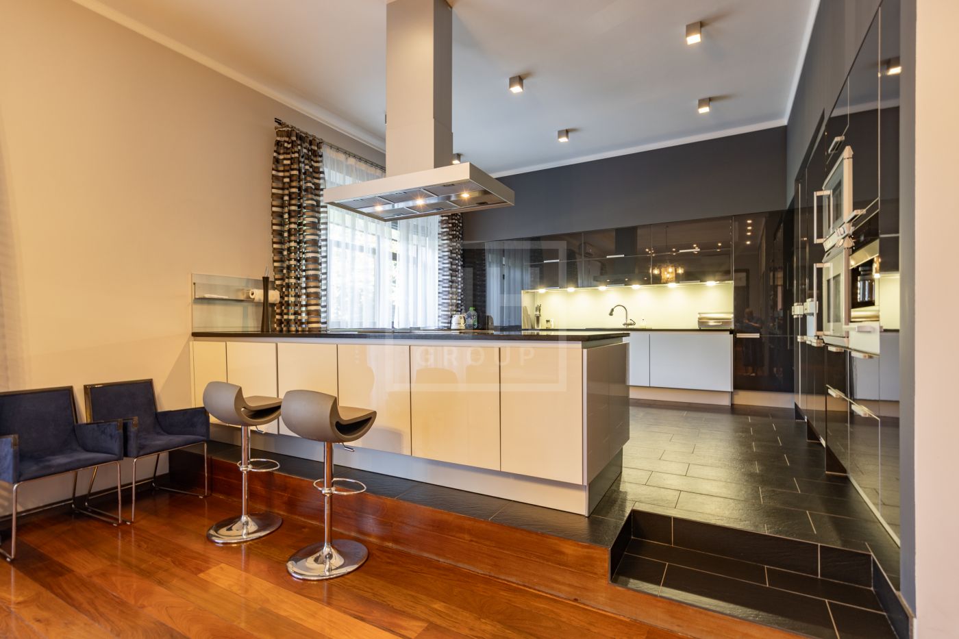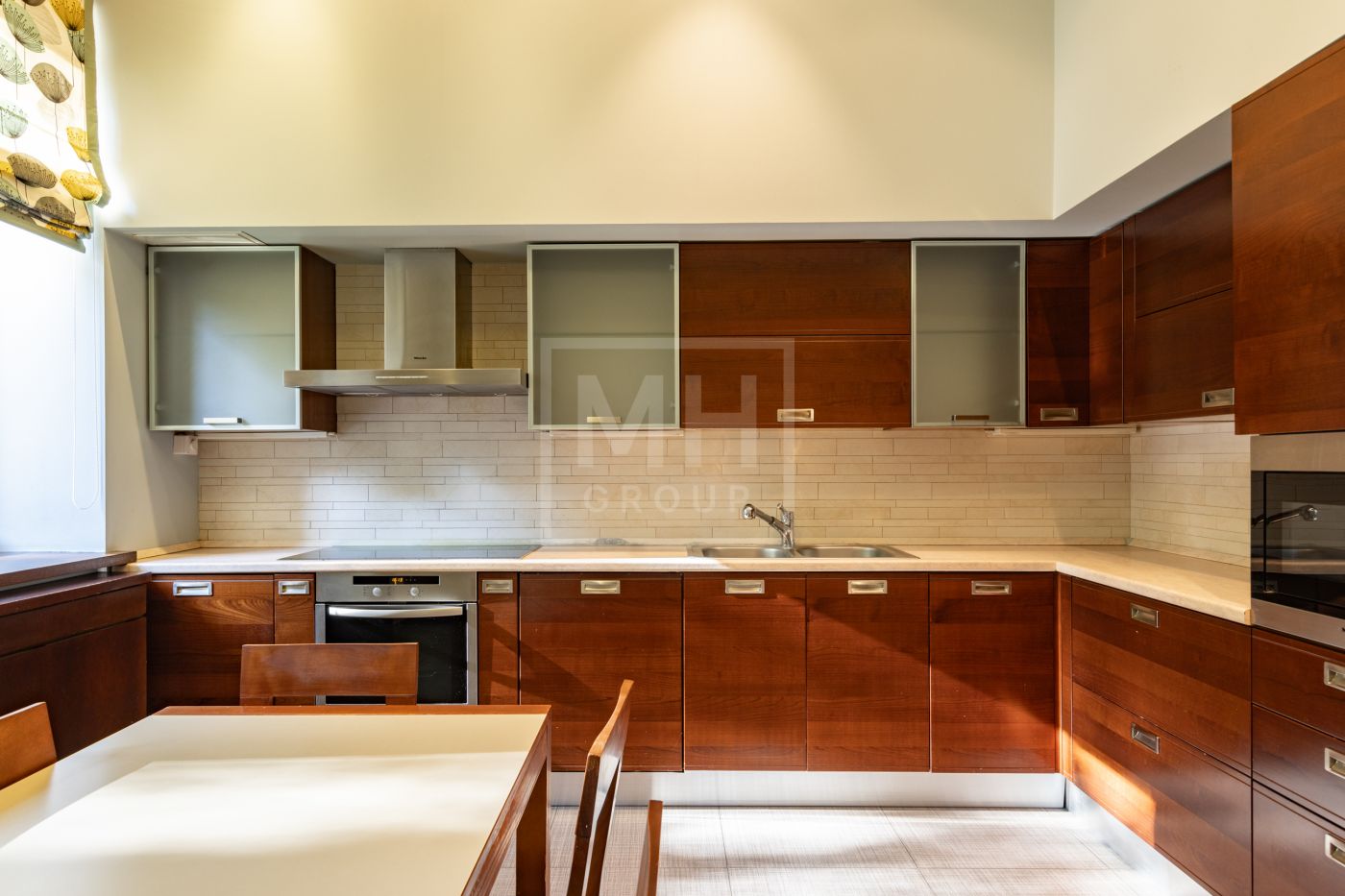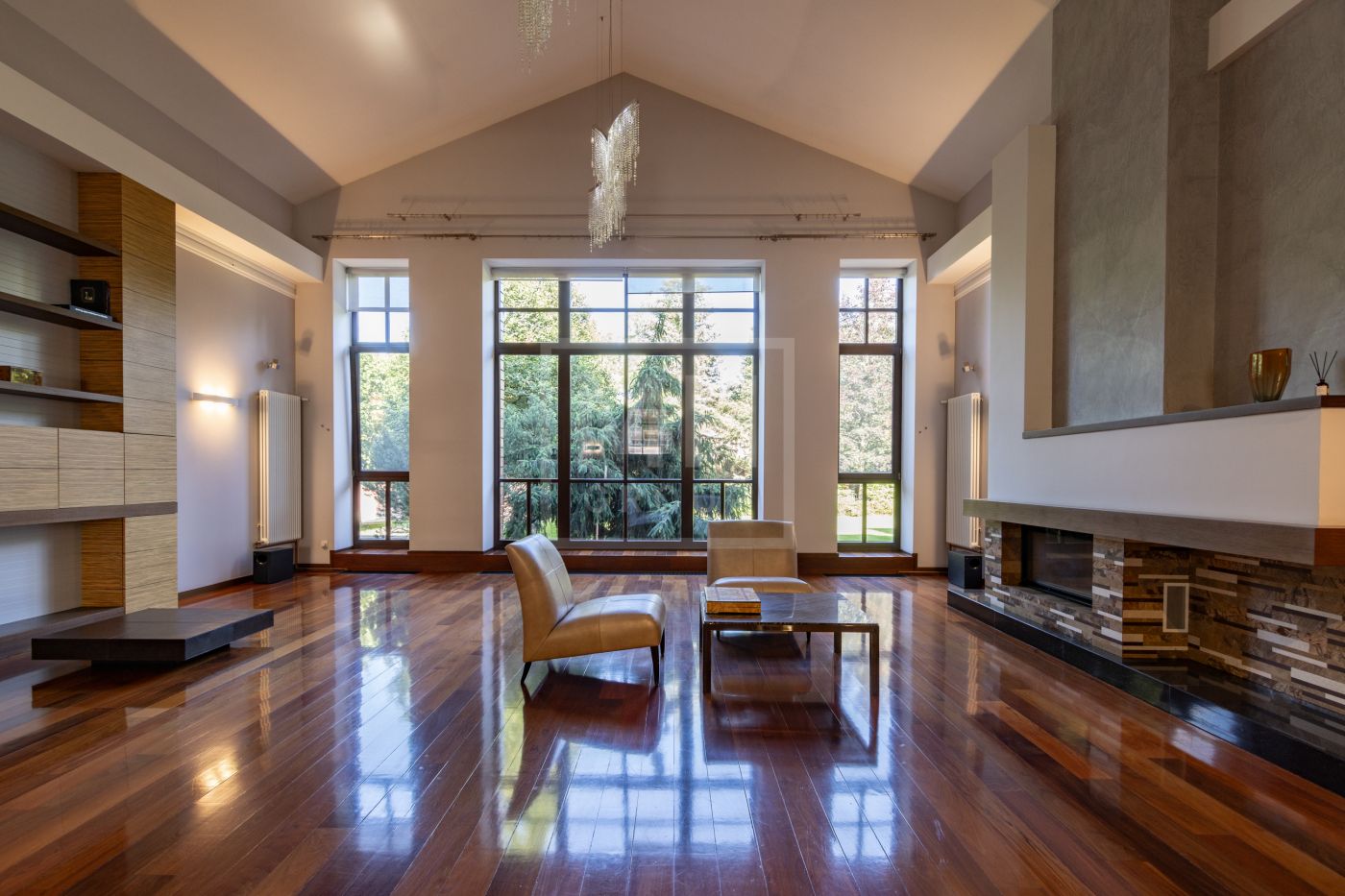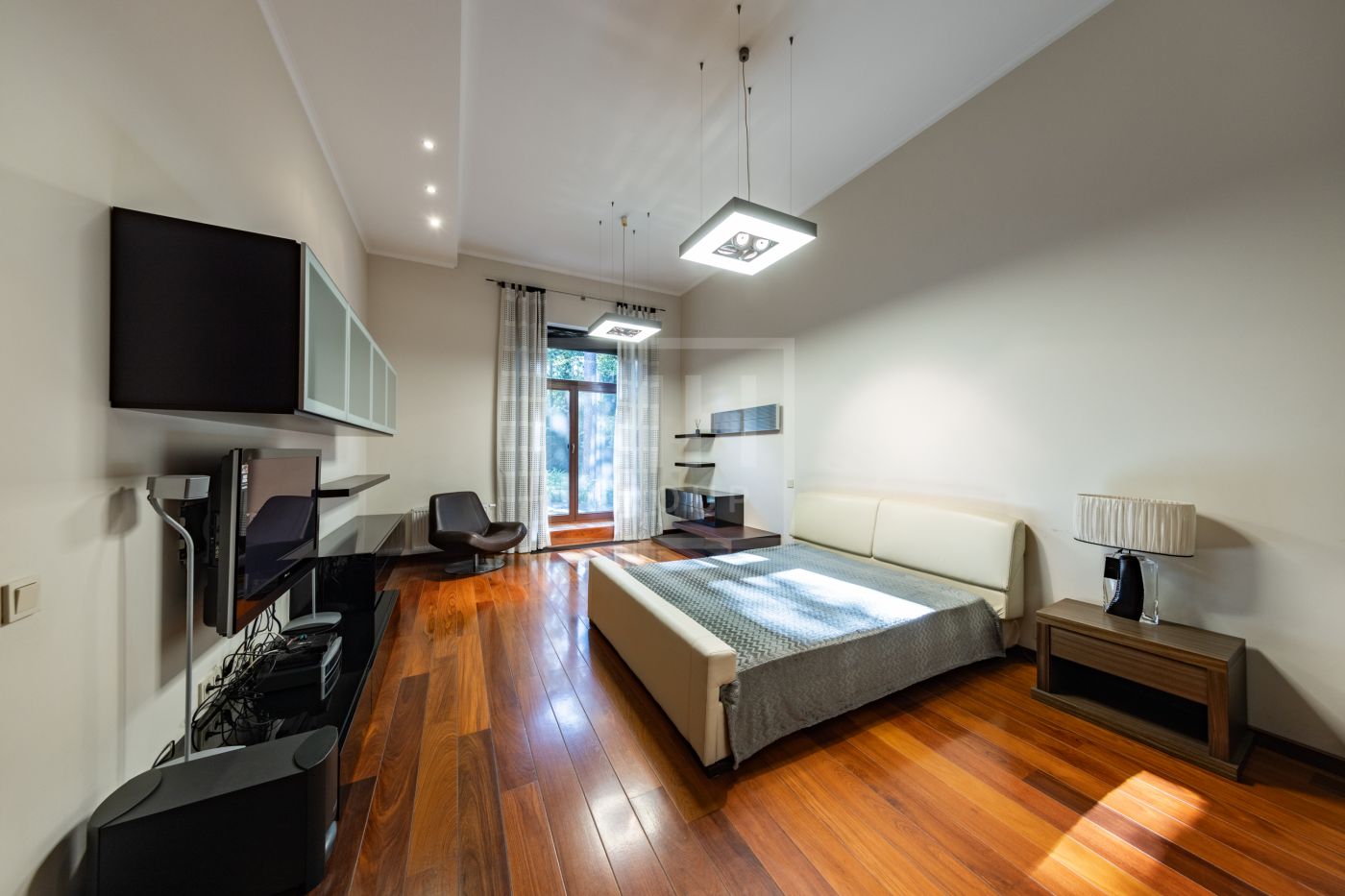 Дом расположен на живописном лесном участке площадью 60 соток с липовой аллеей у парадного входа. Благодаря продуманному ландшафтному дизайну и хвойному массиву по периметру участка здесь царит редкое ощущение покоя, и природа подчеркивает уединенность пространства. Фасад выполнен в выразительном сочетании фактур и материалов.Архитектура привлекает внимание сложной геометрией и нестандартными объемами. В интерьере — теплая, природная палитра, мягкий свет, спокойные оттенки и натуральные материалы, создающие ощущение уюта и сбалансированного ритма жизни. Высокие потолки и второй свет придает пространству легкость и масштаб. Из окон открывается вид на хвойный массив. По всему периметру дома расположены террасы..