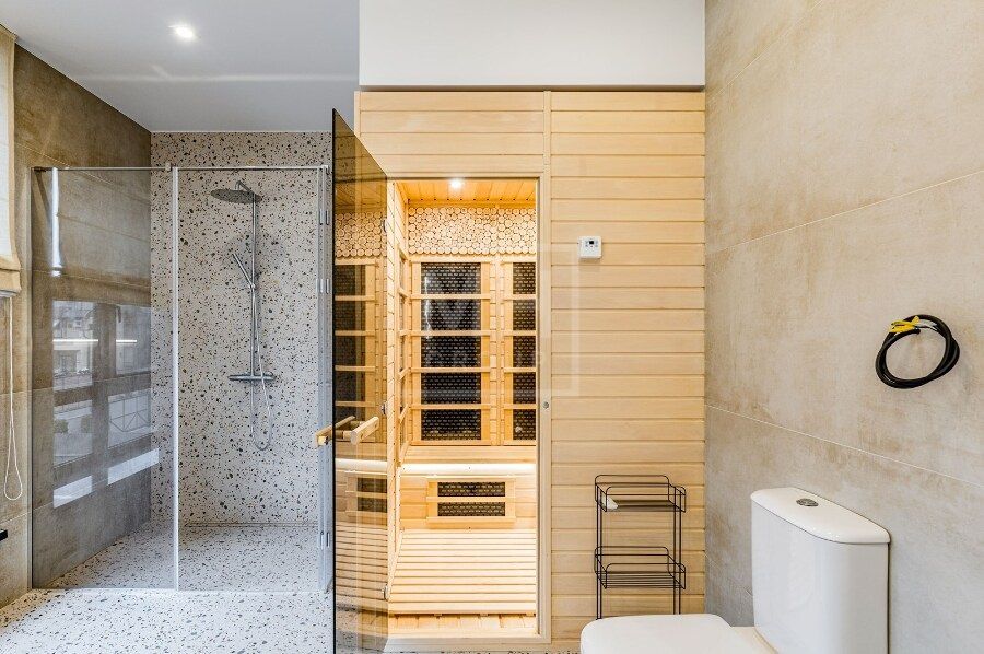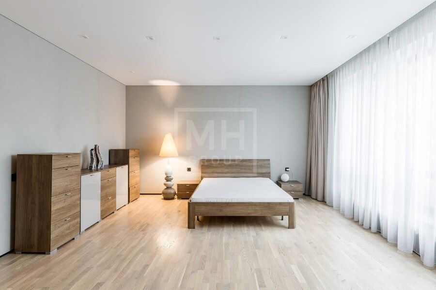 Этаж 2: мастер-спальня с гардеробной и санузлом (сауна, душ), спальня с выходом на террасу и санузлом с ванной, кабинет-библиотека, постирочная, кладовая.