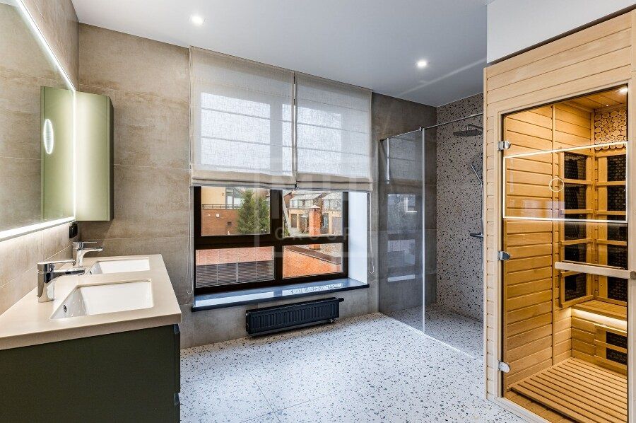 Новый современный дом в Барвихе, готовый к проживанию!Уникальный авторский проект, состоящий из двух строений — основного дома 264 м² и гостевого дома-баня 50 м², расположенных на ровном участке 10 соток в деревне Рождественно.