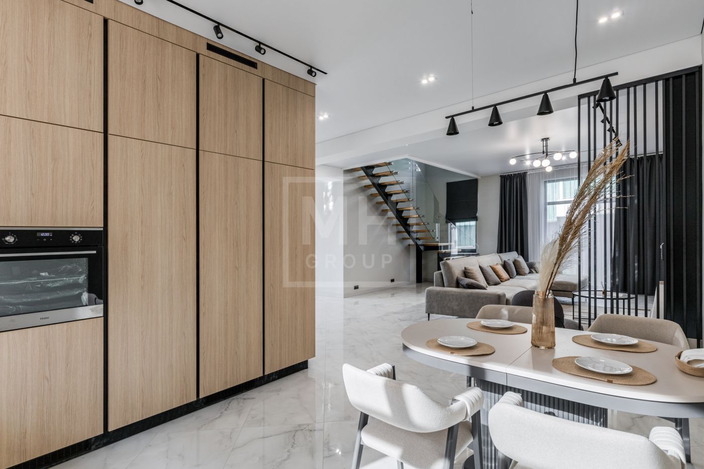 Новый дом в охраняемом поселке Лесные Зори на Новорижском шоссе. Комбинированный фасад в светлых тонах прекрасно смотрится на фоне березовой рощи, к которой примыкает дом. Благодаря большой площади остекления и выбранной световой гамме внутренней отделки все основные помещения залиты светом. Дом полностью меблирован и укомплектован всем необходимым оборудованием. Из гостиной второго этажа выход на приватную часть участка, на которой есть возможность разместить зону-барбекю.В непосредственной близости находятся образовательные учреждения, магазины, спортивно-оздоровительные комплексы, что позволяет рассматривать данную локацию для полноценного, удобного, комфортного и постоянного проживания. В поселке все центральные коммуникации, профессиональная охрана.