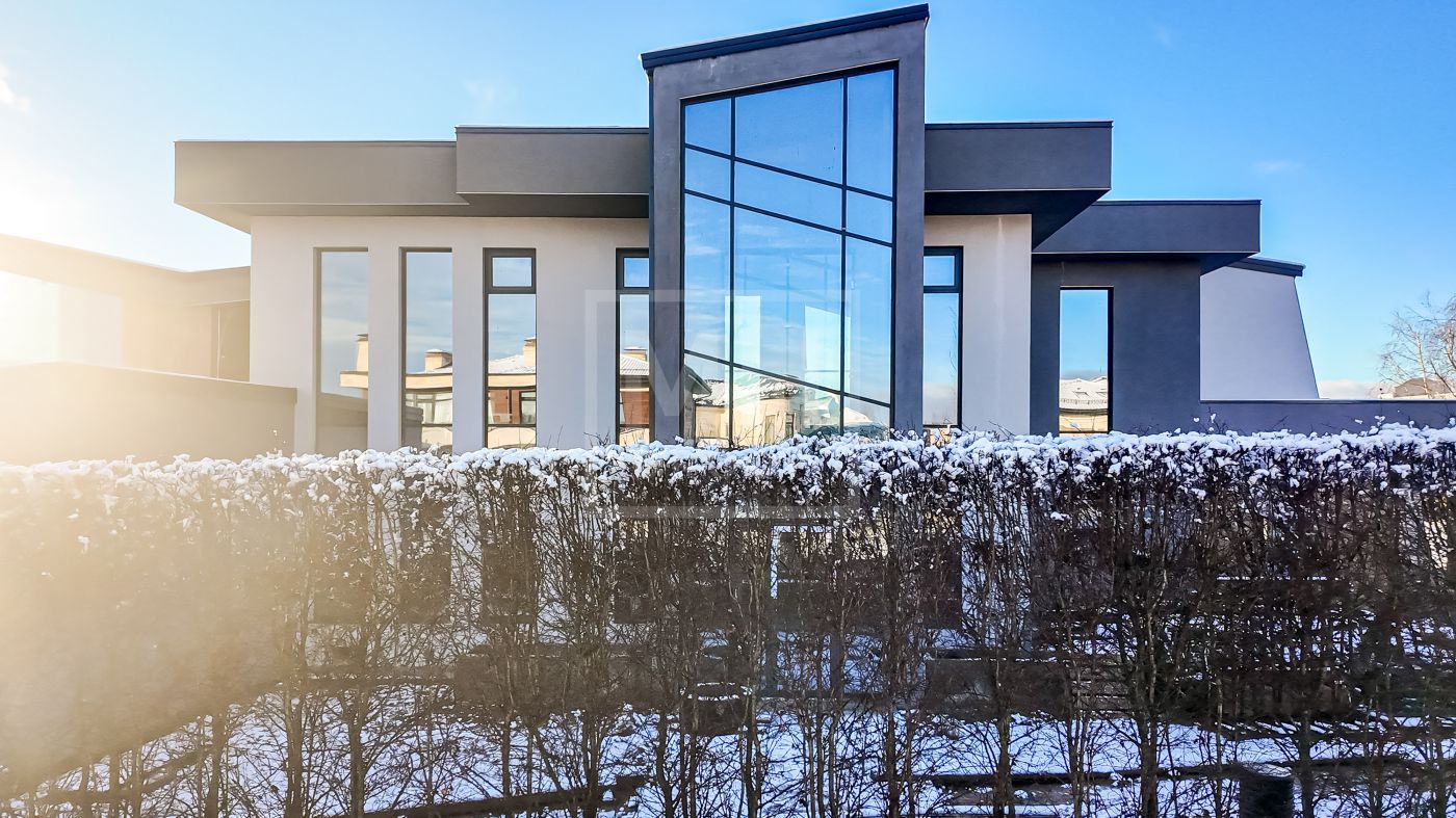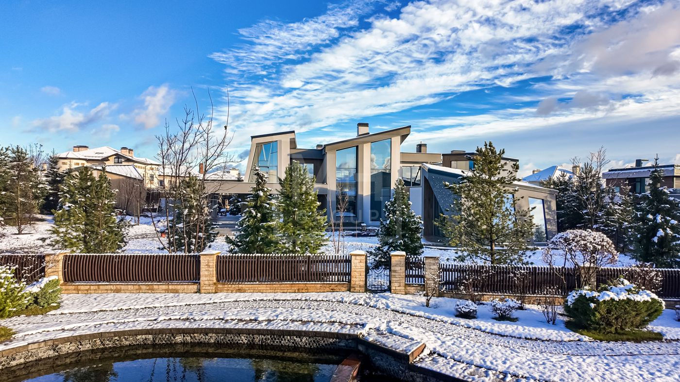 Дом площадью 1064 м² расположен на участке в 30 соток с выходом к водному каналу и включает 5 спален.Свет, масштаб и выразительная геометрия создают ощущение открытого диалога с природой и редкой архитектурной свободы.