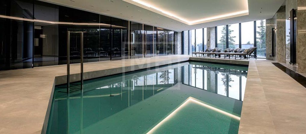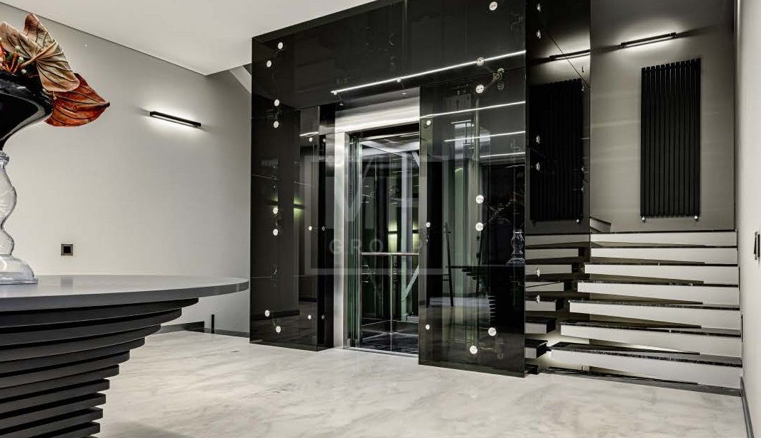 Оконные системы SCHUCCO, двери RIMADESIO, стеклянный лифт — всё подчёркивает архитектурную точность и статус.