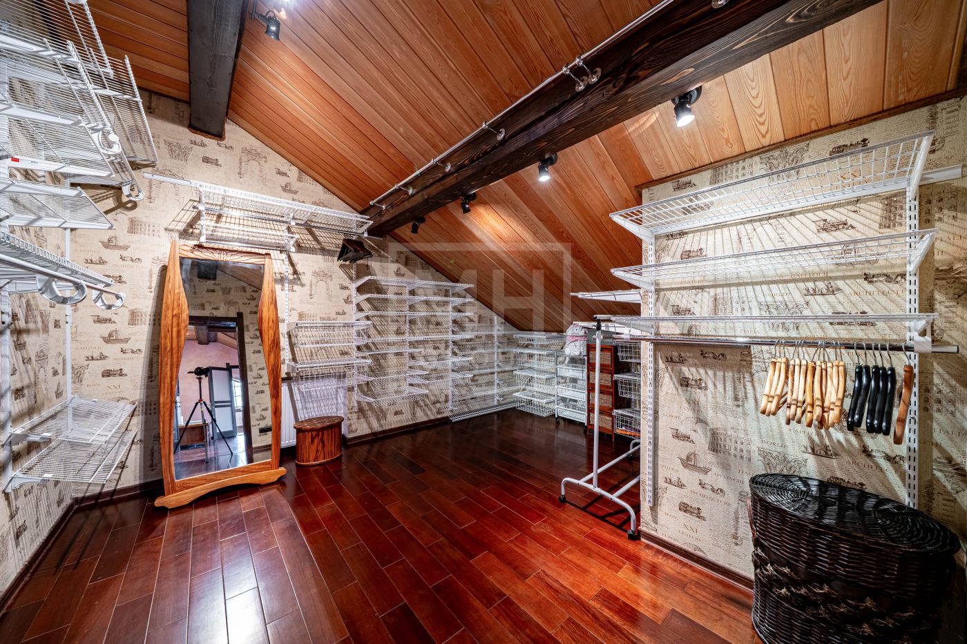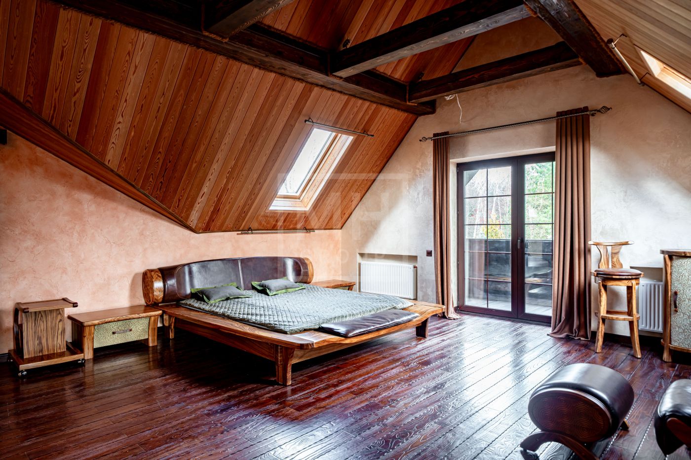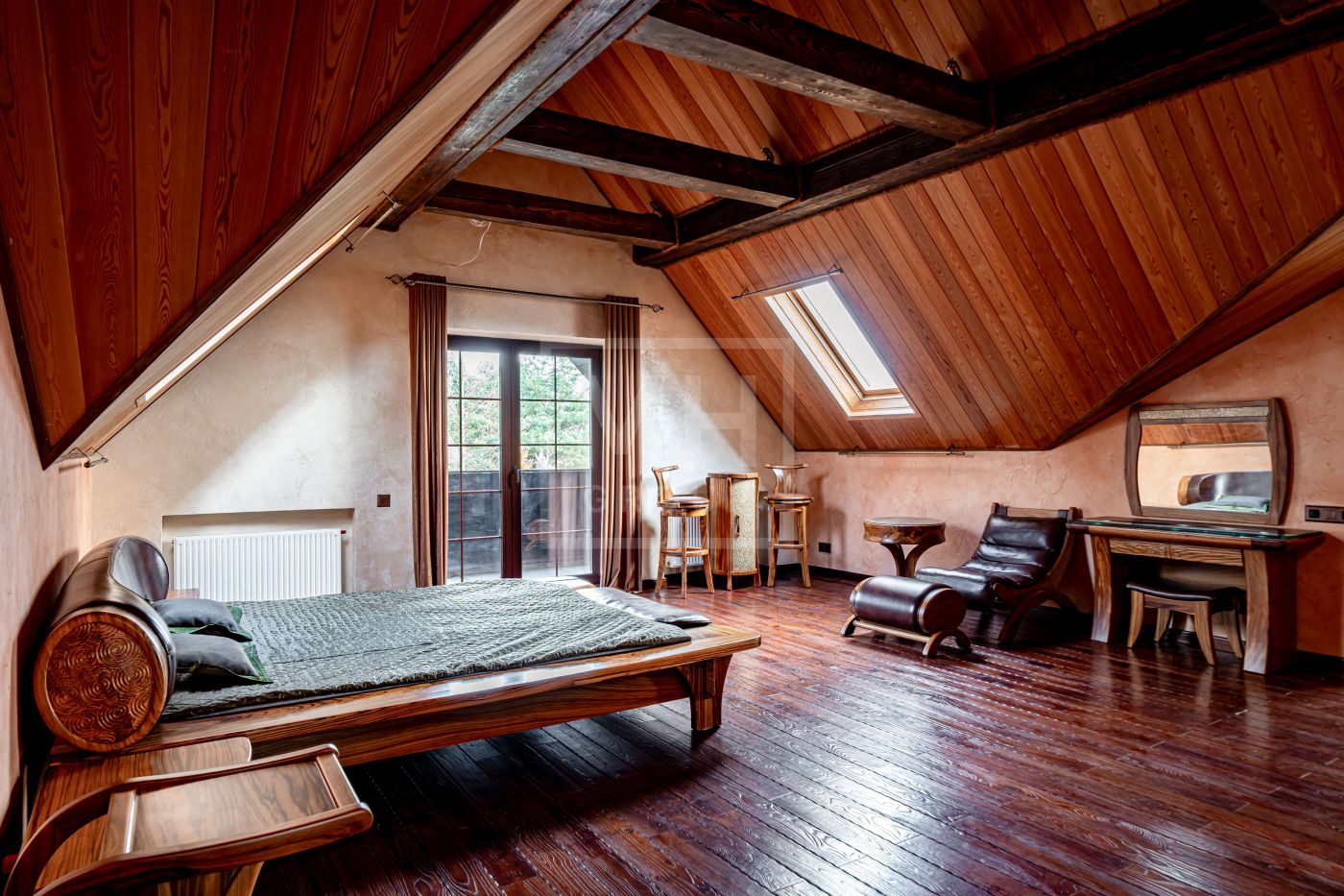 При строительстве использовались качественные экологичные материалы, дерево премиальных пород, натуральный камень. Дом укомплектован мебелью европейских брендов, премиальной сантехникой и бытовой техникой.