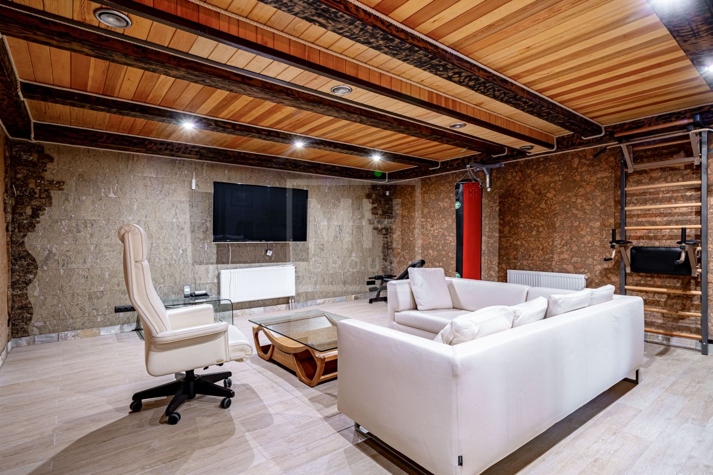 Цоколь: холл, домашний кинотеатр, тренажерный зал, сауна, с/у, кладовая, котельная