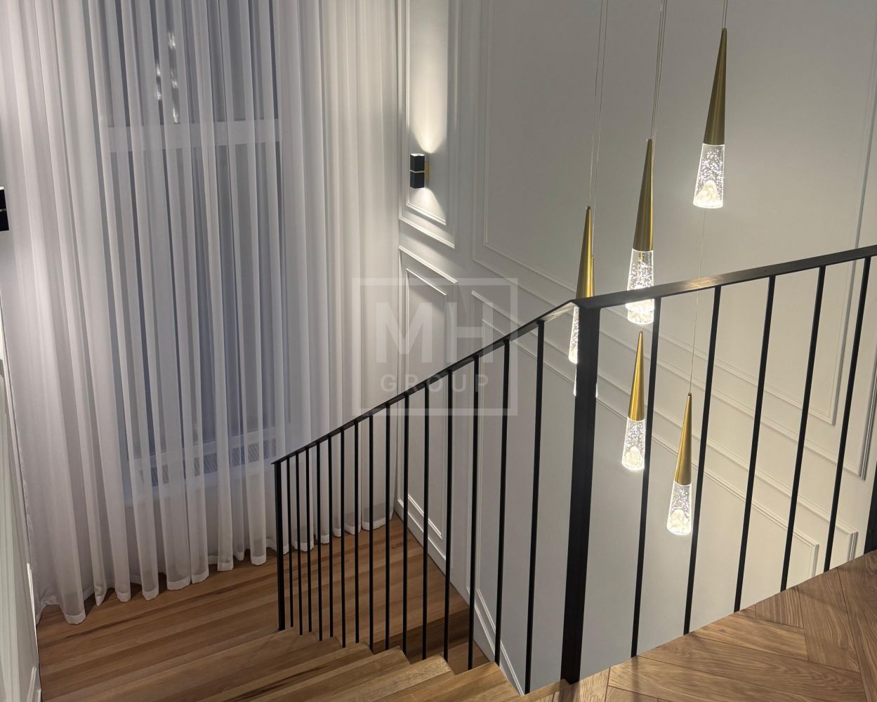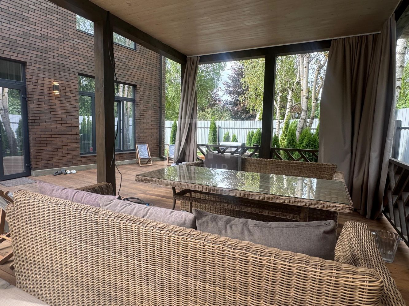 Продаётся новый дом под ключ в д. Никольское, общей площадью 271 м², участок 5 сот. (назначение ИЖС), год постройки 2024г. Дом построен из качественных материалов (облицовка клинкерным кирпичом, веранда и терраса из лиственницы, брусчатка Steingot). Дом оснащен качественной мебелью и техникой, все фасады включая кухню, кабинет, спальня, шкафы выполнены из натурального шпона с подсветкой полок, шкафы прихожей с эмалевым покрытием. Мебель датской компании BoСoncept, столешница кухни из кварцевого агломерата, холодильник Liebherr, стиральная и посудомоечные машины Bosch, итальянский свет, сантехника Villeroy and Boch. Все полы теплые (где лежит керамогранит). Все коммуникации заведены в дом. На участке установлены автополив, камеры видеонаблюдения по всему периметру, система автоматических ворот.Дом расположен в непосредственной близости к лесу и реке, в очень спокойном и тихом месте, на тупиковой улице. Рядом в 3-4 минутах госпиталь Лапино, супермаркеты Мираторг, Перекресток, Азбука Вкуса. Вся инфраструктура города Одинцово в 10 минутах. Удобный выезд на платную дорогу 5-7 минут, 19 км от МКАД, в 20 минутах неспешной езды от Москва Сити.