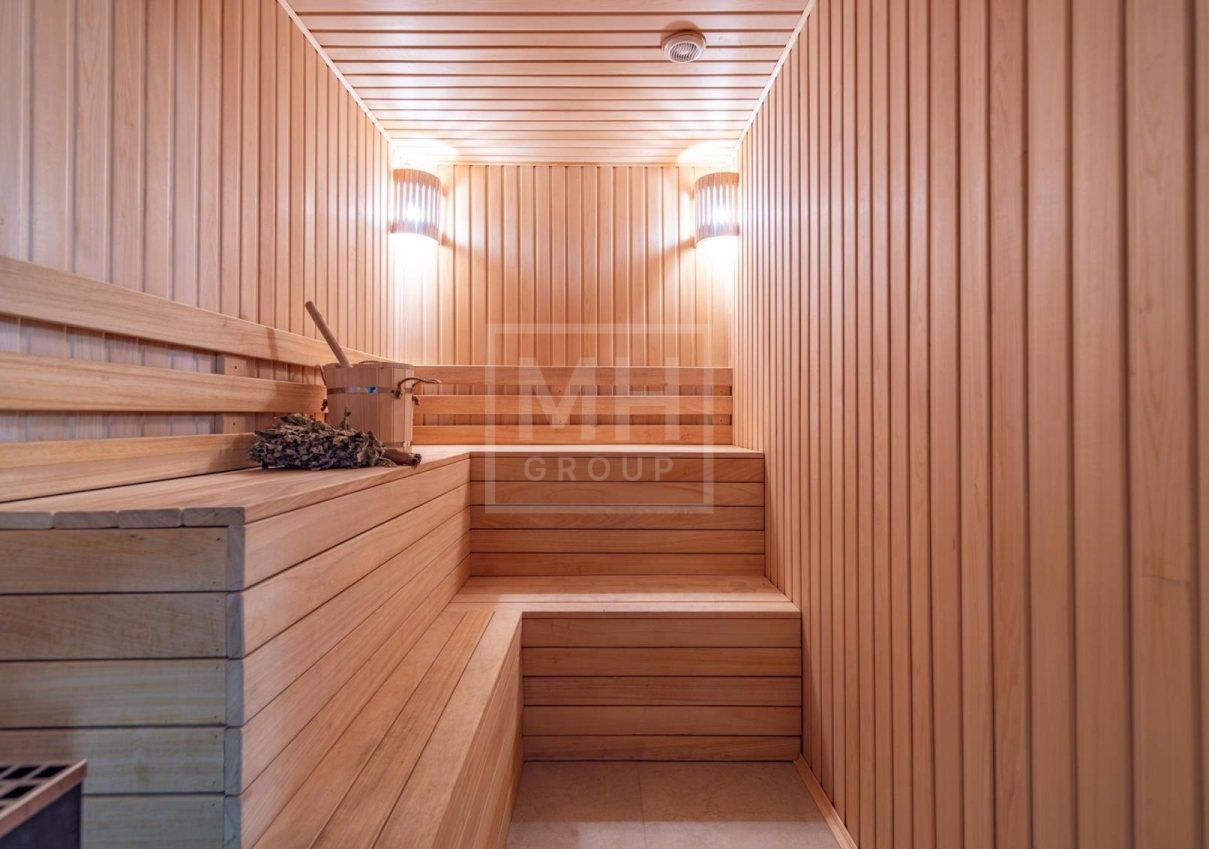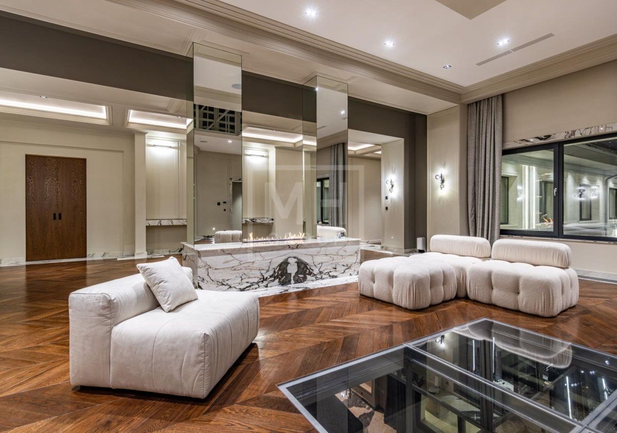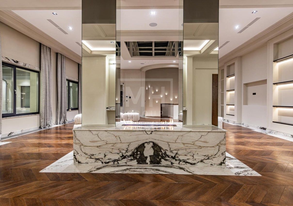 Этаж 2: мастер-спальня с гардеробной санузлом и хаммамом и своей террасой, две спальни с санузлами и гардеробными, игровая комната, зона для отдыха с камином и барной зоной