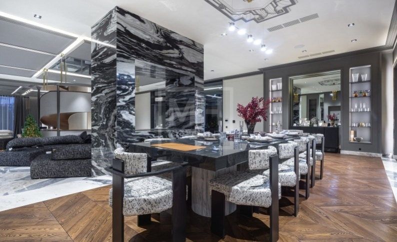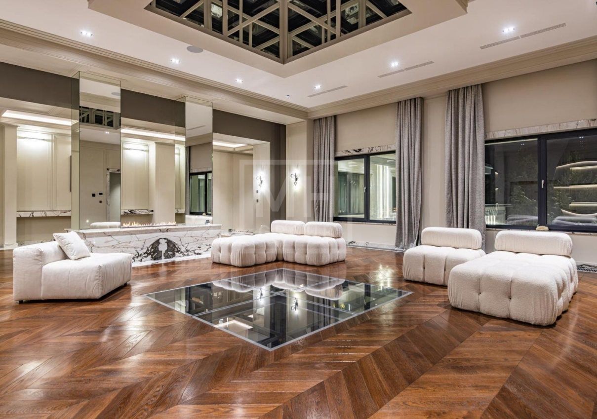 Современный новый дом под ключ, общей площадью 2430 м², это воплощение утончённого стиля, комфорта и гармонии с природой. Дом построен из качественных материалов и оснащен премиальной мебелью и техникой. Эксклюзивный архитектурный проект расположен в одном из самых востребованных и живописных мест Подмосковья, в клубном посёлке "Речной".Участок прямоугольной формы площадью 21 сотка (назначение ИЖС) с внутренним двориком. Внутренний двор состоит из разноуровневых площадок с разными функциональными назначениями. При выходе во двор из центрального холла первого этажа располагается широкая терраса, соединенная с выходом из помещения бассейна. На участке расположена группа водоемов - прудов, а также, круглое патио с открытым костровищем.