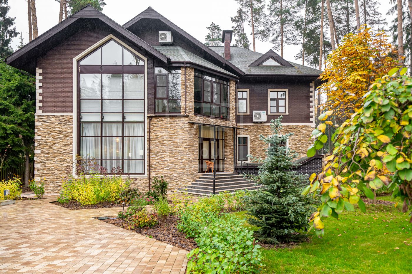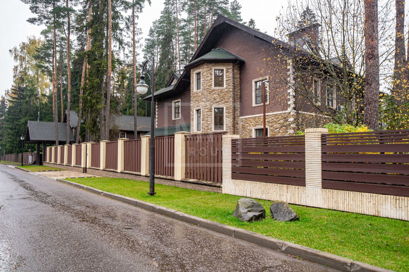 Кирпичный дом площадью 750 м² расположен на лесном участке 20 соток и полностью готов к проживанию: под ключ, с мебелью и дизайнерской отделкой.Натуральные материалы, деревянные трёхкамерные стеклопакеты и архитектура, вписанная в природный контекст, создают ощущение уединения и статуса.