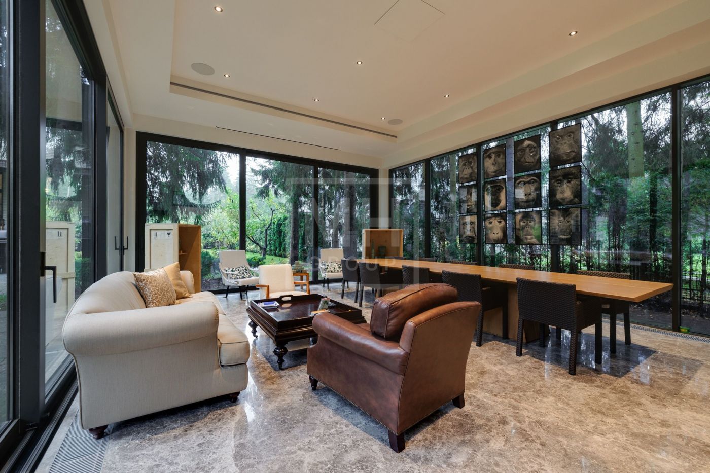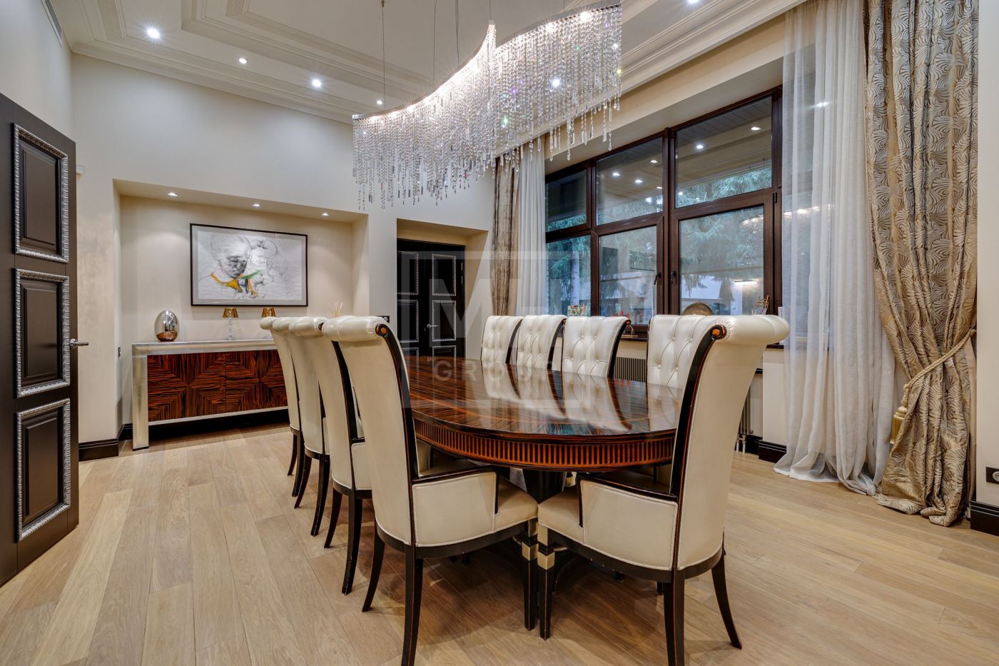 Стильный и уютный дом общей площадью 1135 кв.м расположен в клубном поселке на 33 дома на Новорижском шоссе. Индивидуальный архитектурный проект, в доме выполнена дизайнерская отделка дорогими европейскими материалами. Планировка предусматривает просторную гостиную с камином, 5 спален, кабинет, СПА-зона с бассейном и хамам, домашний кинотеатр, тренажерный зал, гараж на 2м.м. На лесном участке 23,4 сотки помимо основного дома расположена крытая беседка-барбекю с профессиональной кухней. Все центральные коммуникации.. Тихое приватное место. Строго охраняемый коттеджный поселок с пропускной системой.от МКАД
