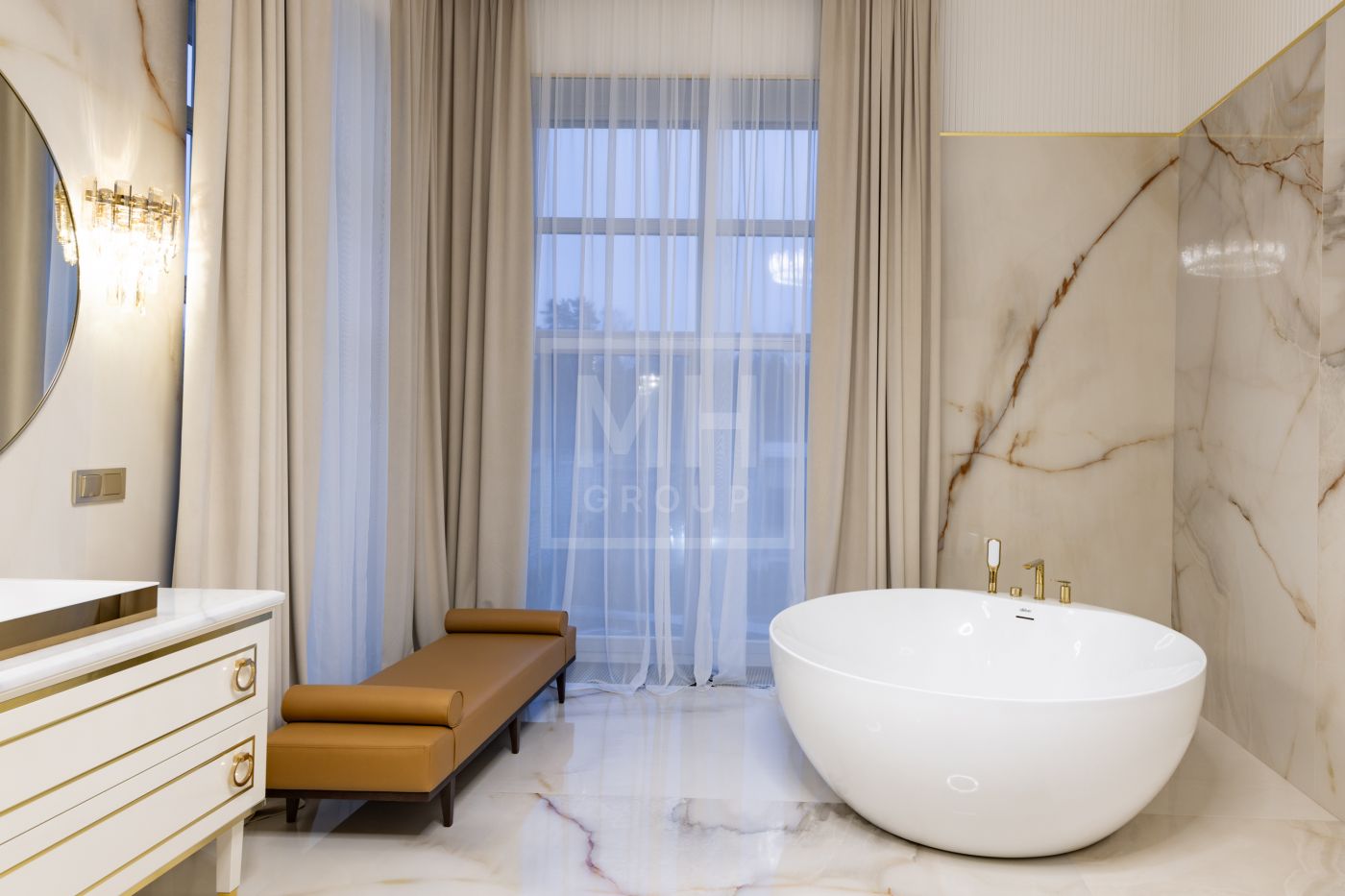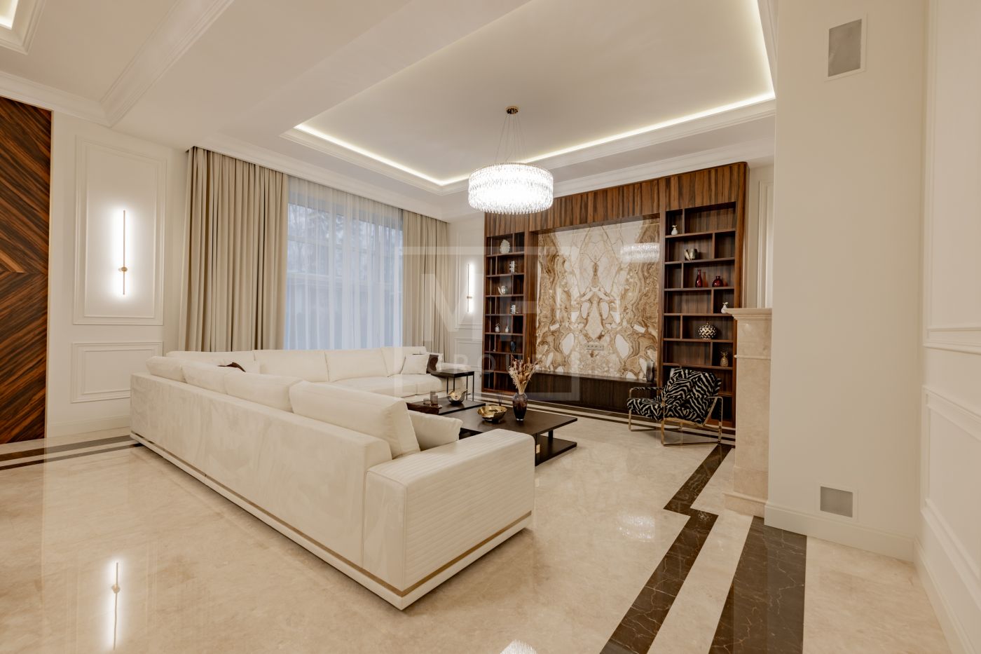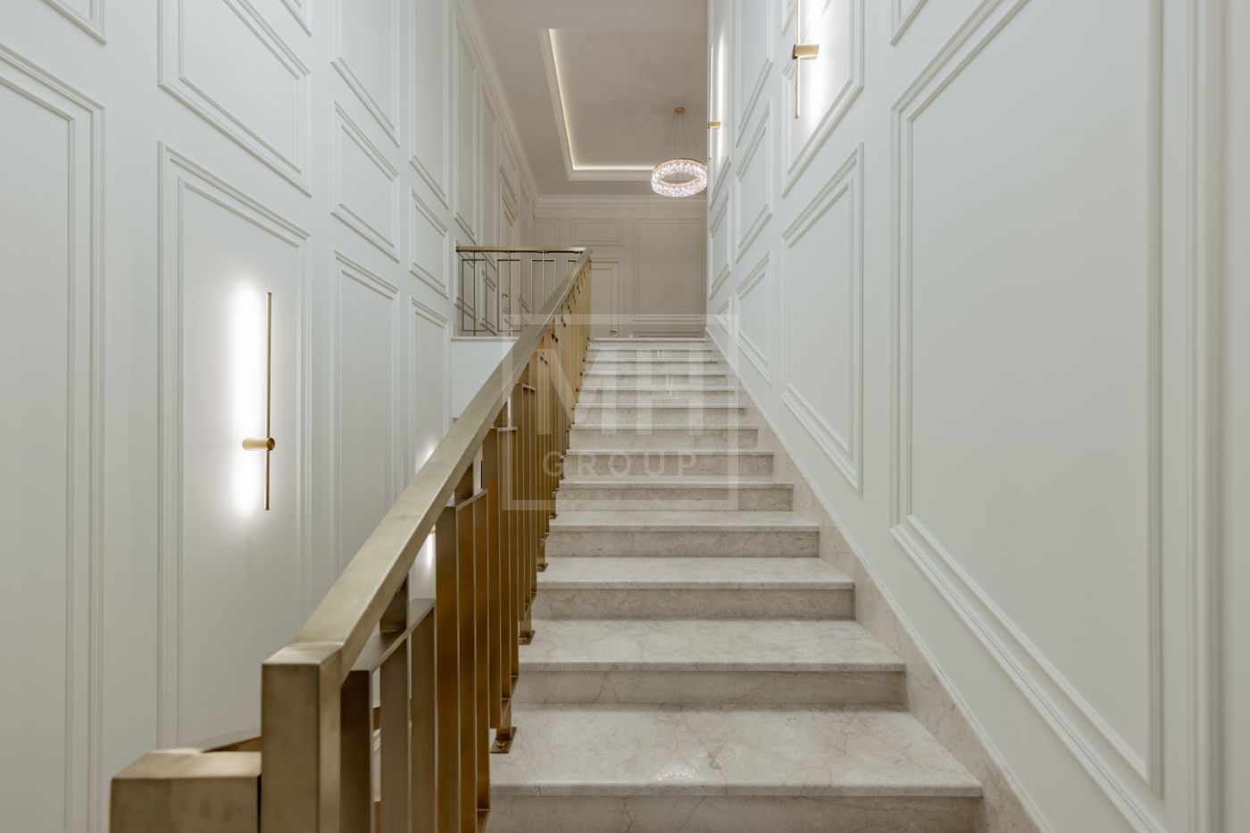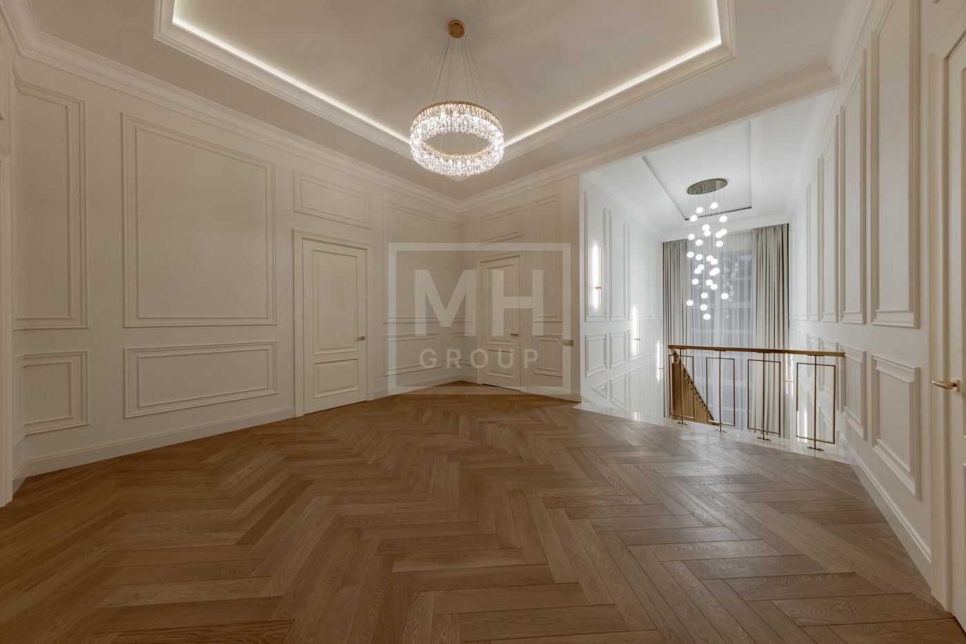 Дом представляет собой великолепный пример современной архитектуры с кирпичными стенами и монолитными перекрытиями. Фасады выполнены из натурального камня, а деревянные панорамные окна из лиственницы добавляют интерьеру естественного света и уюта.В отделке использованы высококачественные материалы, в частности, итальянский керамогранит, натуральный мрамор, а также представлена премиальная сантехника из Италии и Германии. Функционально удобная планировка, просторные помещения и панорамное остекление расширяют пространство и предусматривают комфортное проживание для большой семьи.